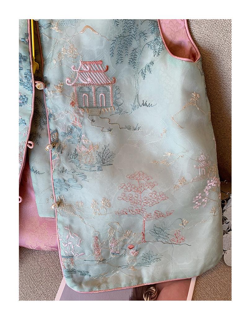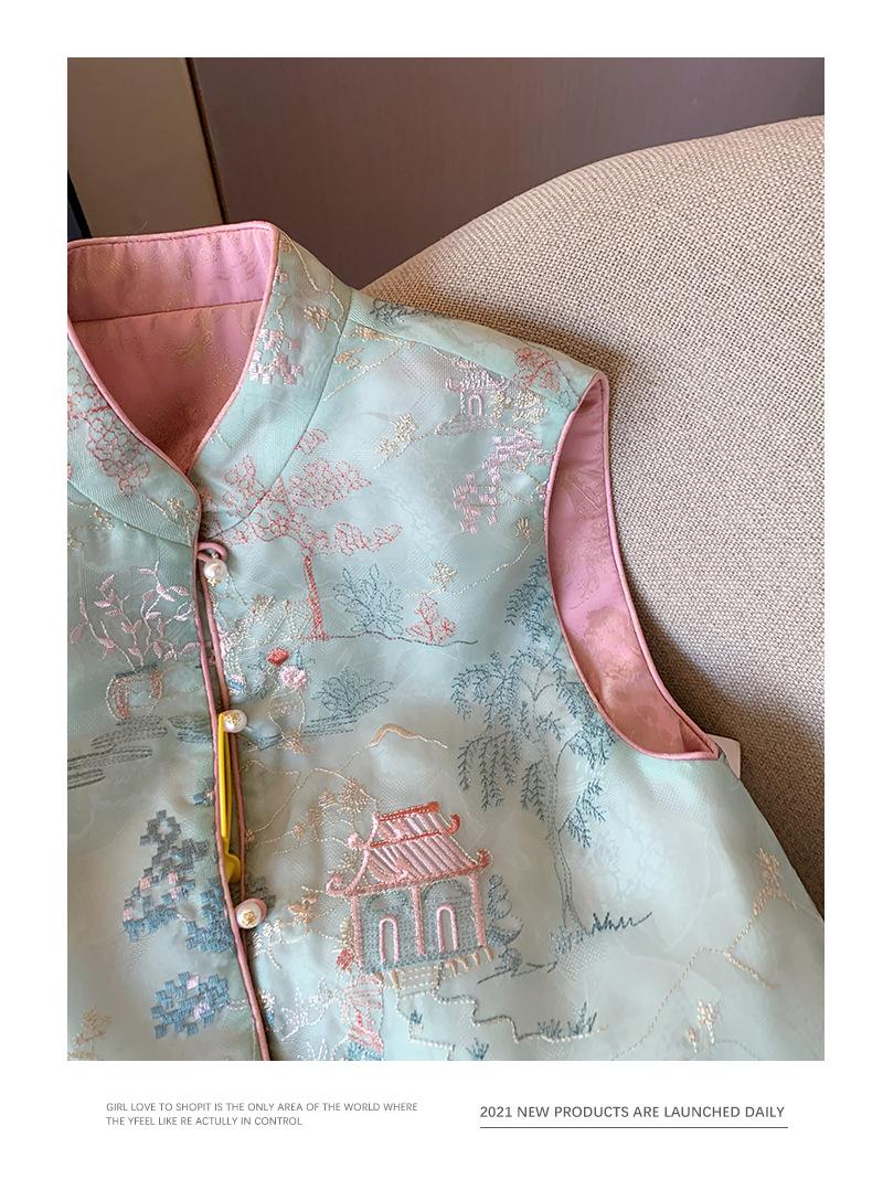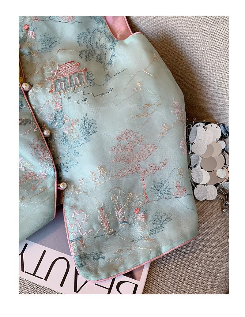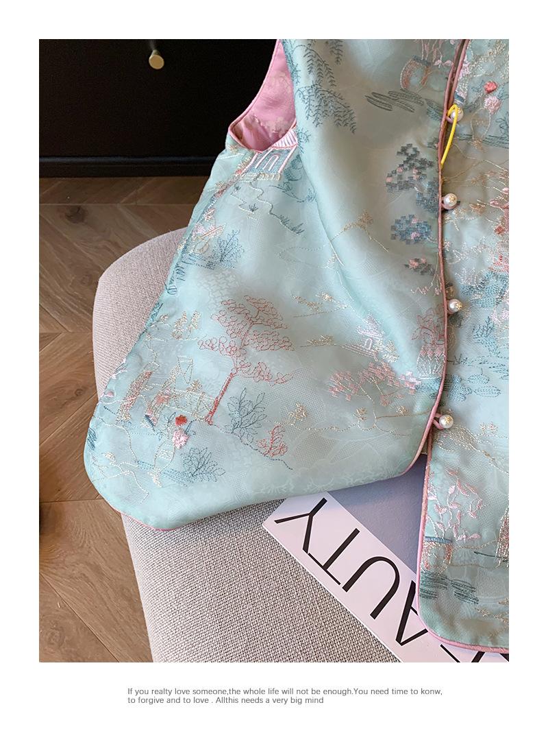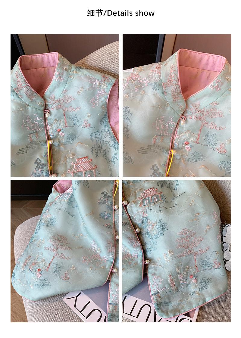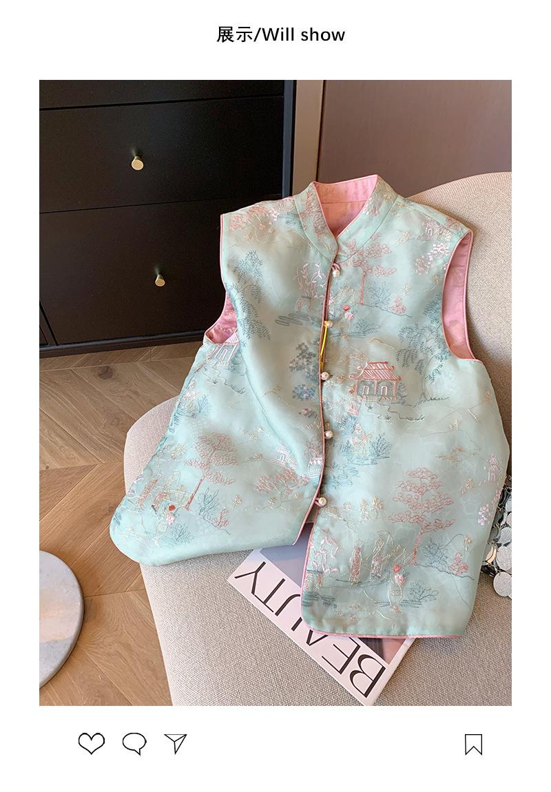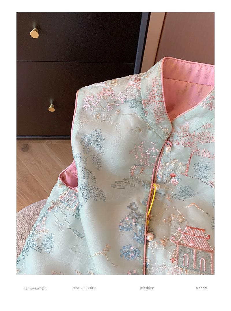 Nuevo chaleco de estilo chino con bordado, botón de perla, cuello alto, para mujer, primavera 2024, retro, de alta gama, para celebridades, prenda exterior, chaleco sin mangas
