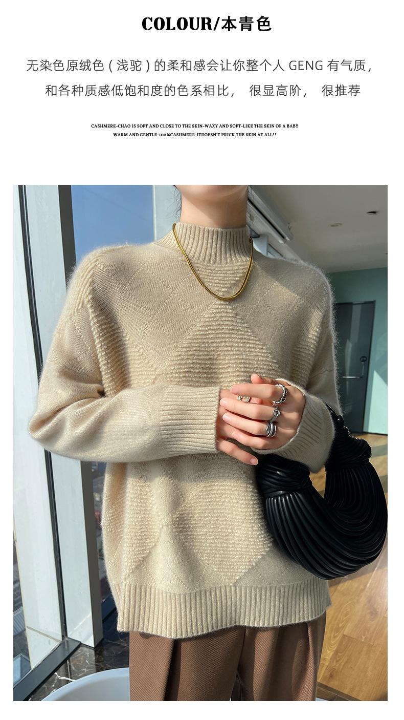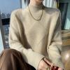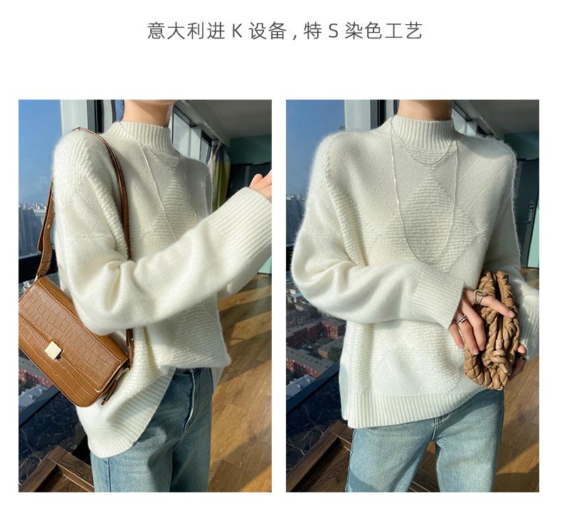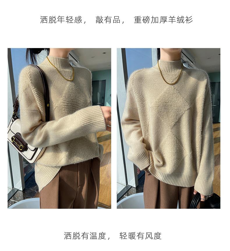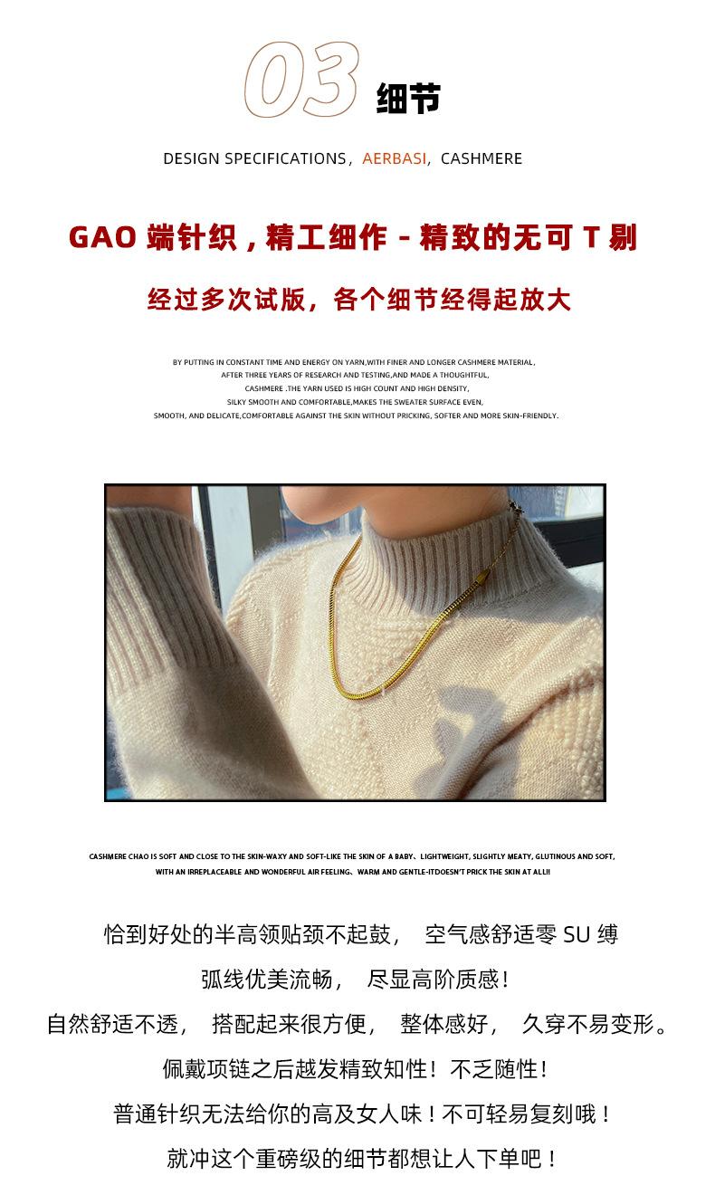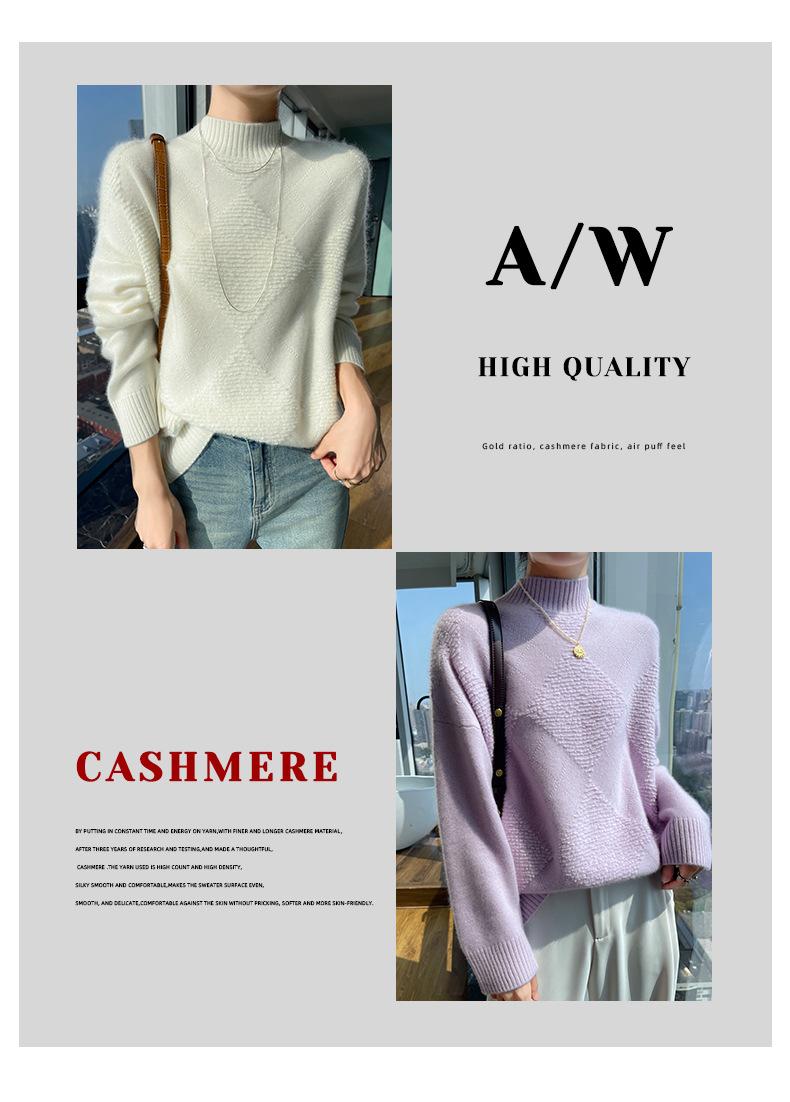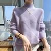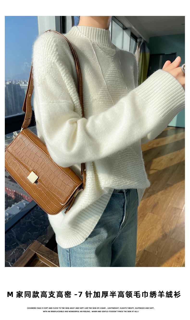 Suéter de Cachemira de Montaña de Hombro Caído para Mujer de Cuello Alto Medio Bordado de Toalla Suéter Grueso Tipo Pulóver Otoño e Invierno Nueva Camisa Base Tejida