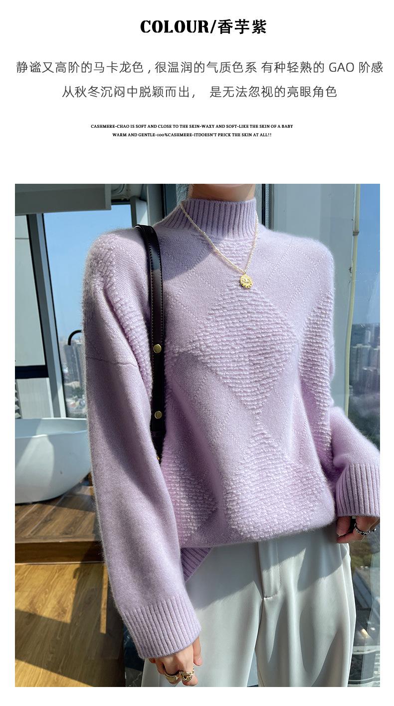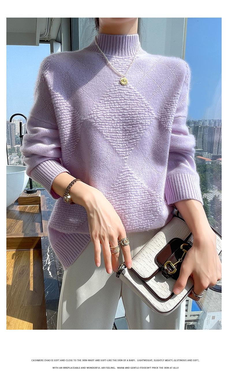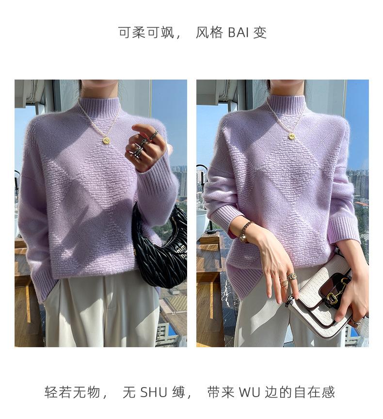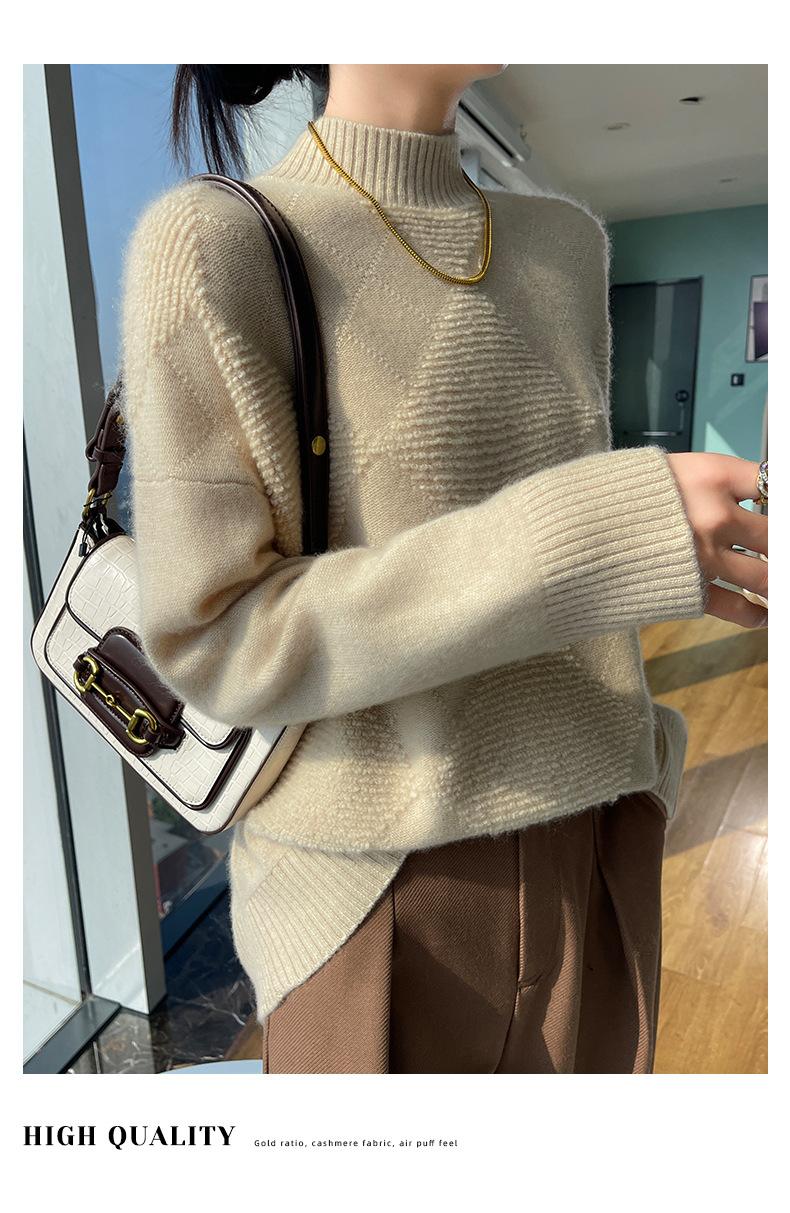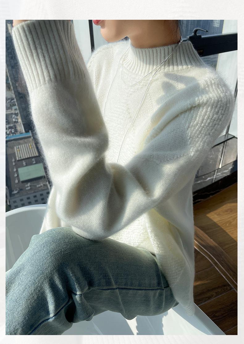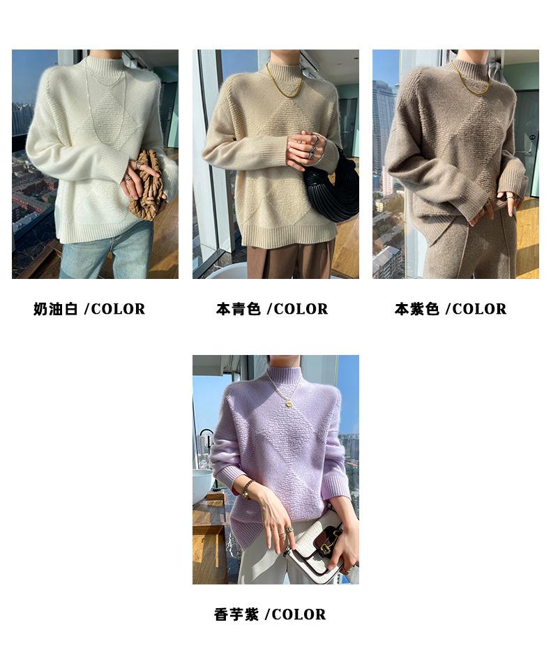 Suéter de Cachemira de Montaña de Hombro Caído para Mujer de Cuello Alto Medio Bordado de Toalla Suéter Grueso Tipo Pulóver Otoño e Invierno Nueva Camisa Base Tejida