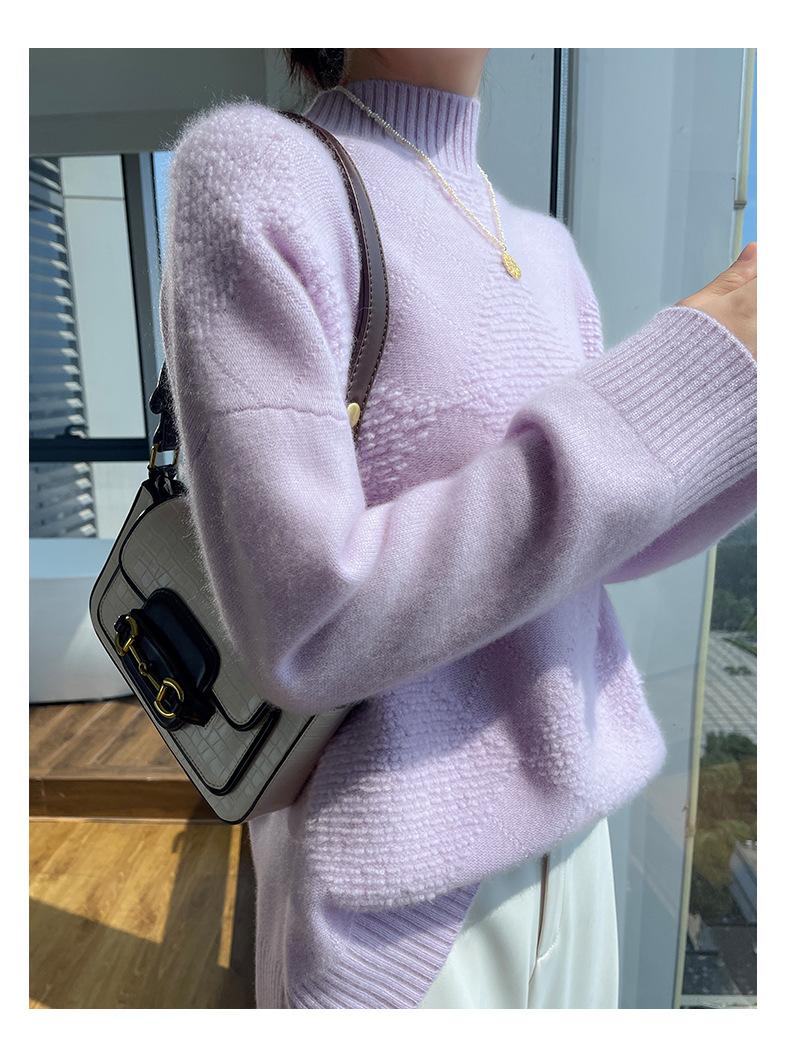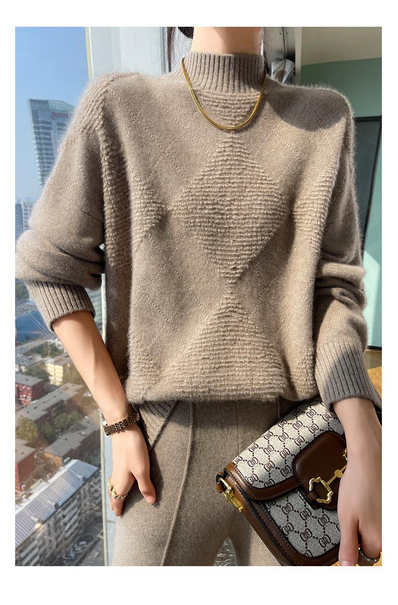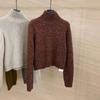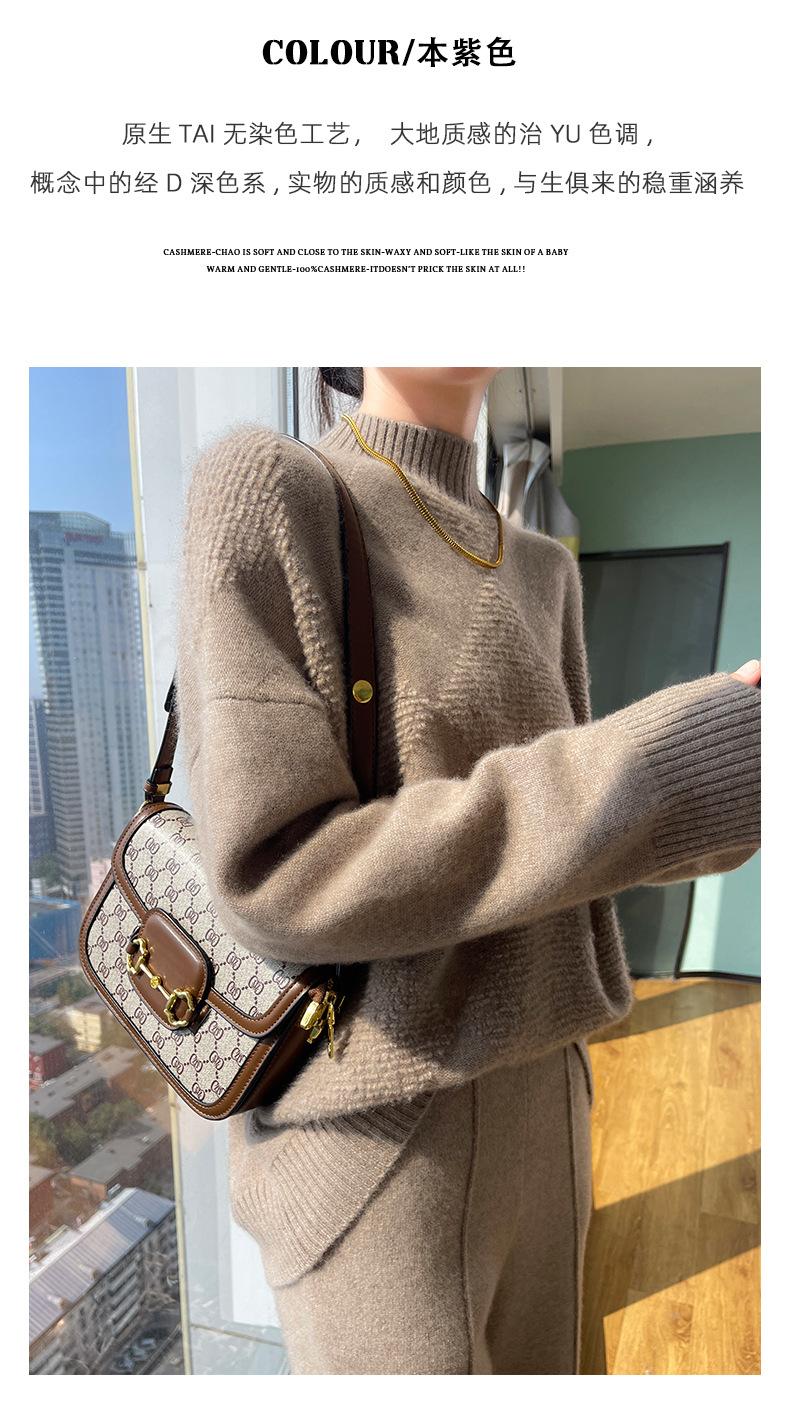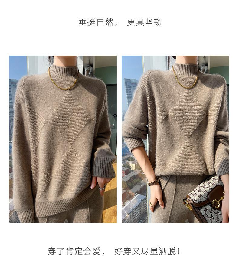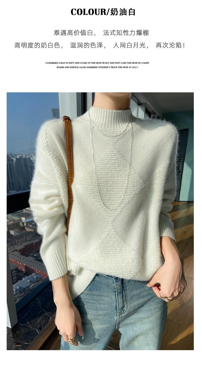 Suéter de Cachemira de Montaña de Hombro Caído para Mujer de Cuello Alto Medio Bordado de Toalla Suéter Grueso Tipo Pulóver Otoño e Invierno Nueva Camisa Base Tejida