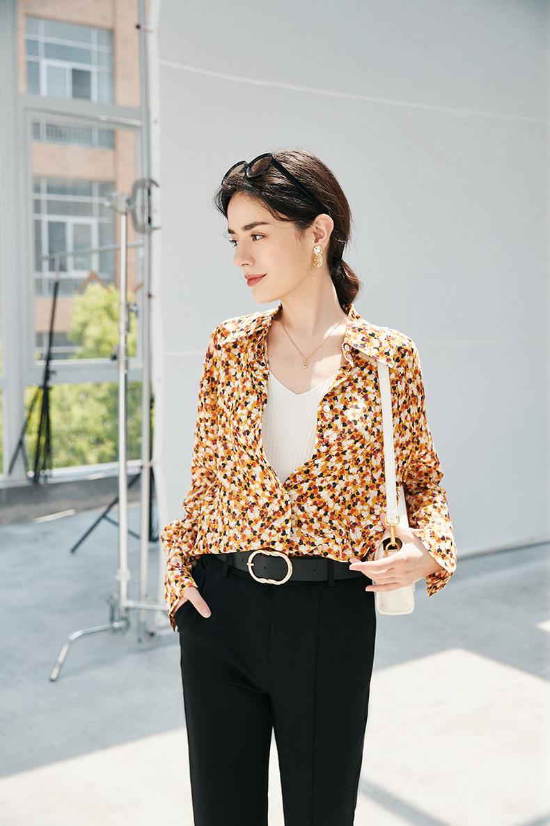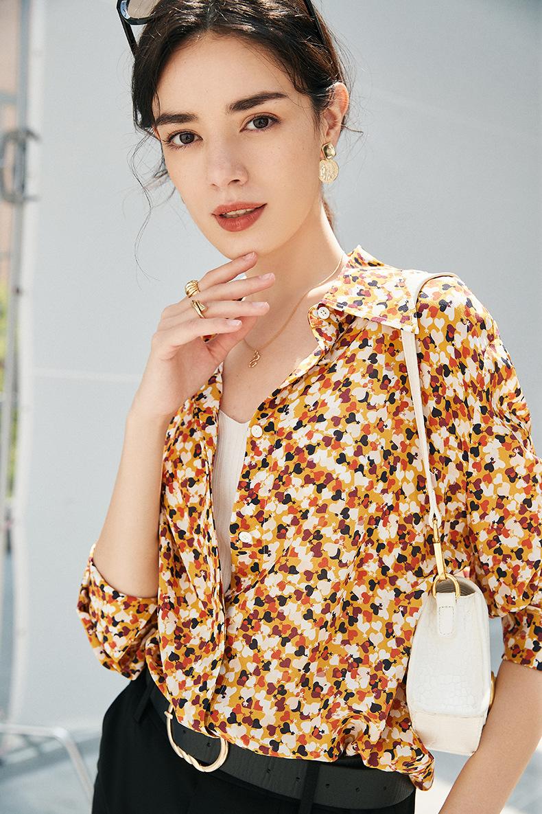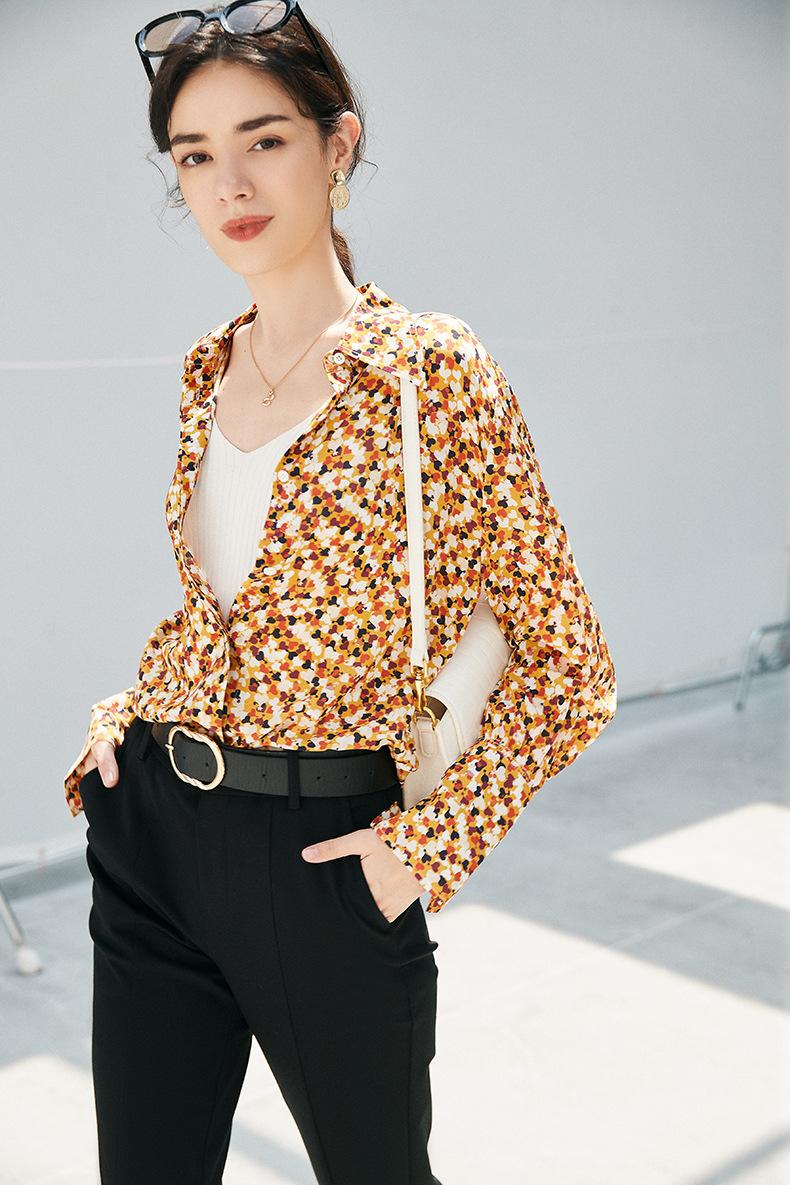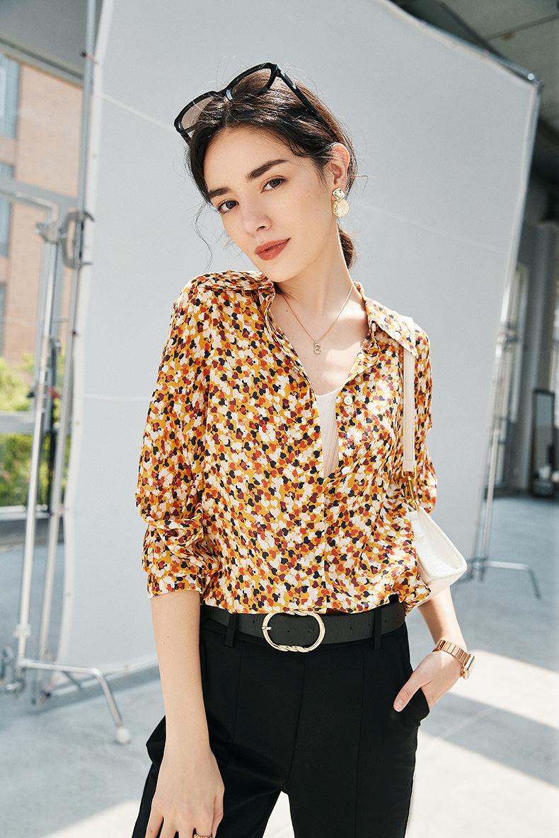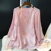 Camisa de seda para mujer, primavera y verano 2024, nueva camisa de protección solar, suelta, fina, para uso exterior, manga larga, estilo festivo, top estampado
