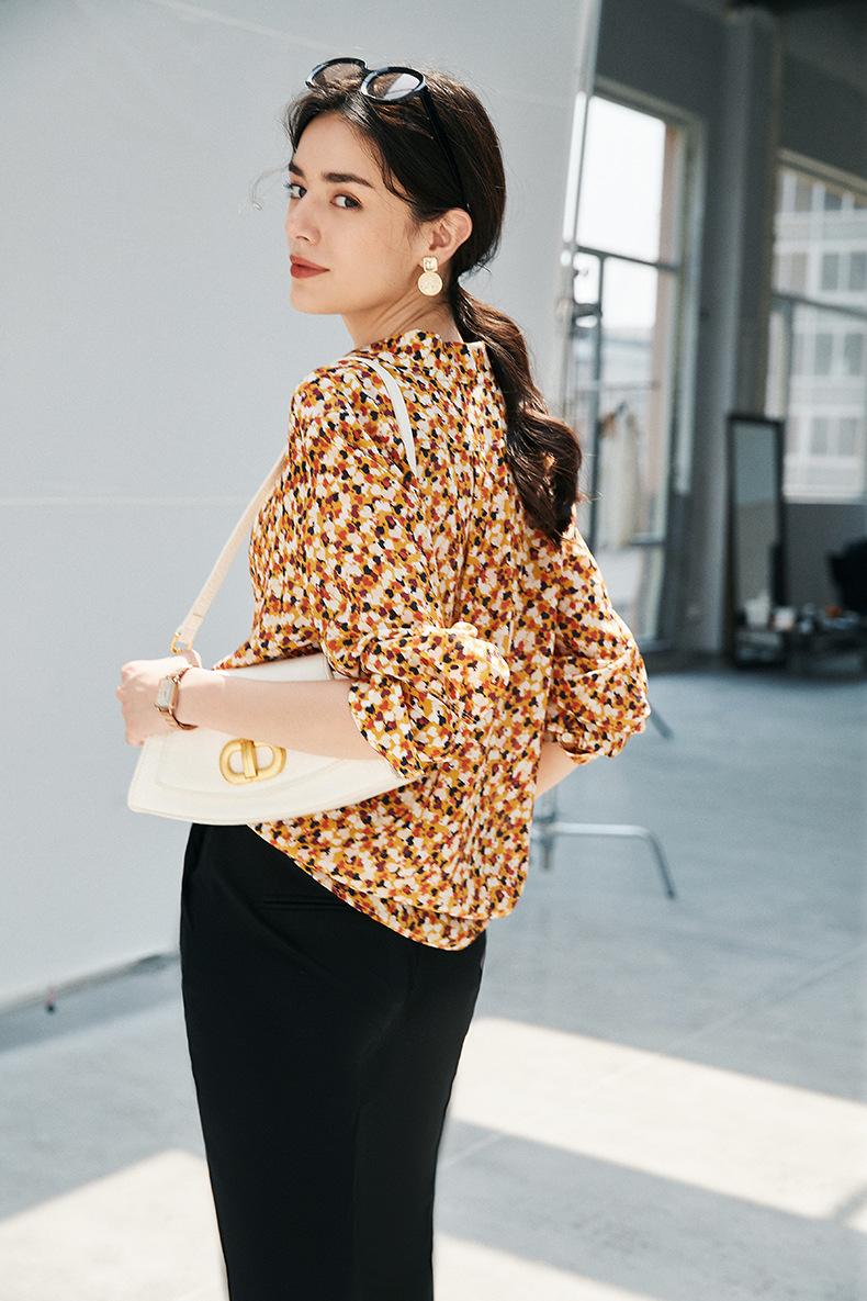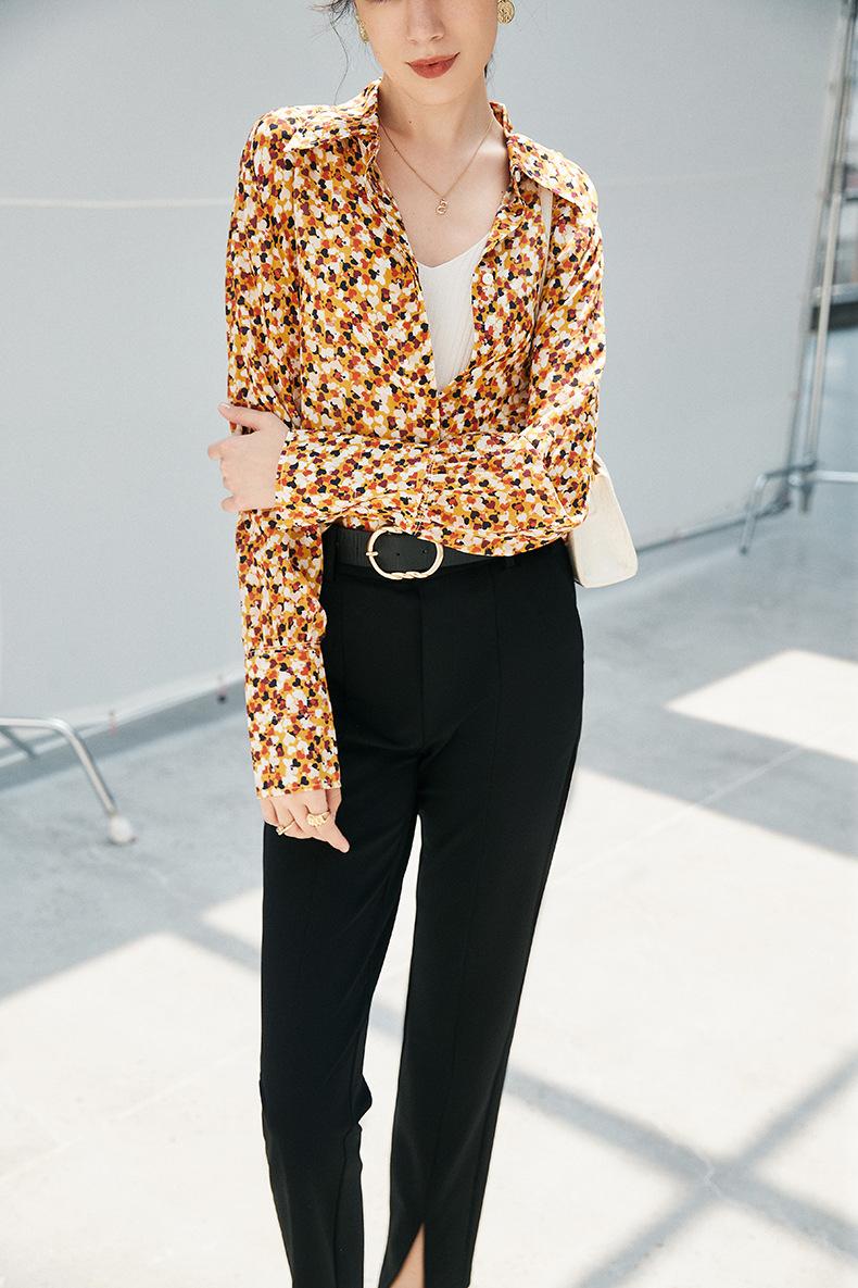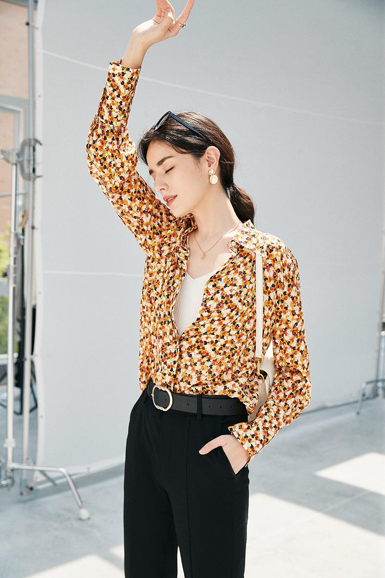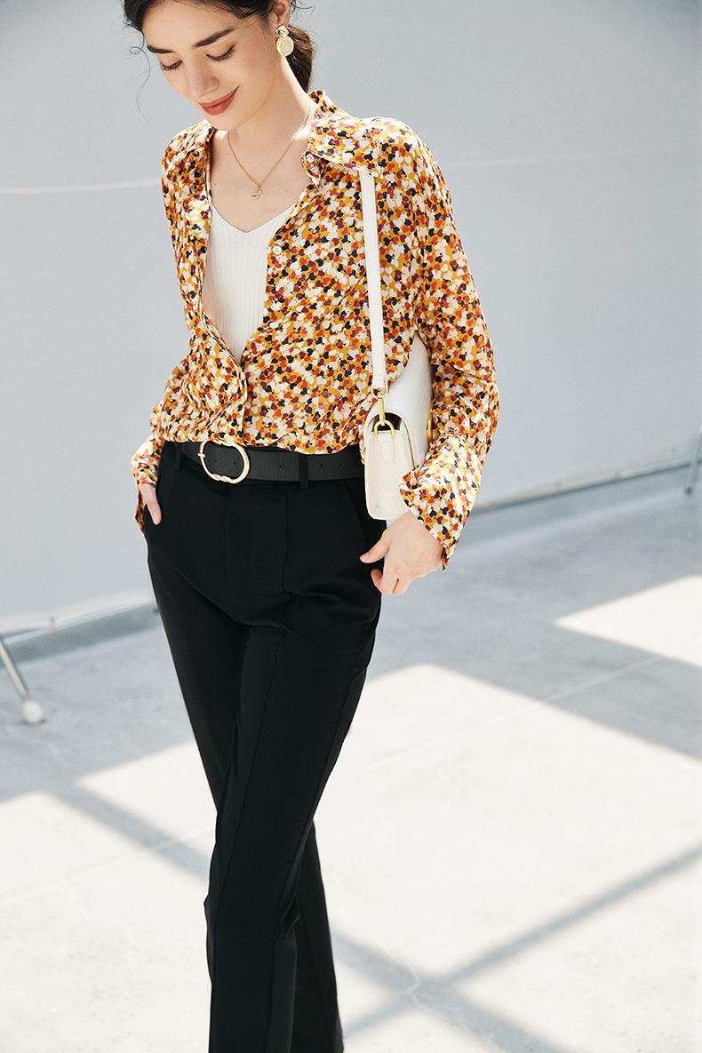 Camisa de seda para mujer, primavera y verano 2024, nueva camisa de protección solar, suelta, fina, para uso exterior, manga larga, estilo festivo, top estampado