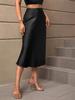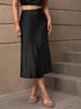 Falda Línea A de Satén Estilo Elegante Europeo y Americano Transfronterizo 2023 Otoño e Invierno Nueva Falda Línea A de Largo Medio Color Puro para Mujer