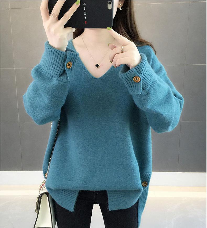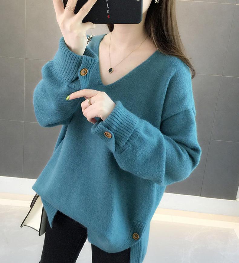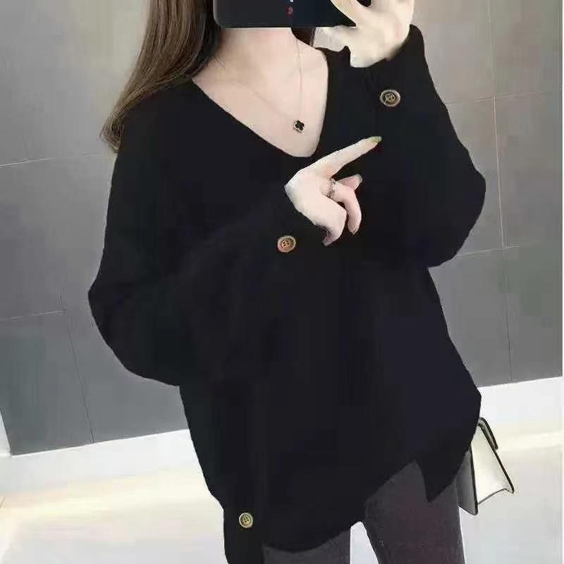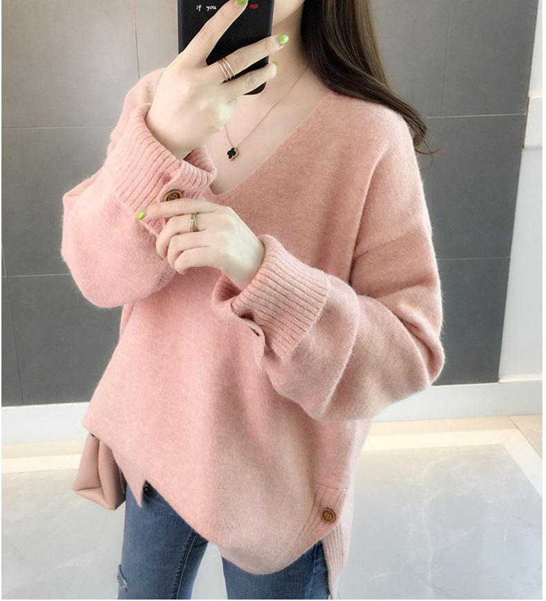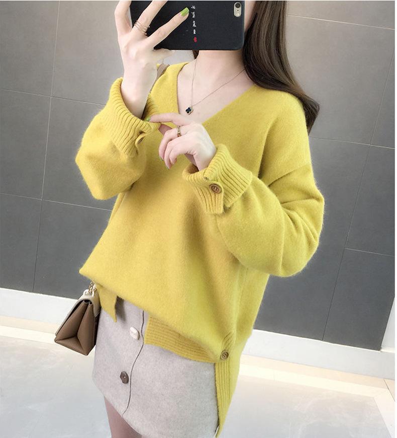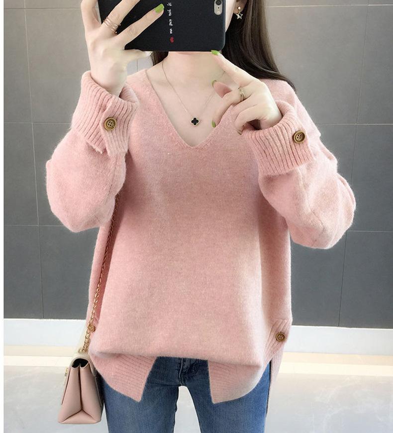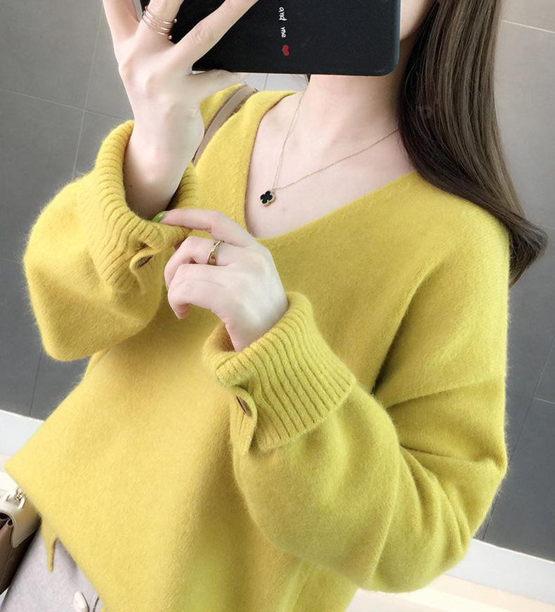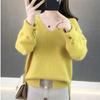 Suéter casual nuevo de estilo coreano de otoño e invierno para mujer, camisa de punto holgada con cuello en V estilo perezoso, top de otoño e invierno de estilo occidental para mujer