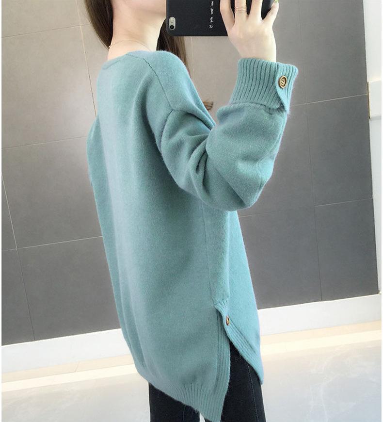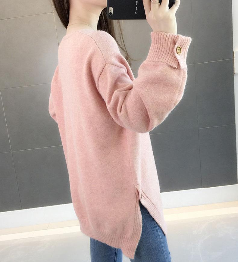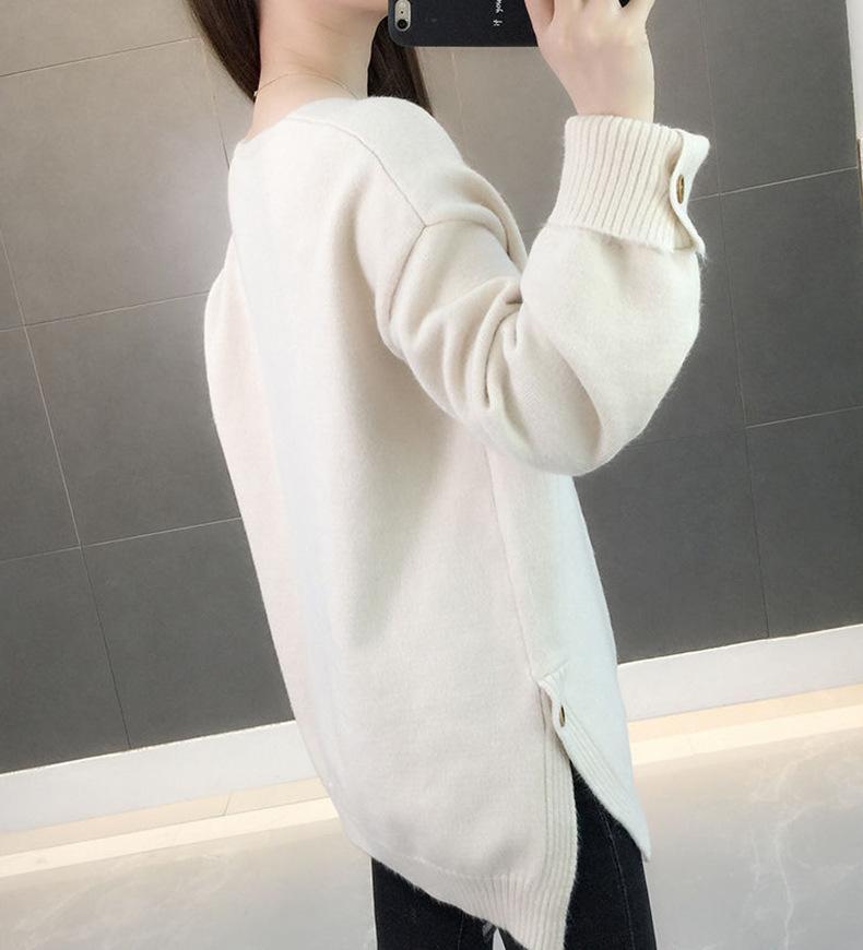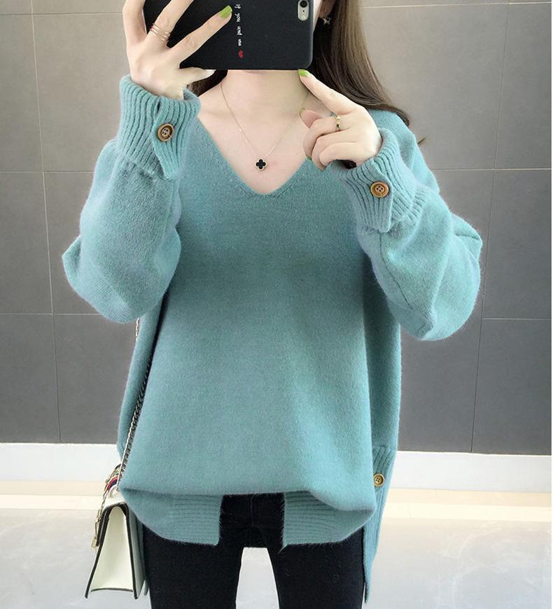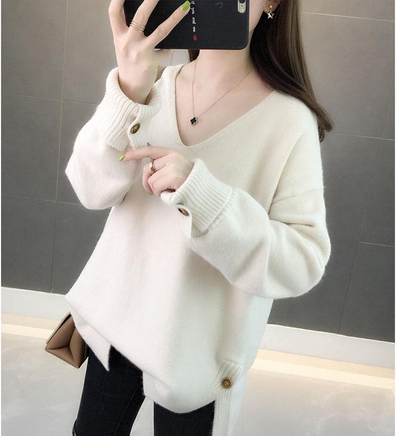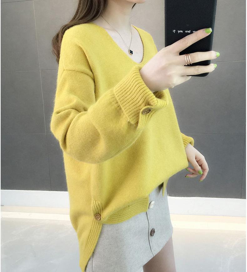 Suéter casual nuevo de estilo coreano de otoño e invierno para mujer, camisa de punto holgada con cuello en V estilo perezoso, top de otoño e invierno de estilo occidental para mujer