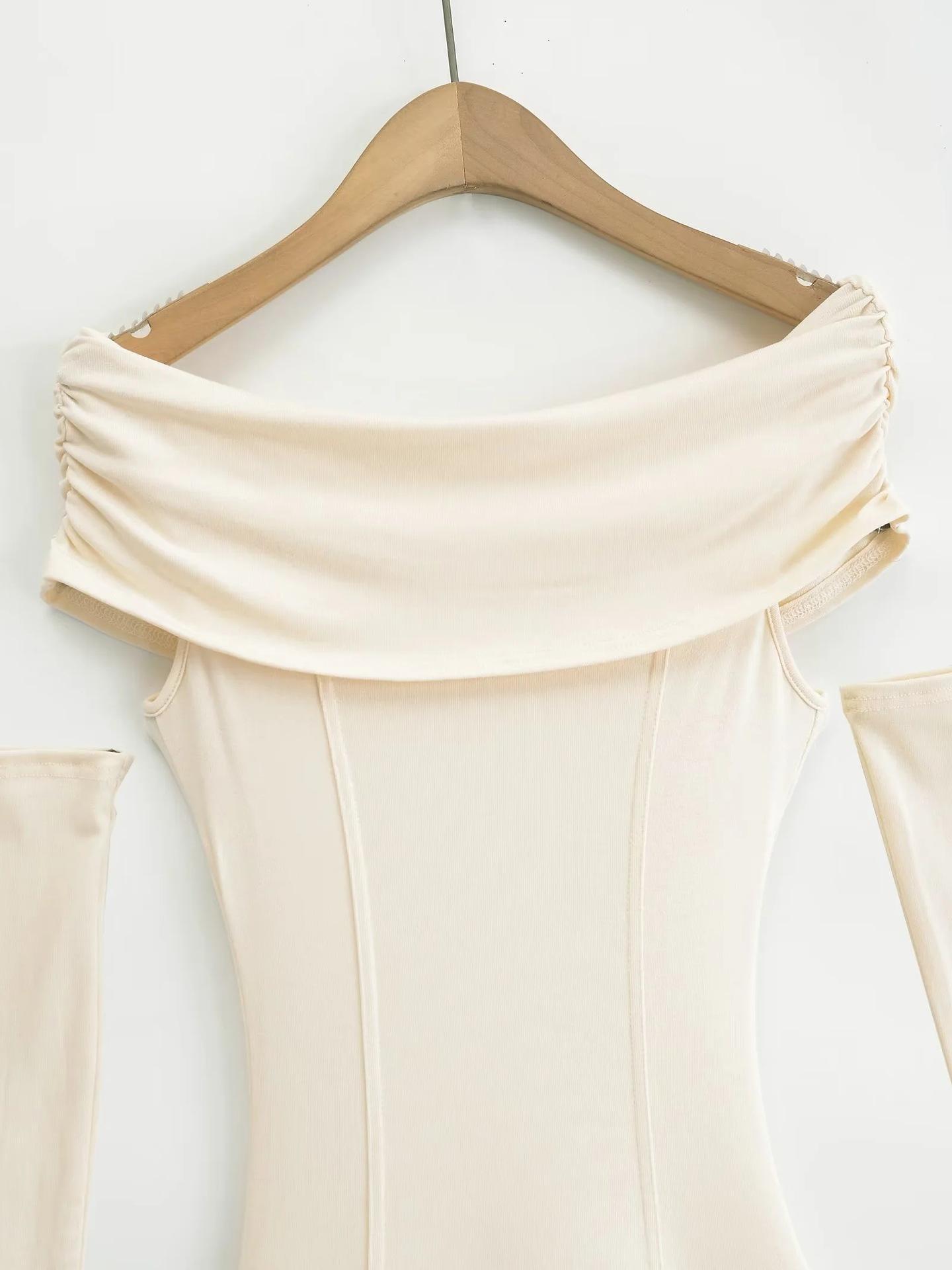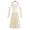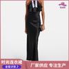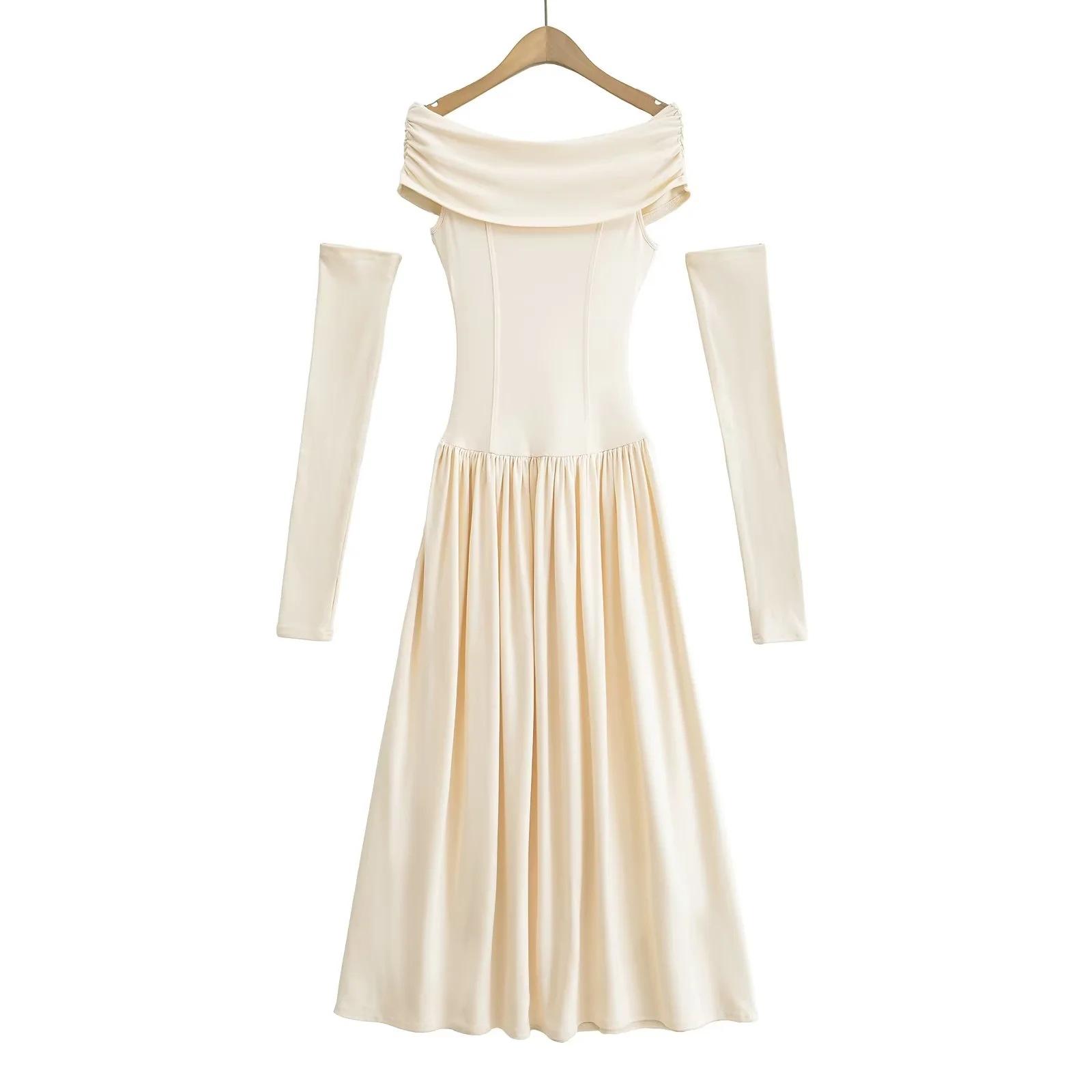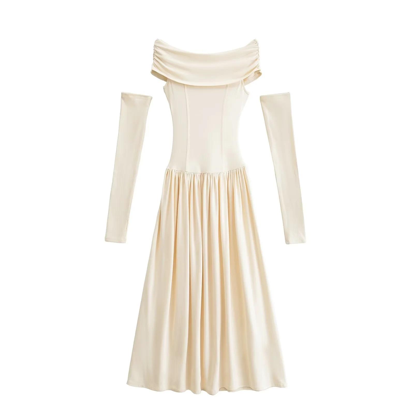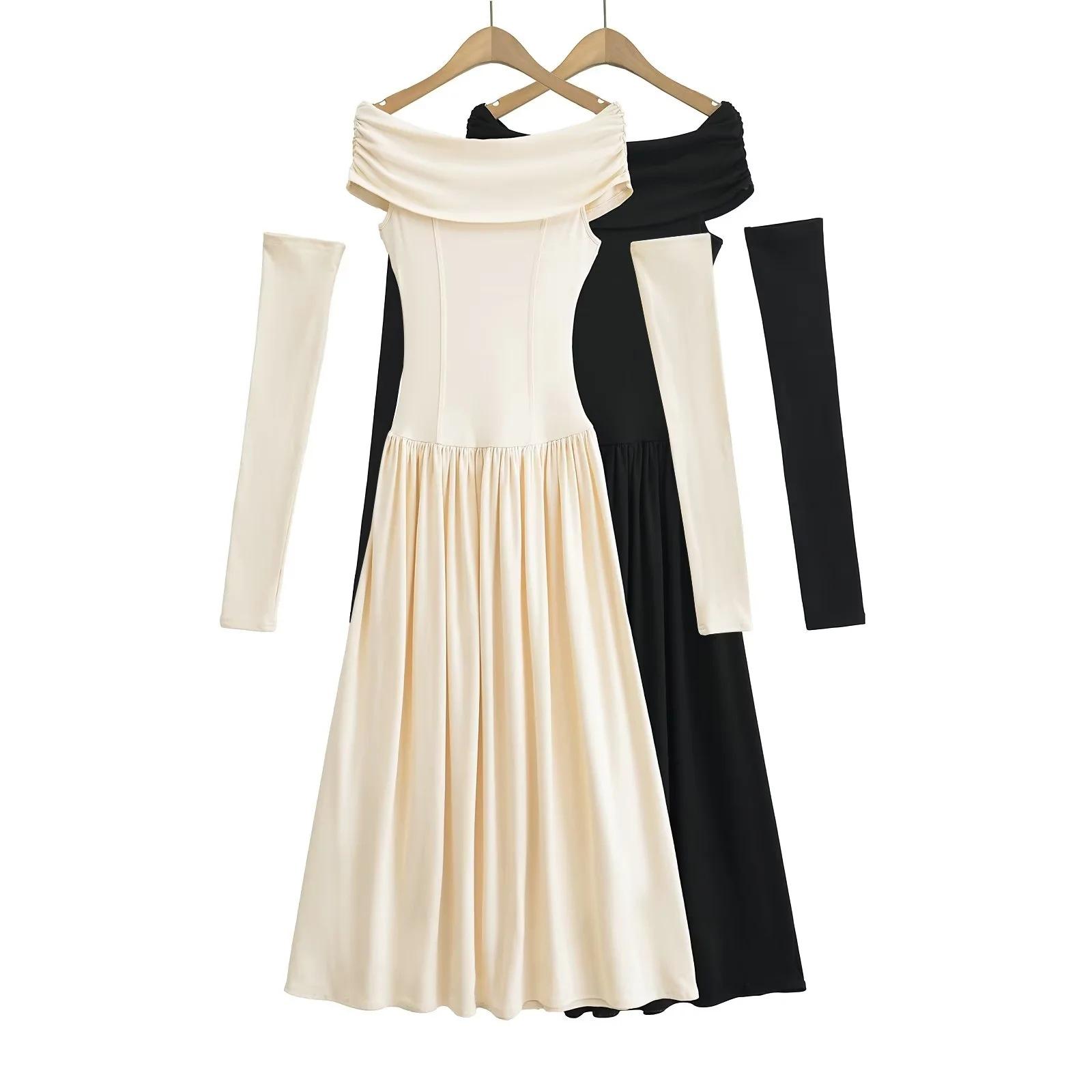 Vestido elegante, sexy, de cintura alta, con un solo hombro, largo, para mujer, novedad de verano 2024, con mangas largas y diseño de patchwork y paraguas.