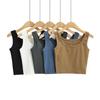 Chaleco de chica sexy para mujer, estilo europeo y americano, de verano, con cuello cuadrado de doble capa, sexy, ajustado, para el ombligo, ropa exterior corta con tirantes