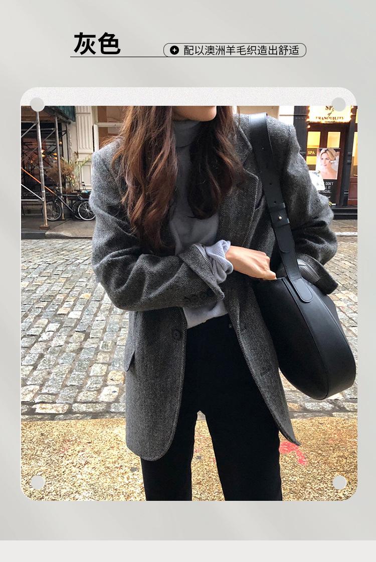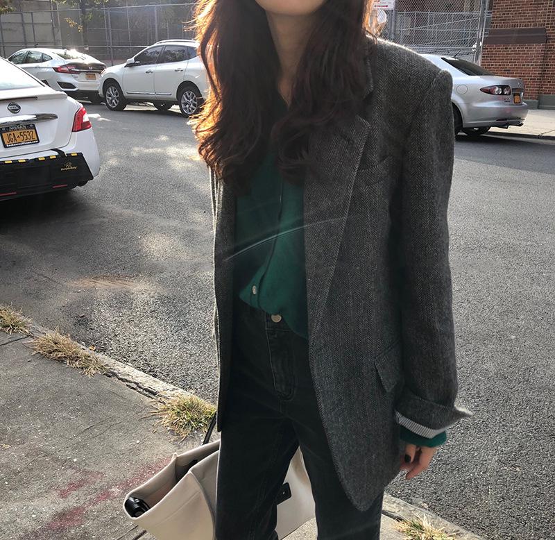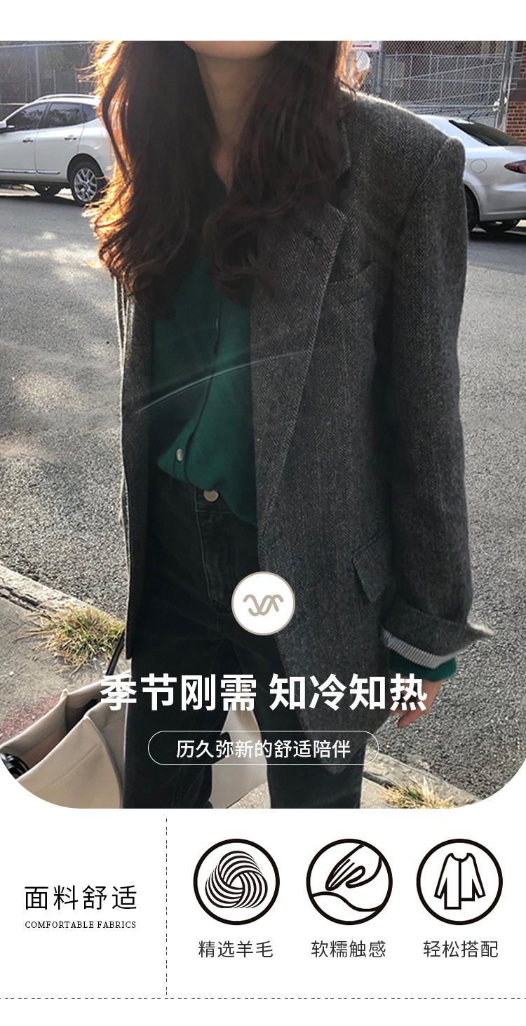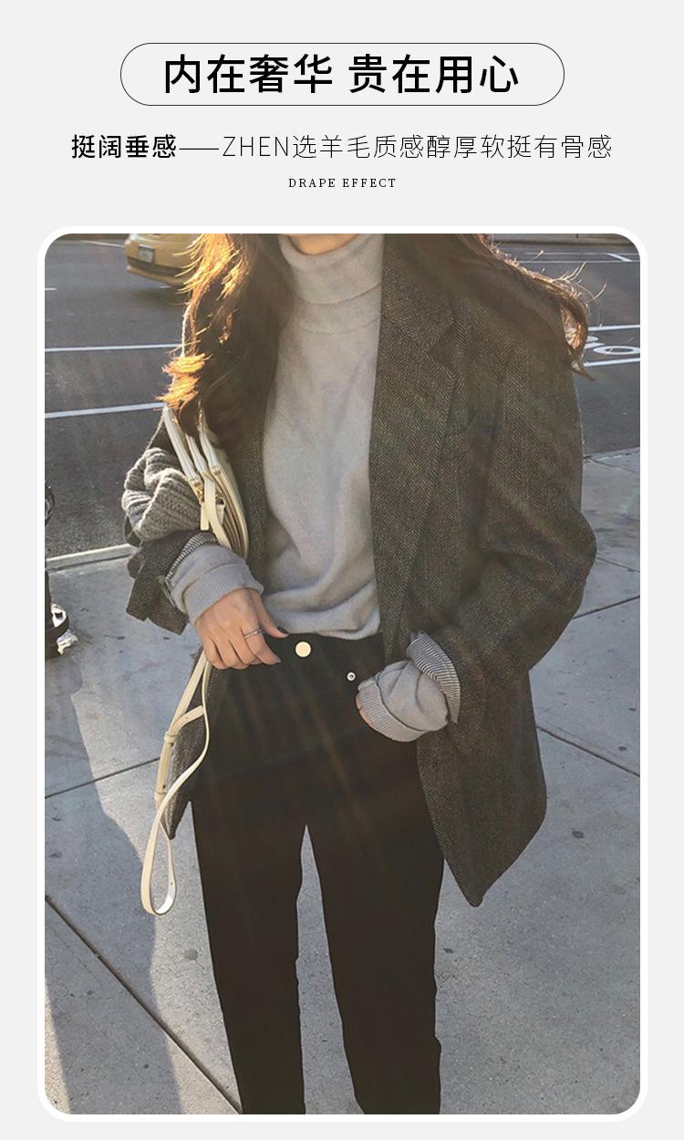 Traje suelto de espiga estilo coreano Top versátil Otoño e Invierno Adelgazante Chaqueta de lana cosida a mano