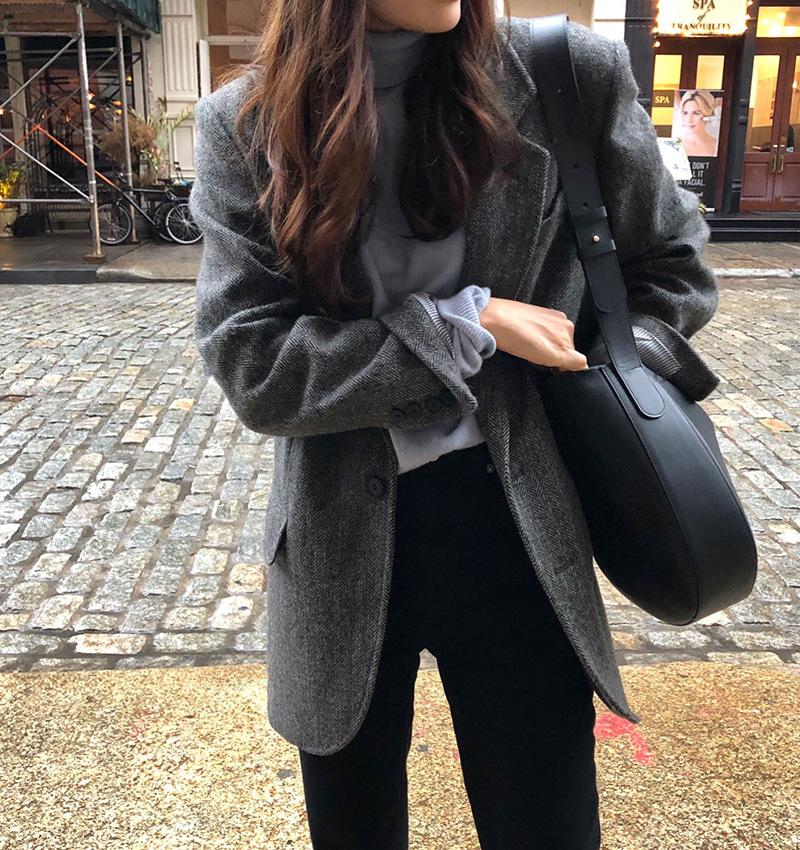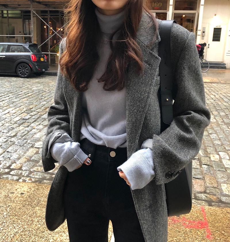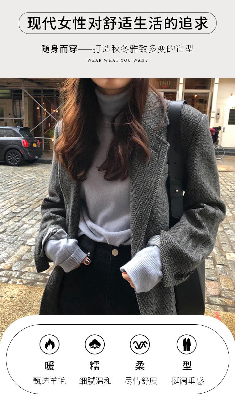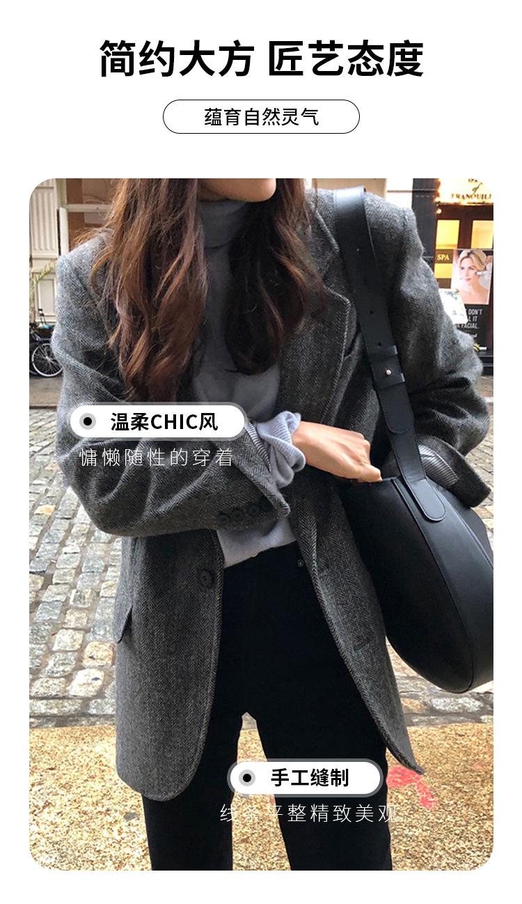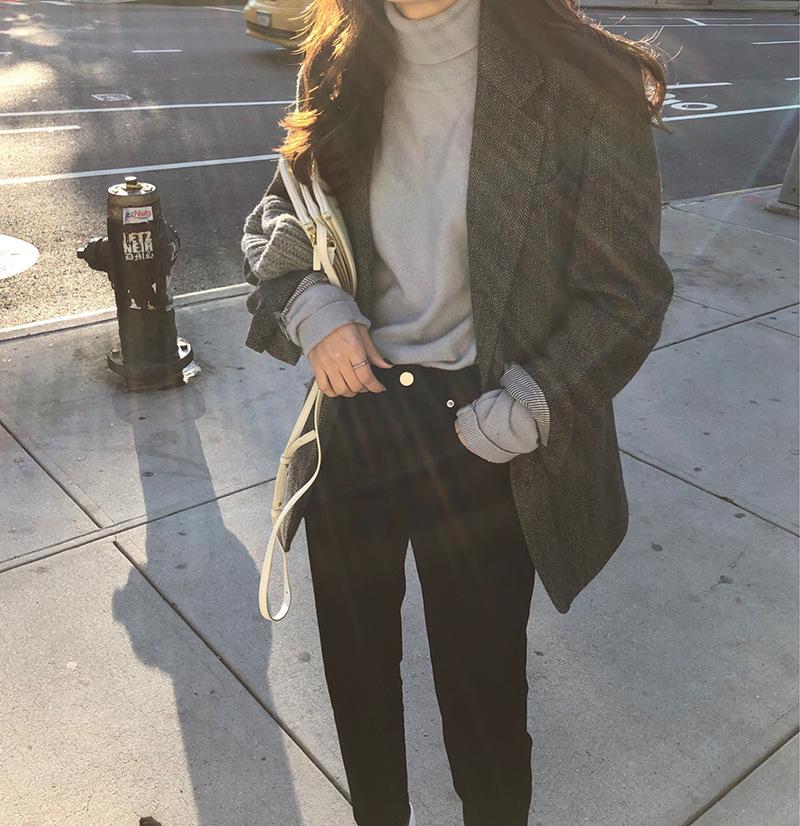 Traje suelto de espiga estilo coreano Top versátil Otoño e Invierno Adelgazante Chaqueta de lana cosida a mano