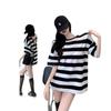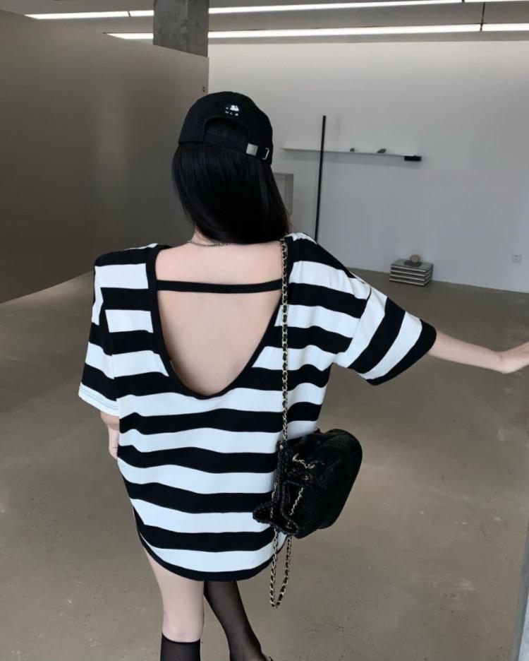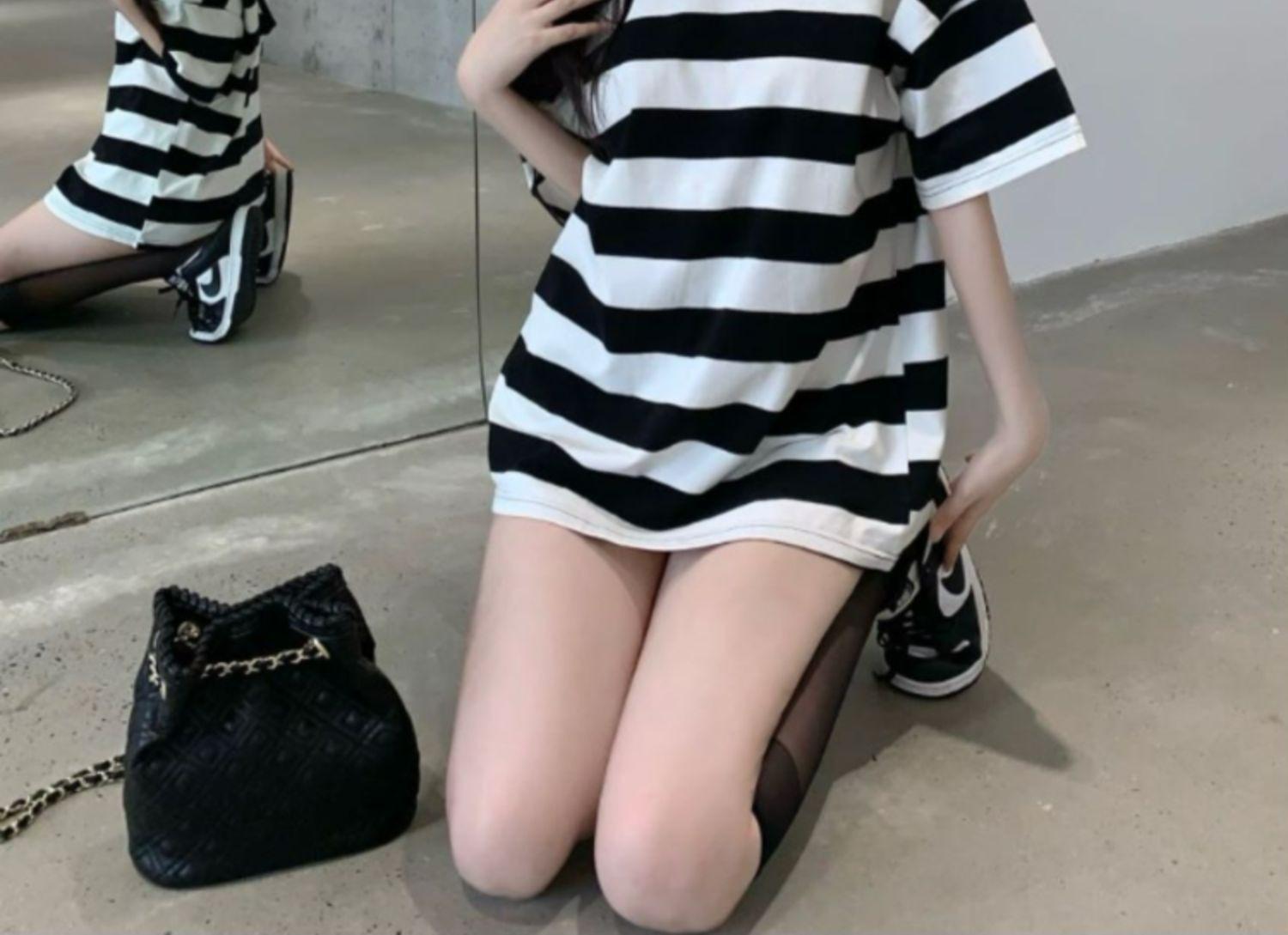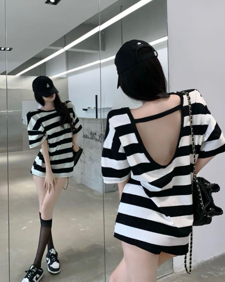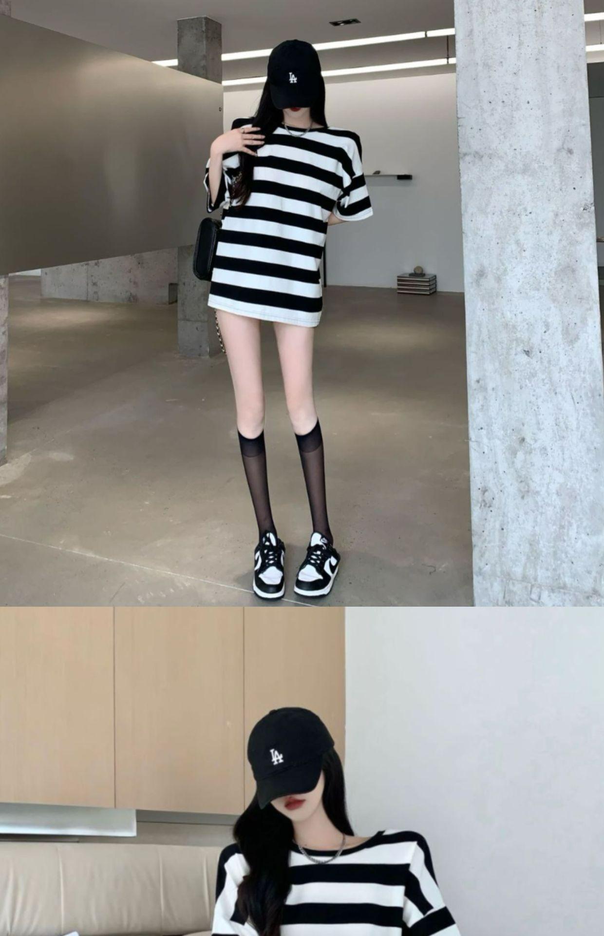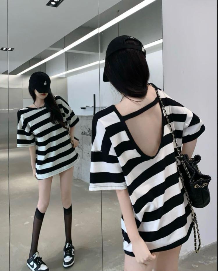 Camiseta holgada de manga corta a rayas de estilo perezoso para mujer, verano 2025, nueva ropa de nicho, de moda, transpirable y cómoda.