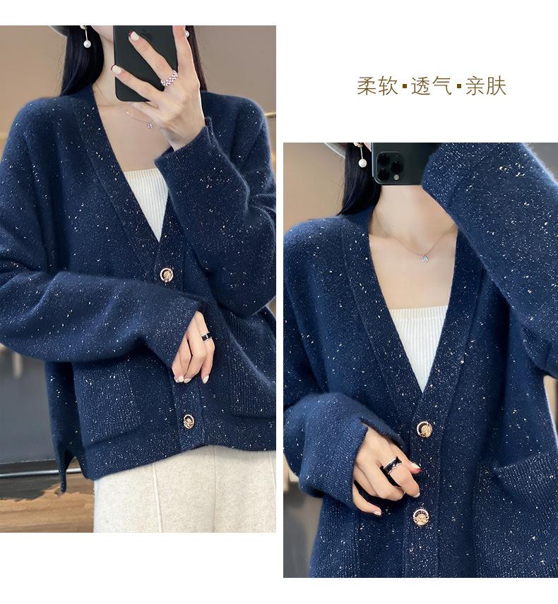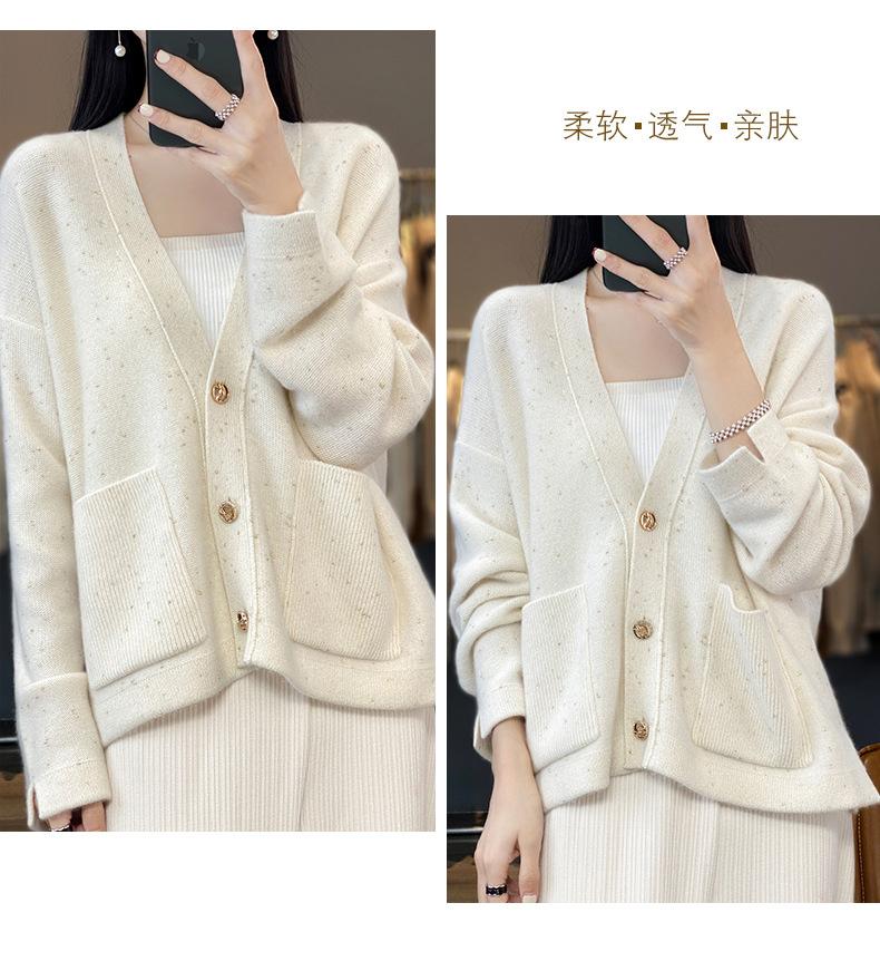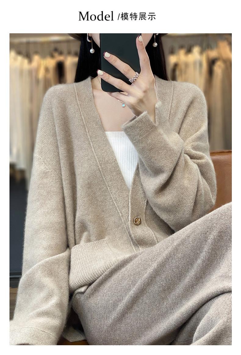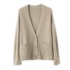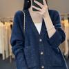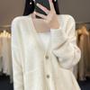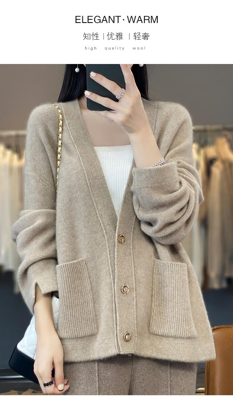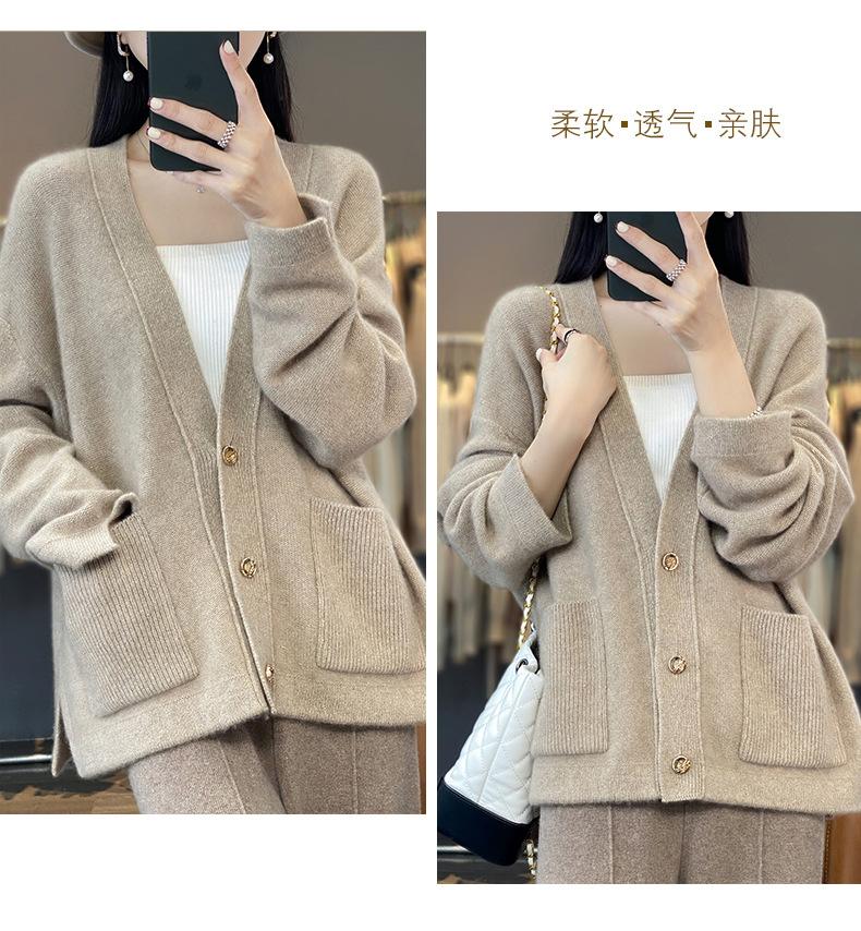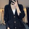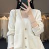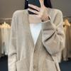 24 Otoño e Invierno Nuevo Estilo Suéter 100 Lana Pura para Mujer Cuello en V Lazo Bolsillo Cárdigan Chaqueta Tejida Suéter Color Puro Top Casual