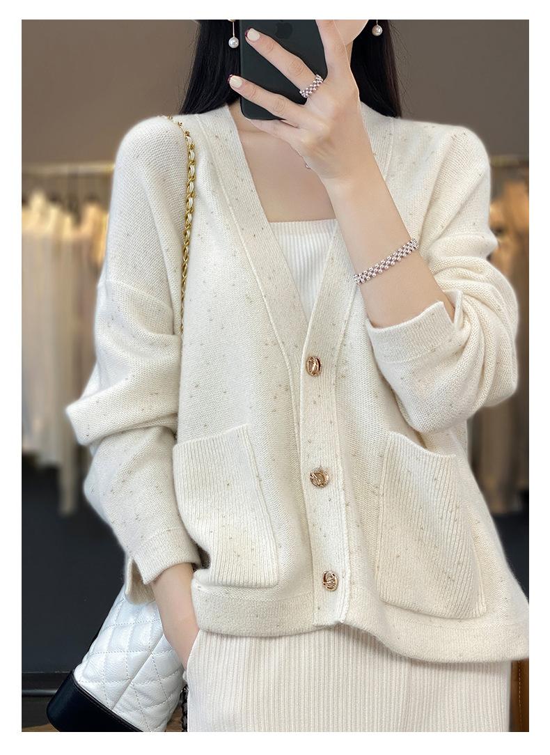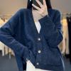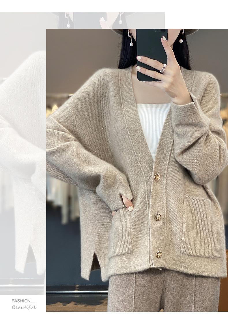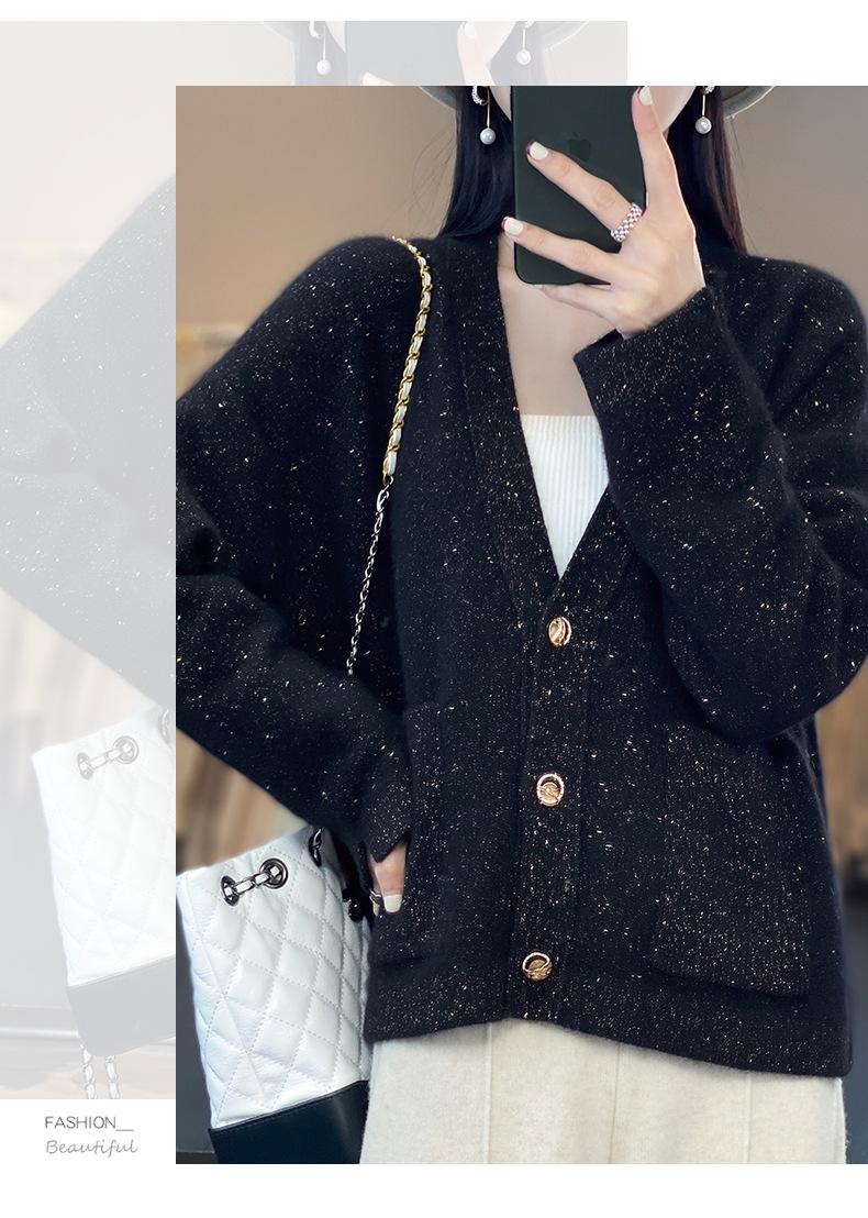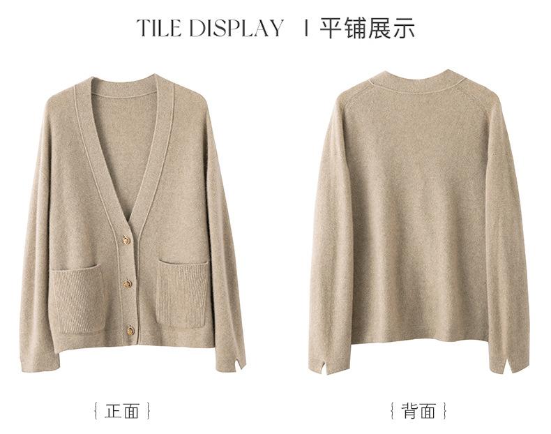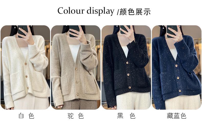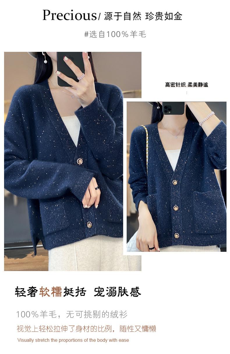 24 Otoño e Invierno Nuevo Estilo Suéter 100 Lana Pura para Mujer Cuello en V Lazo Bolsillo Cárdigan Chaqueta Tejida Suéter Color Puro Top Casual