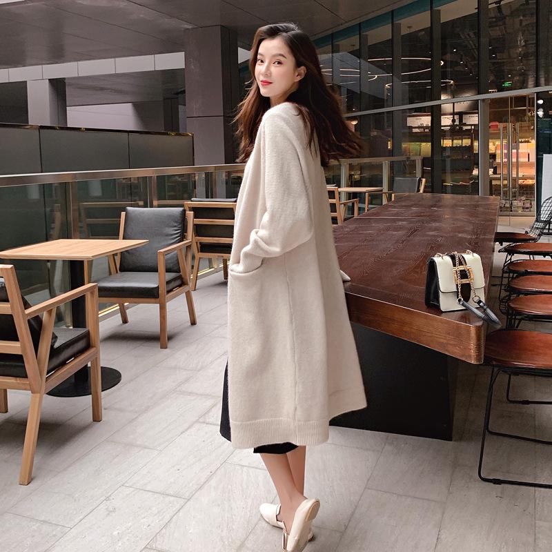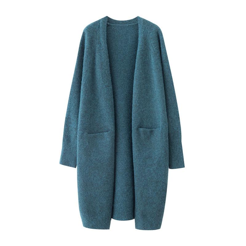Suéter largo de otoño e invierno 2023 para mujer, elegante suéter tipo chal exterior de color sólido, cárdigan de moda para mujer