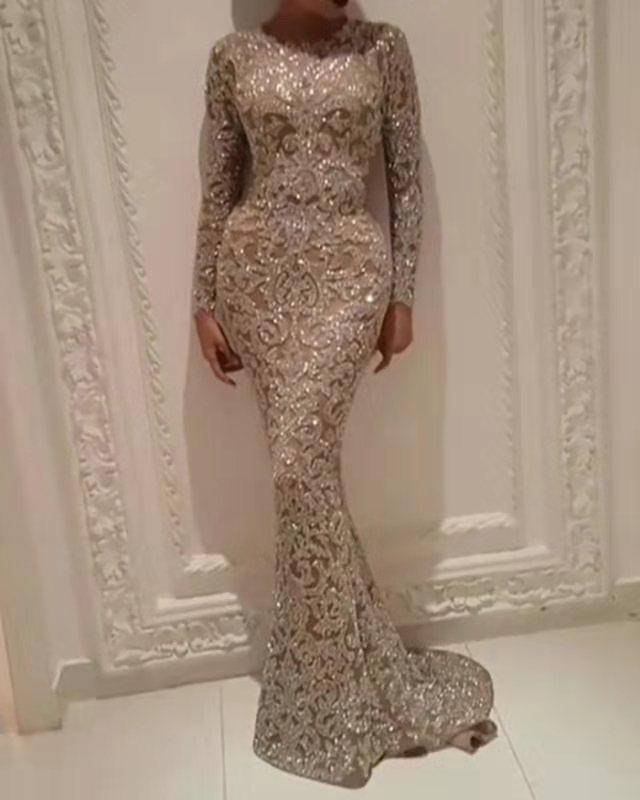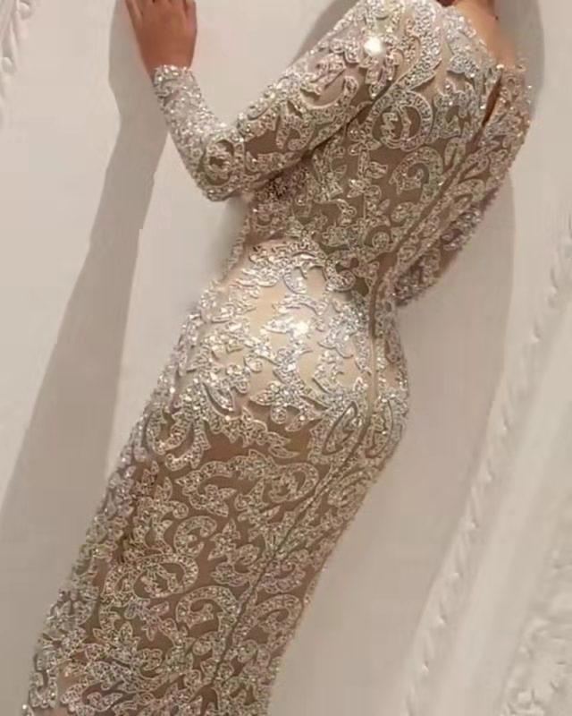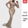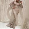 2025 Nueva Ropa de Mujer de Exportación Transfronteriza Europea y Americana Amazon Bronceado Manga Larga Ajustado Sexy Falda Larga Vestido de Noche