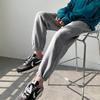 Pantalones deportivos grises con cordón para mujer, ropa de trabajo, estilo americano, de cintura alta, holgados e informales, para otoño, 2023