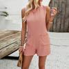 Ropa Europea y Americana Transfronteriza Diyun 2024 Primavera y Verano Exportación Casual Color Puro Top sin Mangas Pantalones con Bolsillo de Solapa Pantalones Cortos Mono