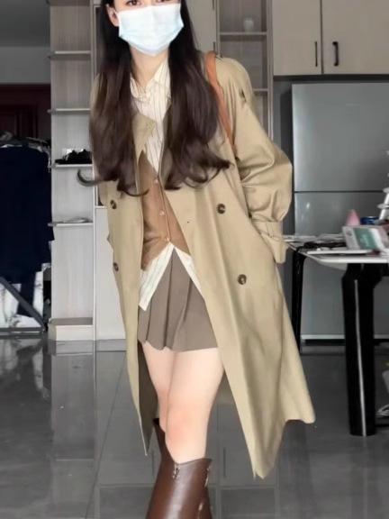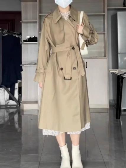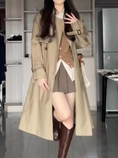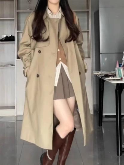 Rompevientos Caqui para Mujer Largo Medio 2025 Primavera y Otoño Nuevo Estilo Británico Versátil Doble Botonadura Ropa Exterior para Mujer Ropa de Trabajo para Mujer
