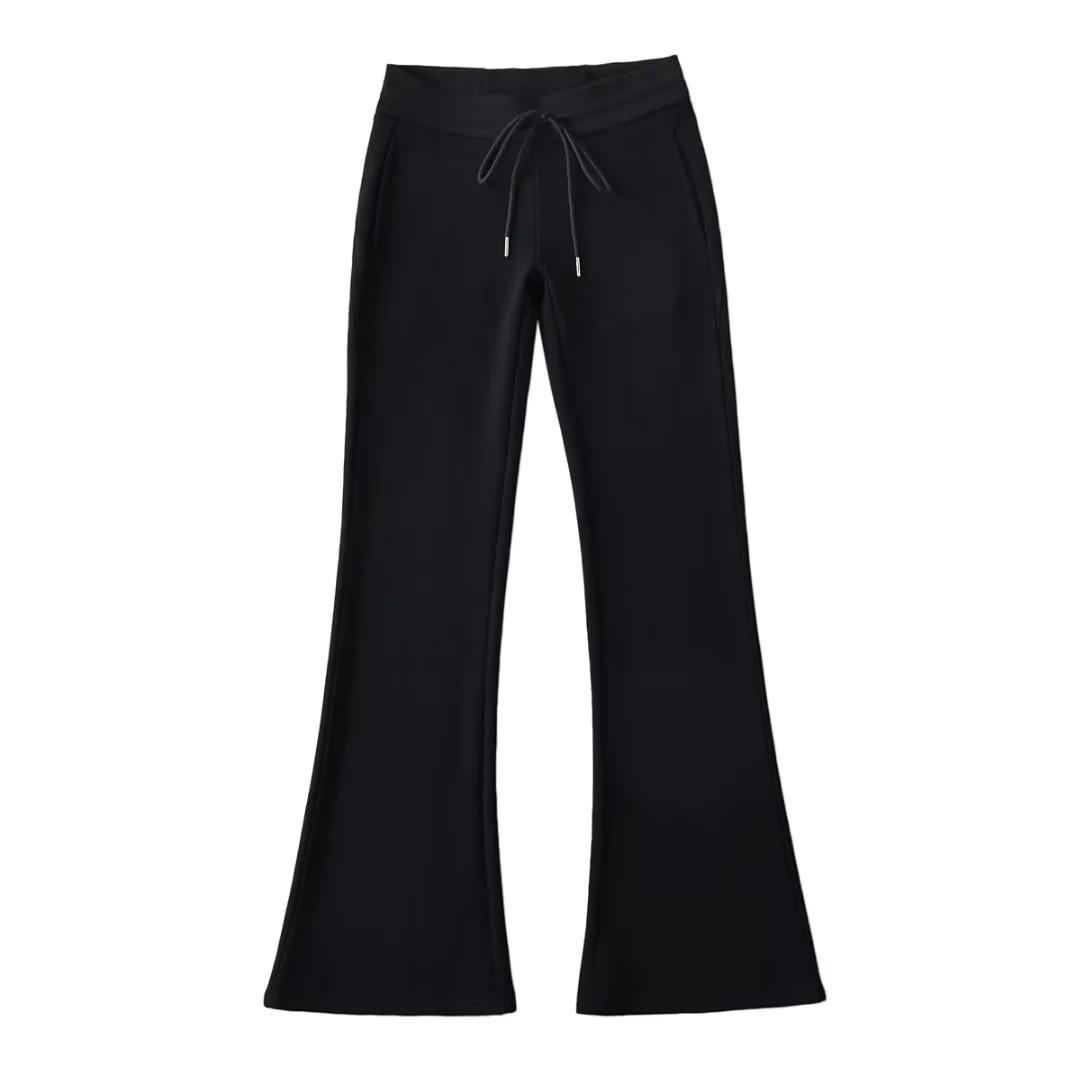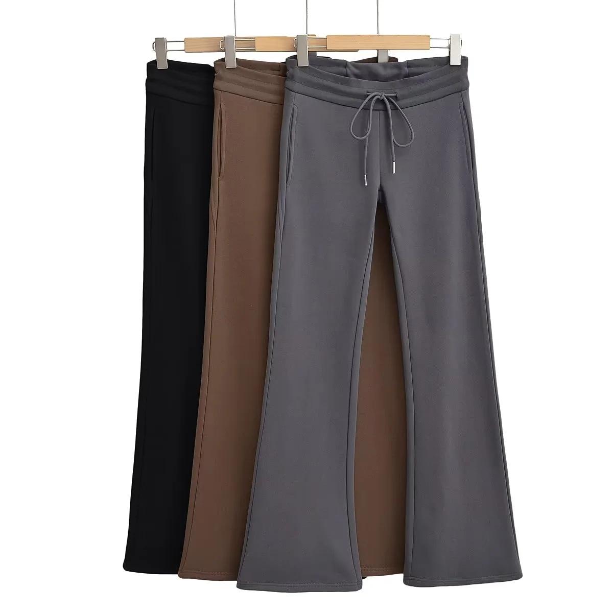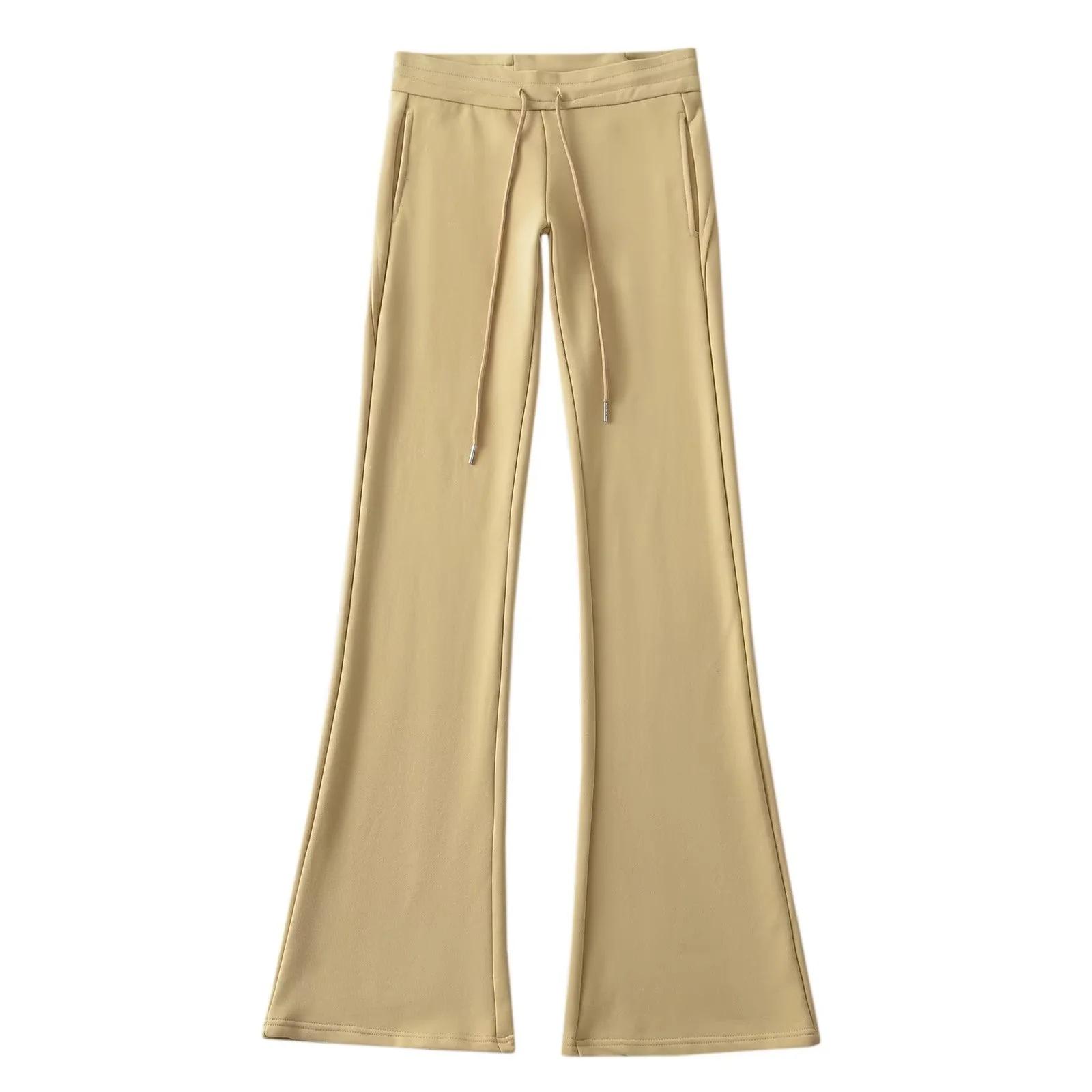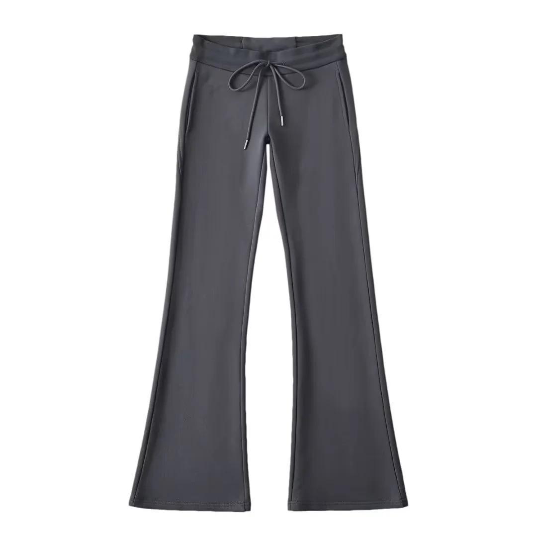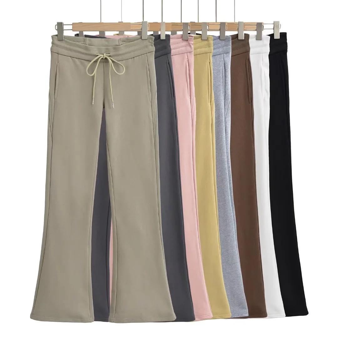 Pantalones deportivos casuales americanos acampanados para mujer, otoño 2023, nuevos pantalones acampanados versátiles adelgazantes de cintura baja con cordón y alta elasticidad