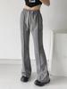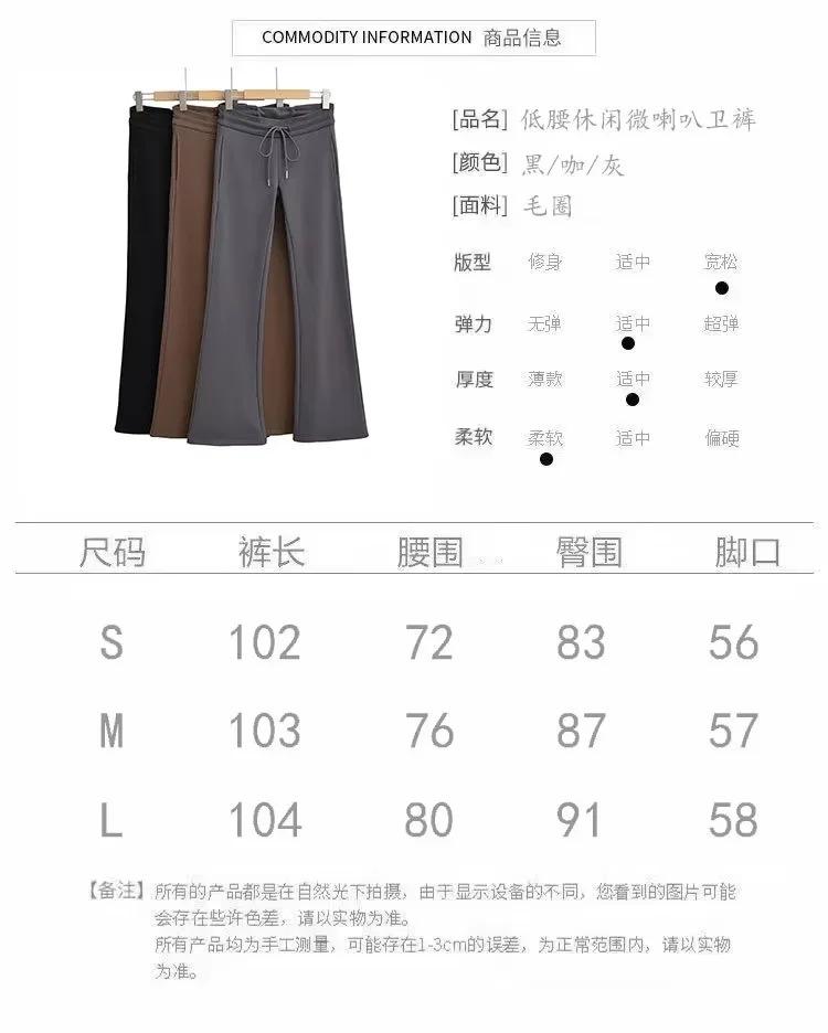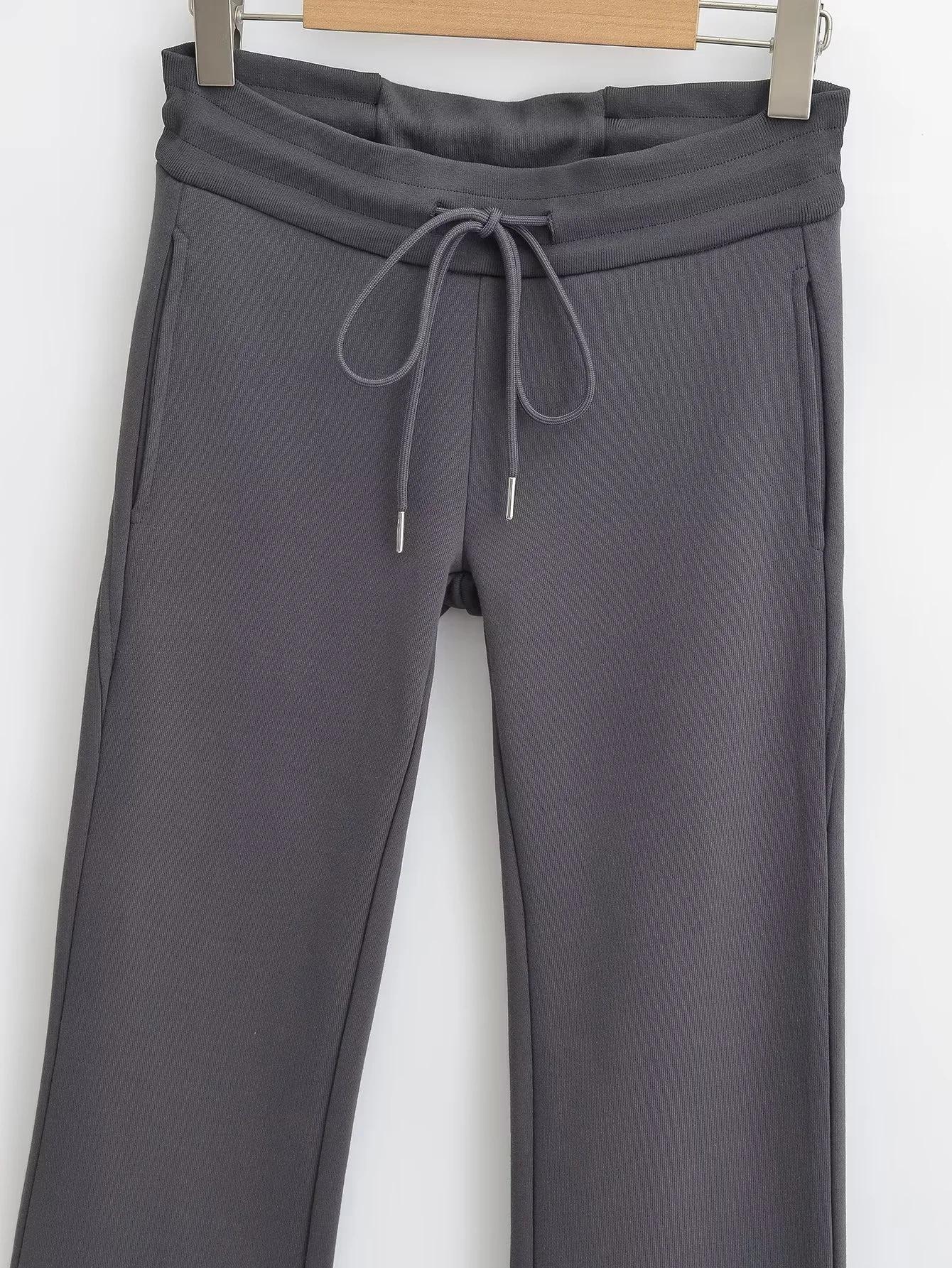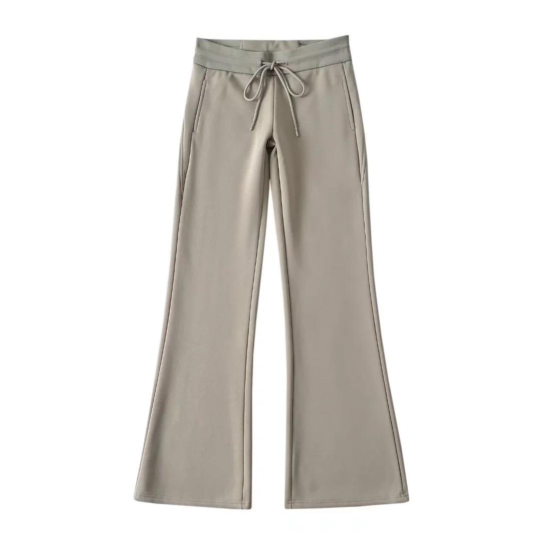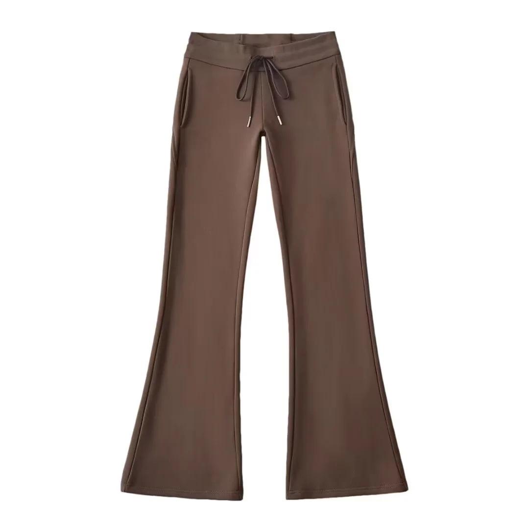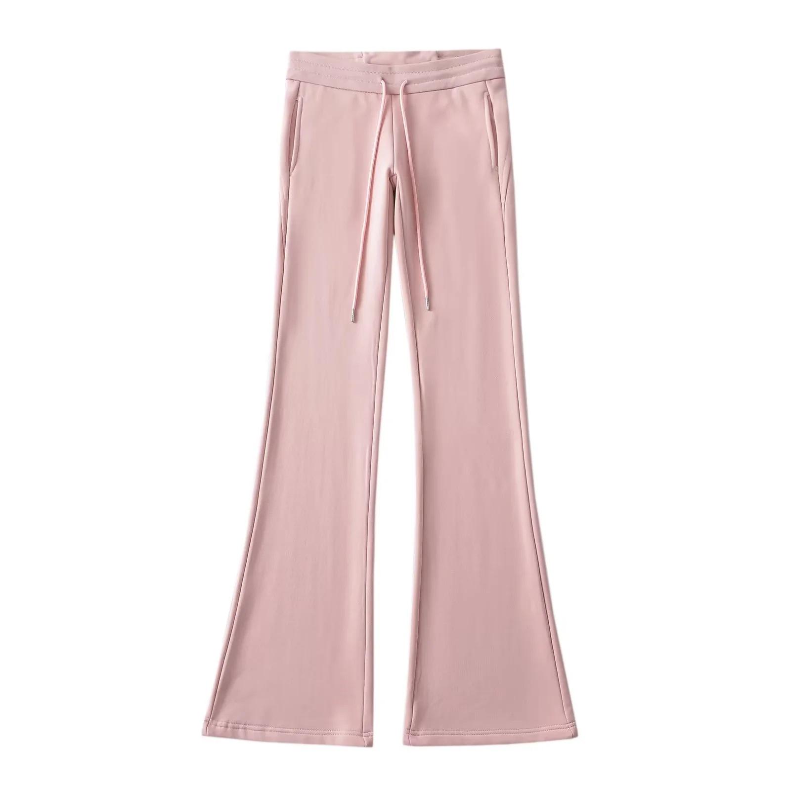 Pantalones deportivos casuales americanos acampanados para mujer, otoño 2023, nuevos pantalones acampanados versátiles adelgazantes de cintura baja con cordón y alta elasticidad