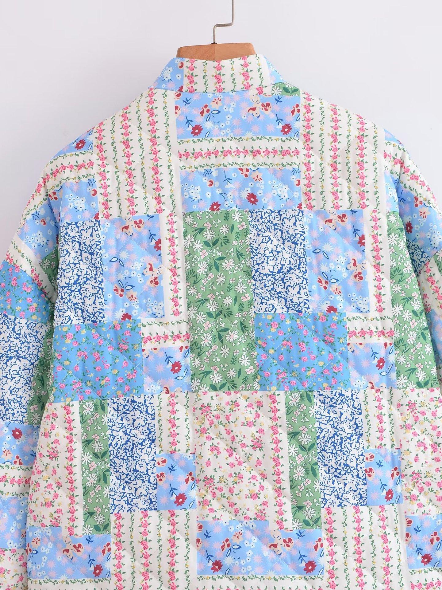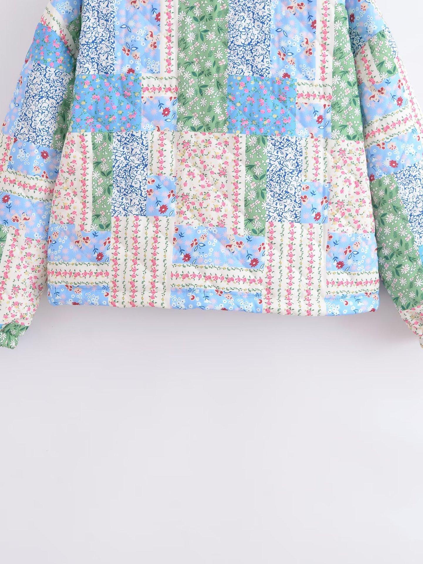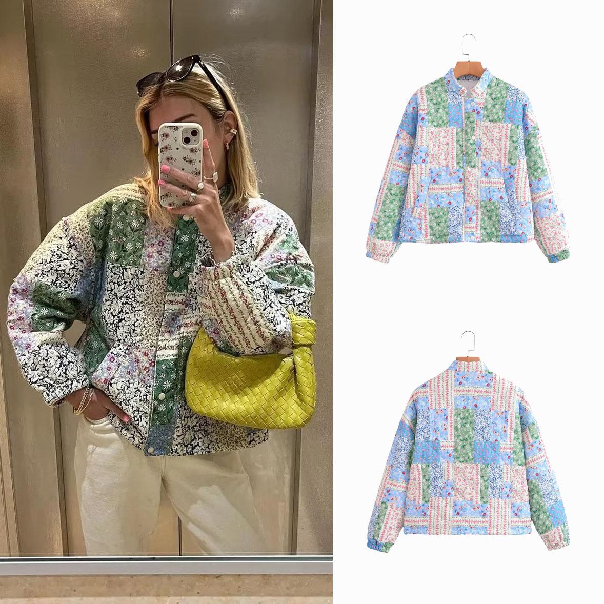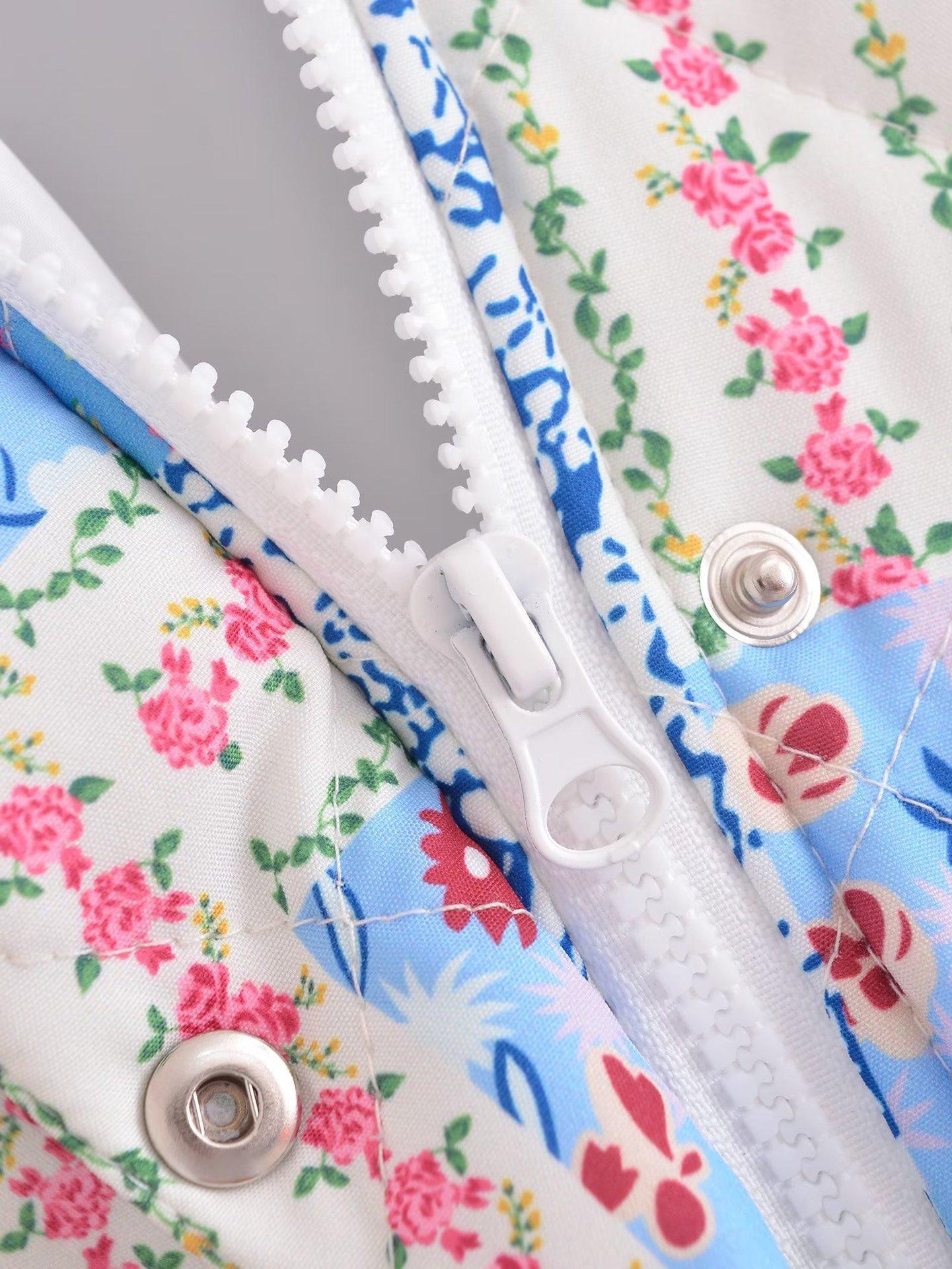 Transfronterizo Amazon 2023 Otoño/Invierno Nuevo Chaqueta Holgada de Mujer con Cuello Alto Manga Larga Estampado Floral Acolchada de Algodón C91681