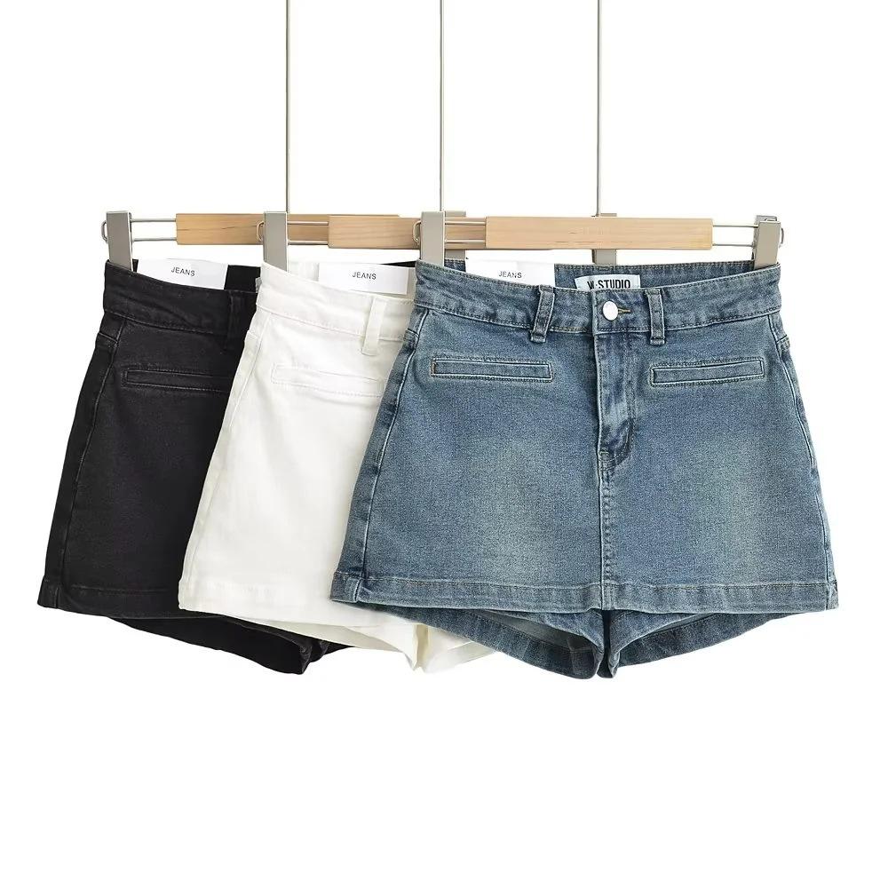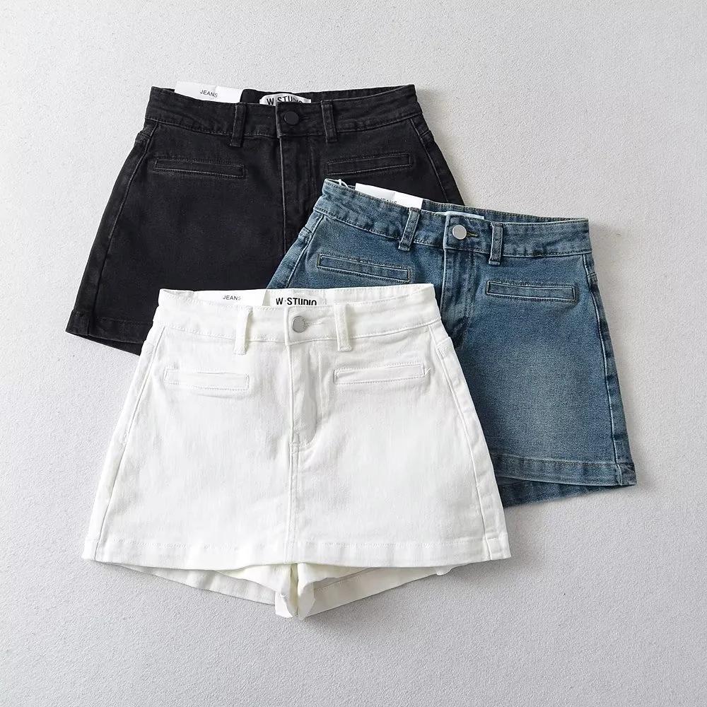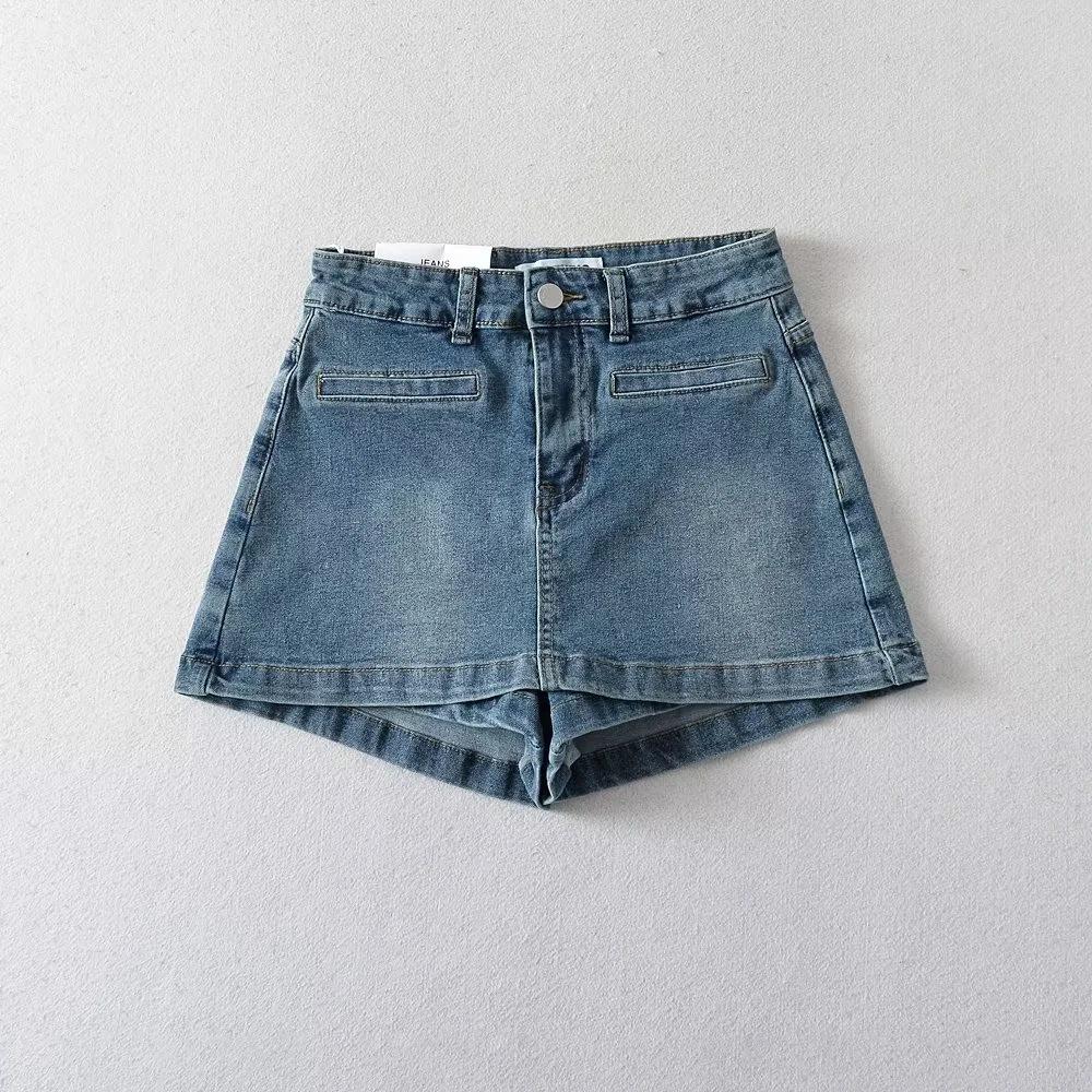 Falda de Mezclilla de Moda con Bolsillo Falso Estilo Europeo y Americano para Mujer, Nueva, Ajustada a la Cadera, Sexy, Elástica