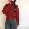 Tops de manga larga con cuello medio abierto de estilo europeo y americano para mujer, otoño e invierno, nuevo suéter holgado de color sólido con cuello alto y rayas en las axilas |