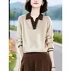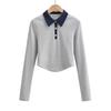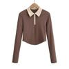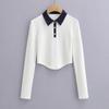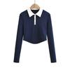 Otoño e Invierno nuevo polo europeo y americano para mujer de manga larga con cuello POLO en color contrastante C74790