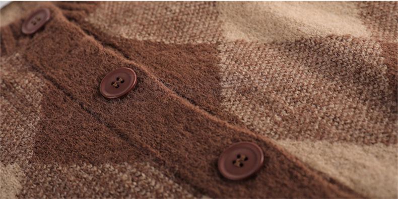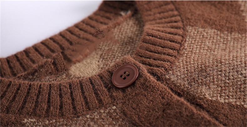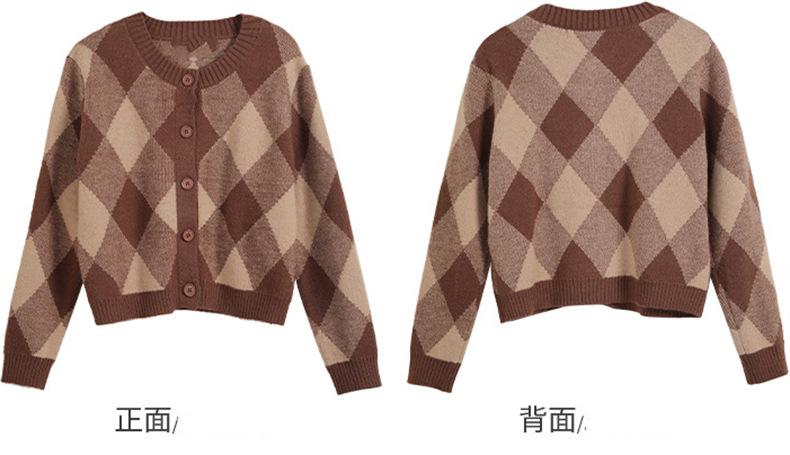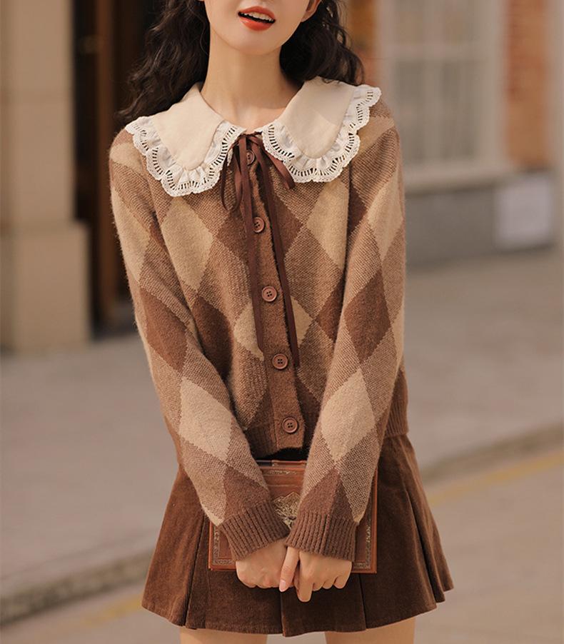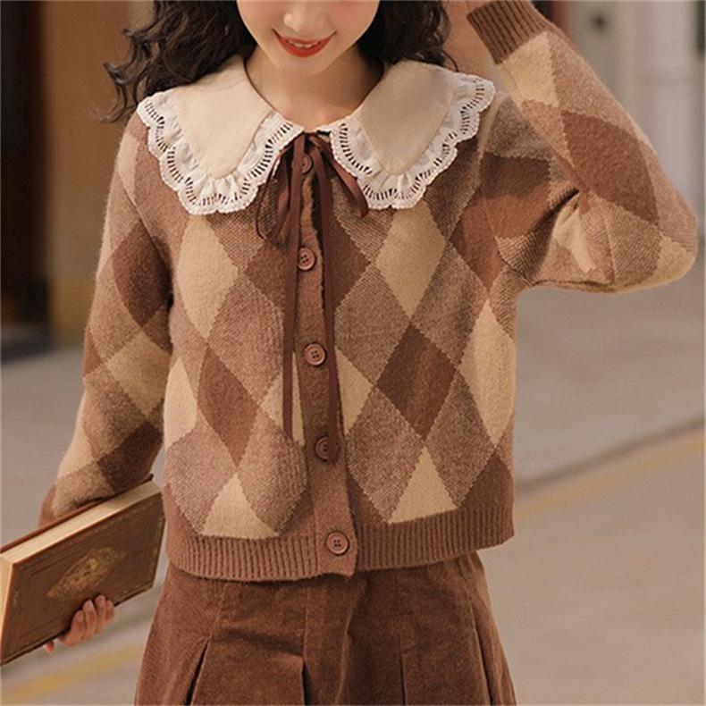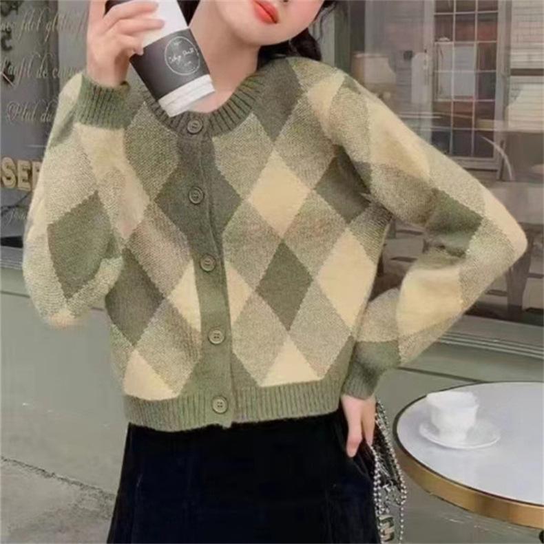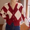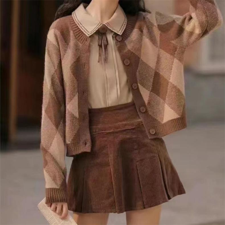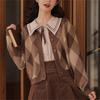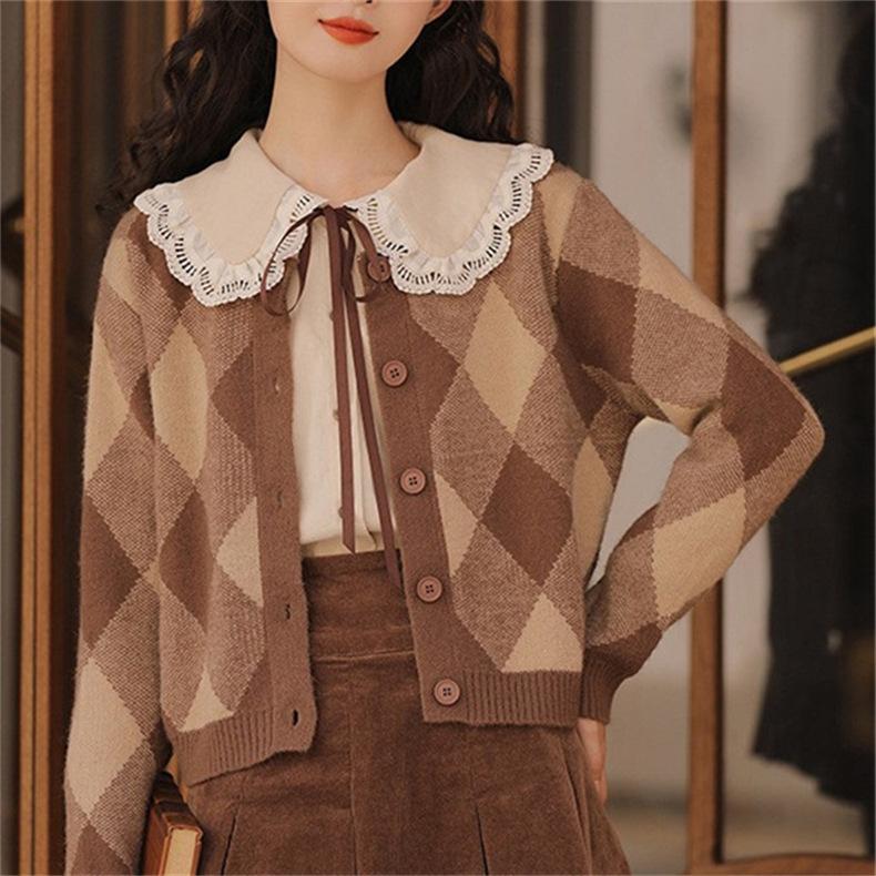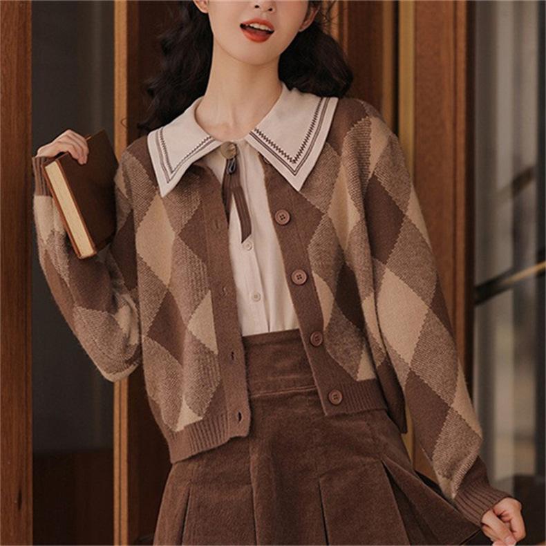 Cárdigan de Punto Diamante Nuevo Otoño e Invierno 2025 para Mujer, Suéter de Estilo Lánguido, Dulce y Retro, con Temperamento Gentil, Top para Mujer