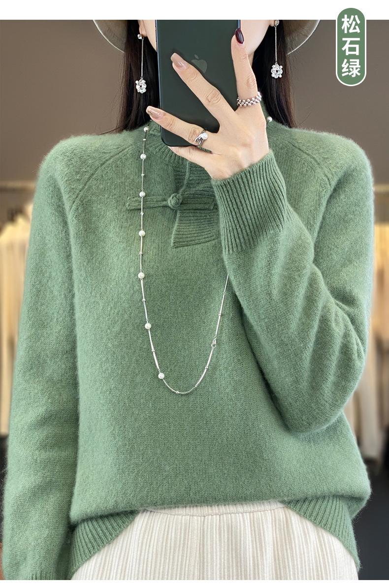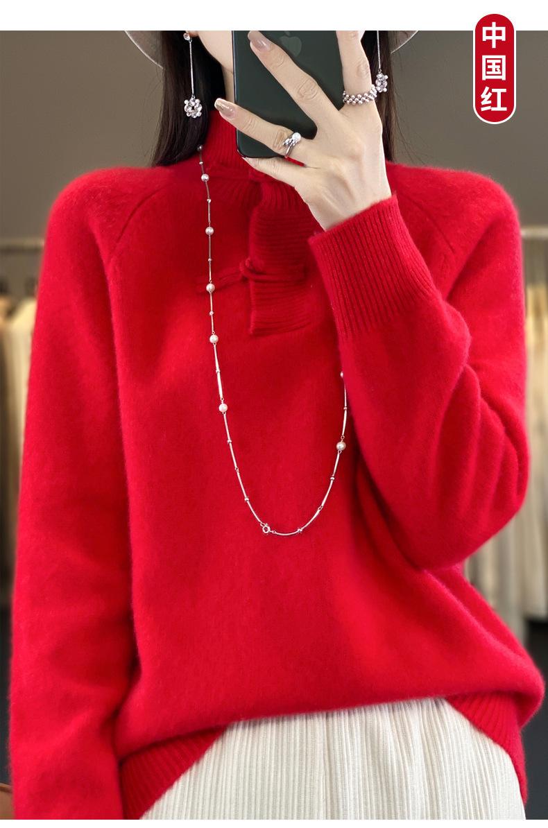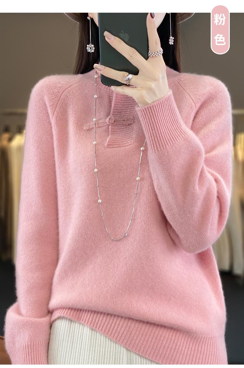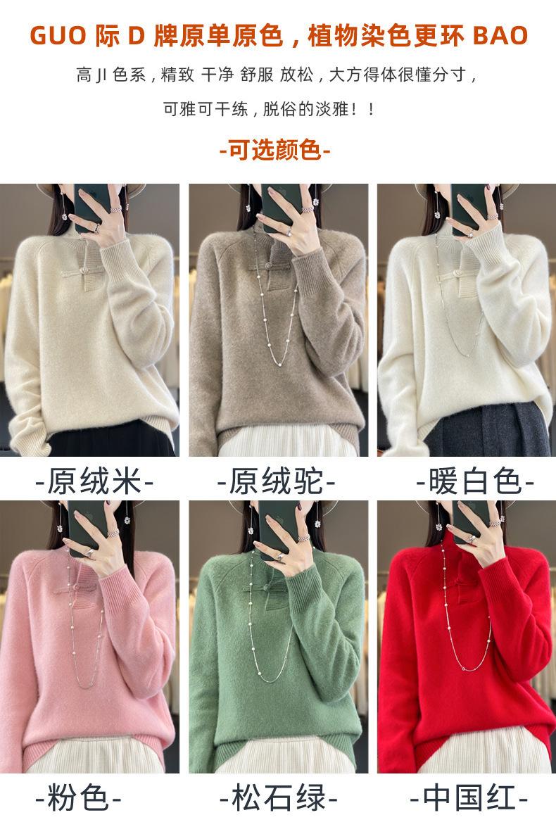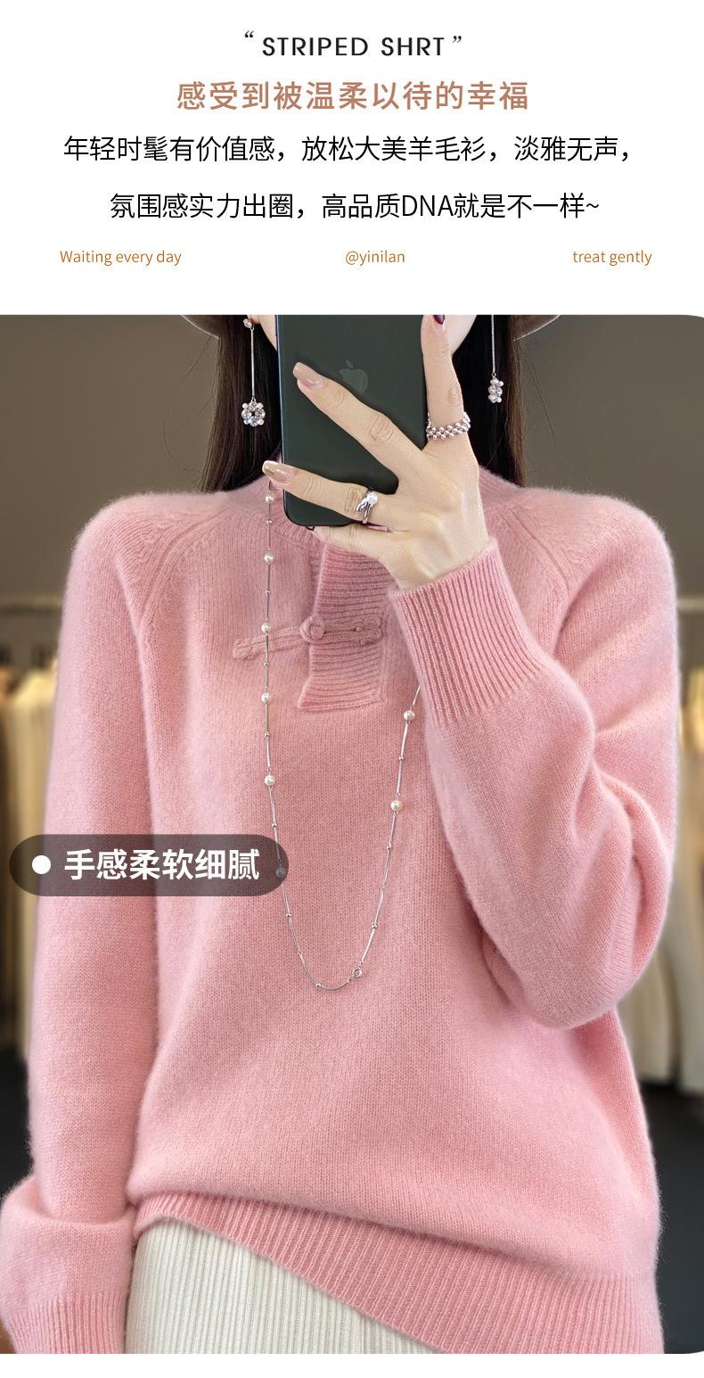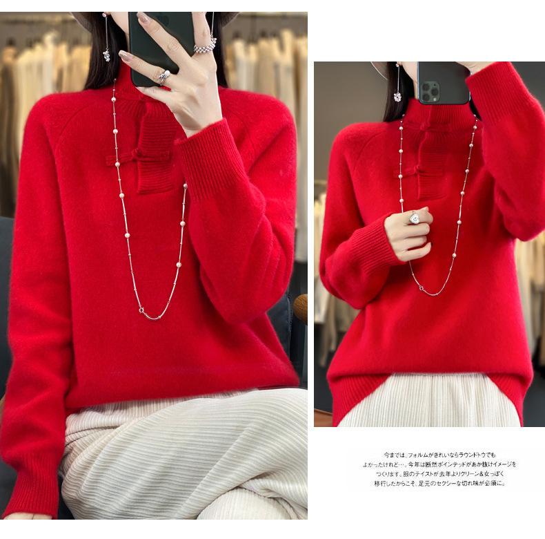 Suéter de Cachemira de Cuello Alto Medio con Hebilla Vintage para Mujer Otoño e Invierno Nuevo Suéter Holgado Grueso de Punto de Lana Camiseta Base