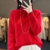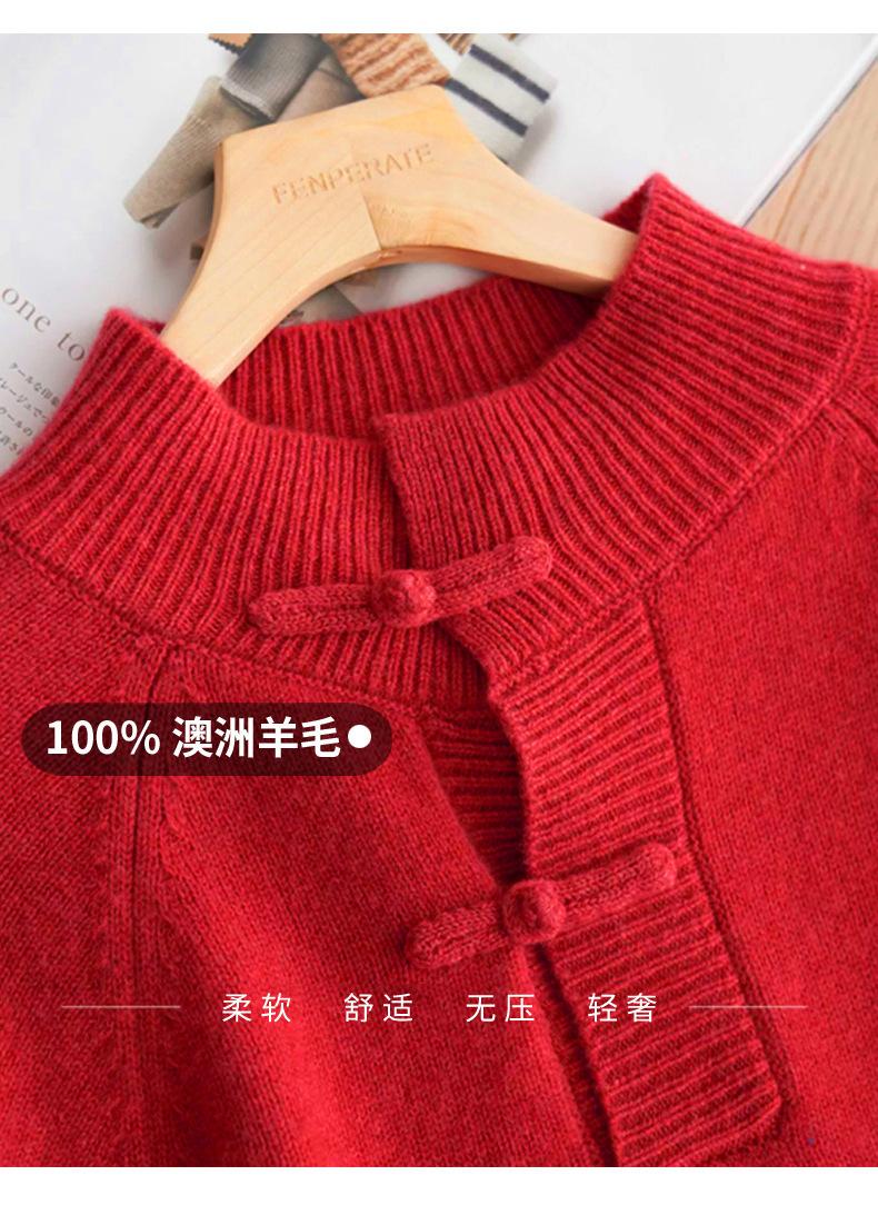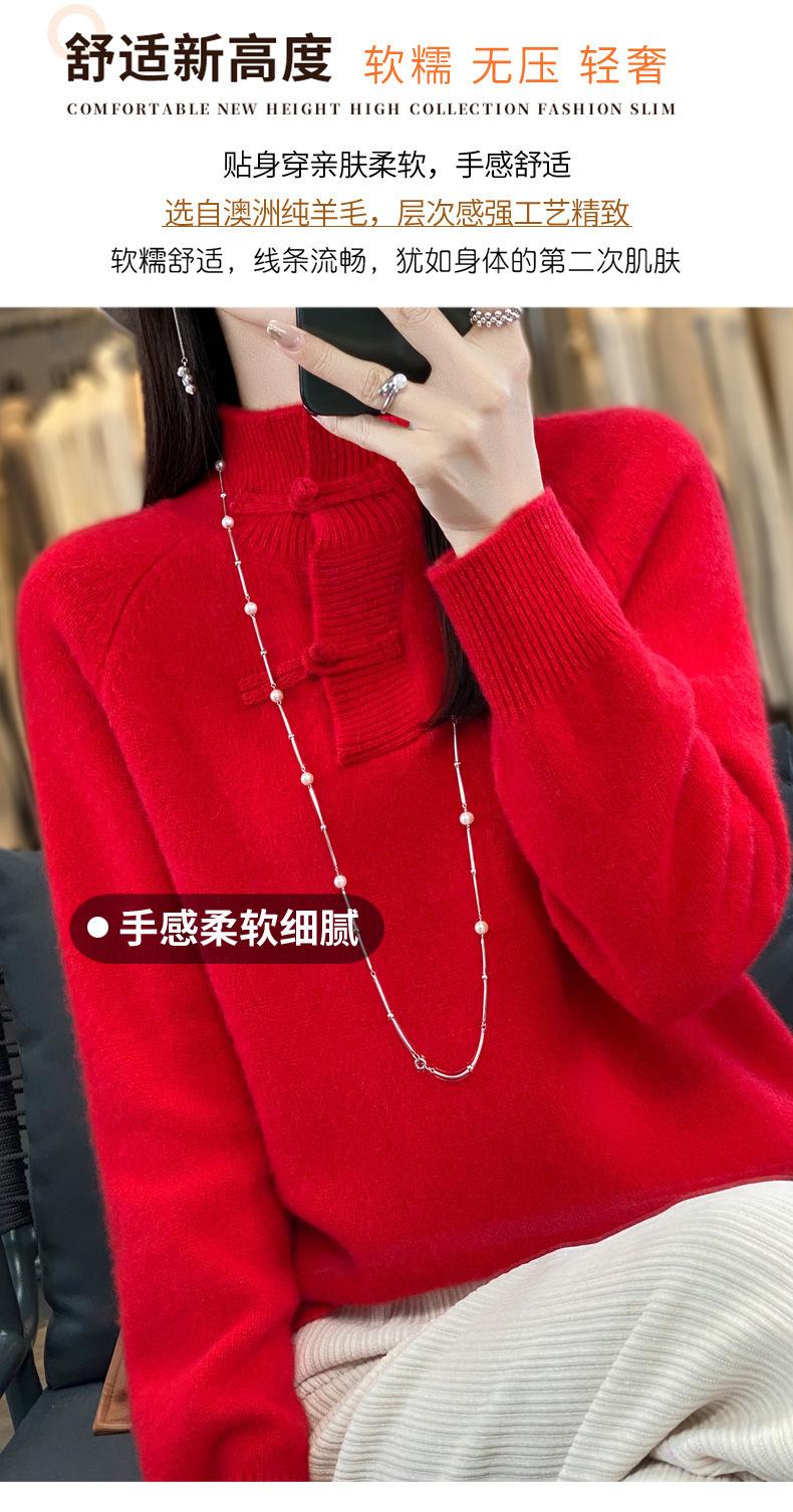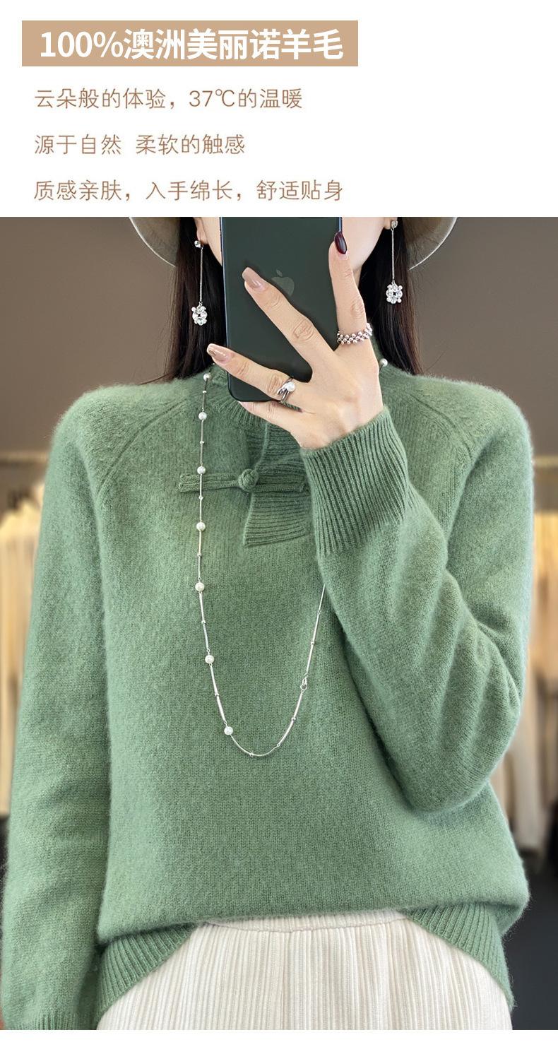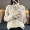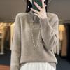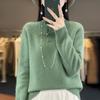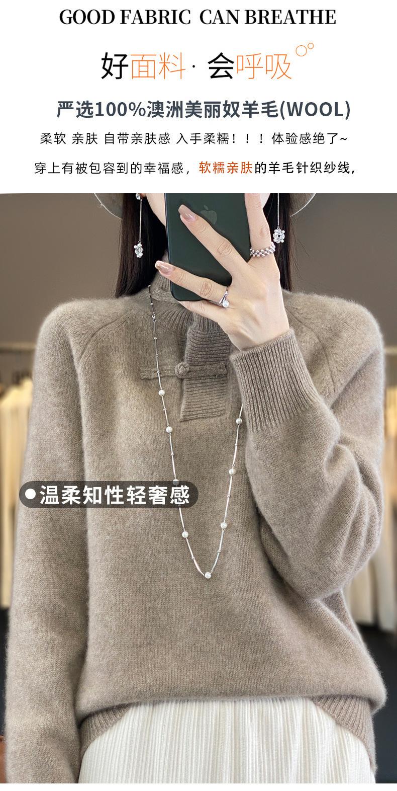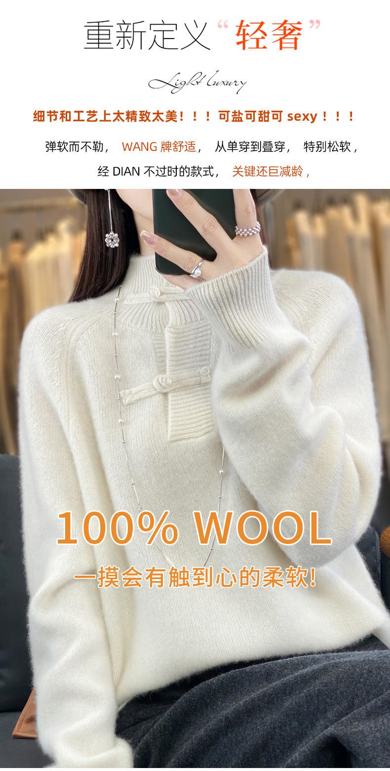 Suéter de Cachemira de Cuello Alto Medio con Hebilla Vintage para Mujer Otoño e Invierno Nuevo Suéter Holgado Grueso de Punto de Lana Camiseta Base