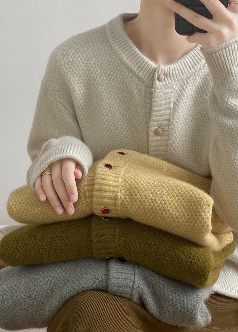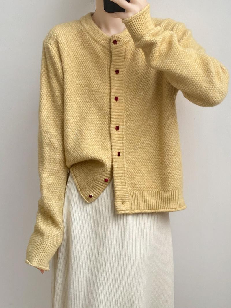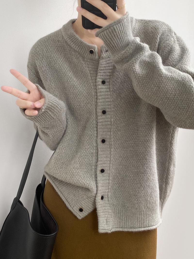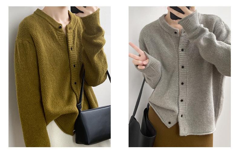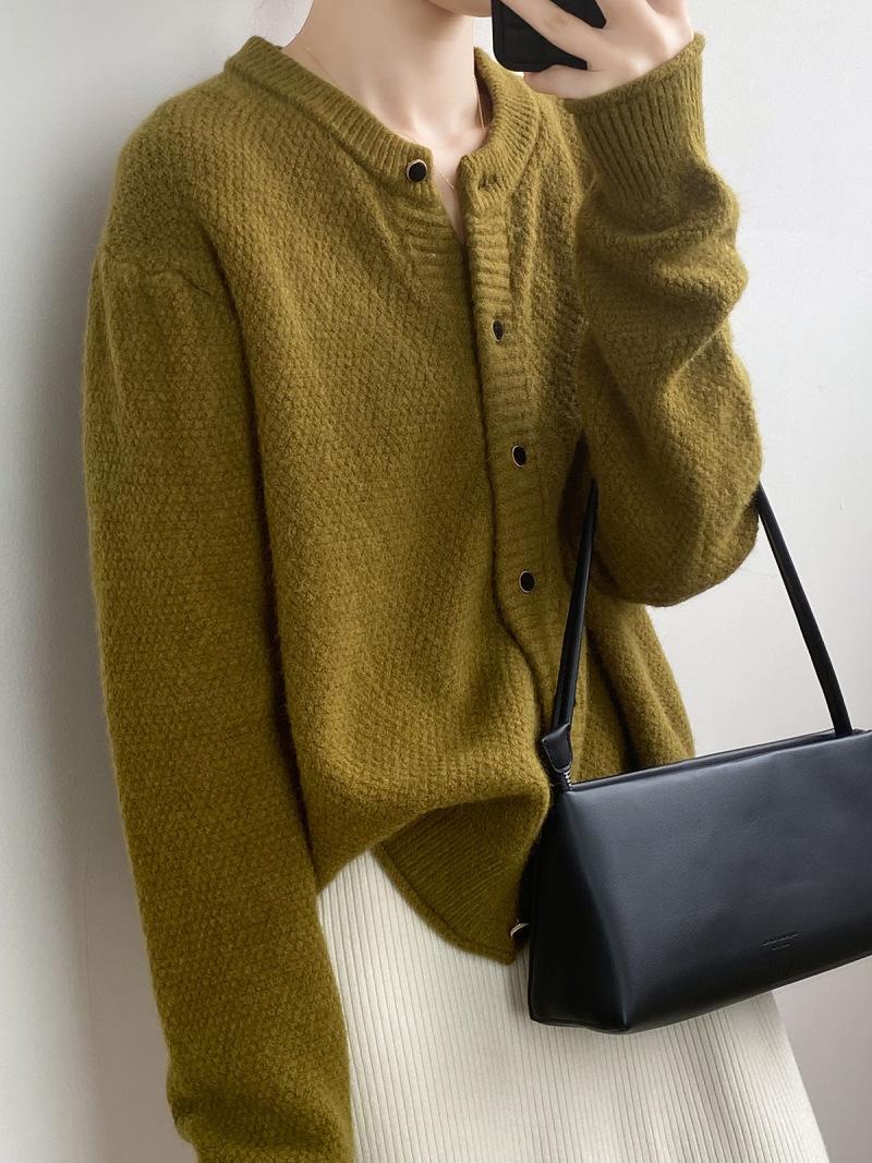 Suéter tejido de cuello redondo estilo holgado para mujer Diseño de primavera y otoño Cárdigan tejido de nicho Top pequeño para llevar debajo