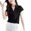 Camisa de Manga Corta Nicho Estilo Francés para Mujer Verano 2025 Diseño de Cadena de Perlas Torcidas Top Profesional para Ir al Trabajo