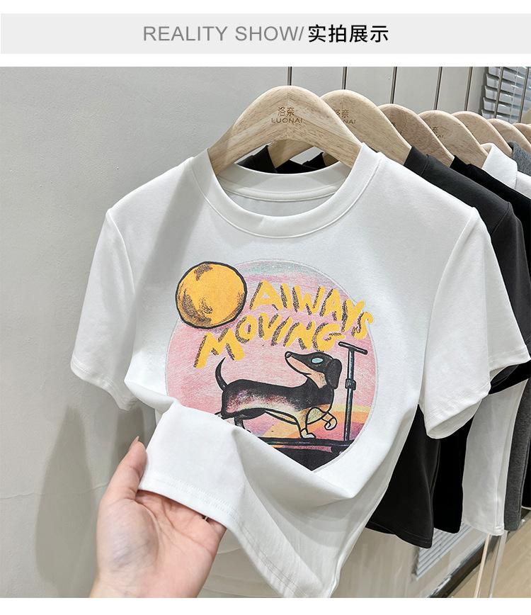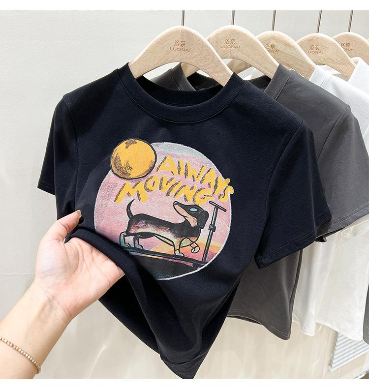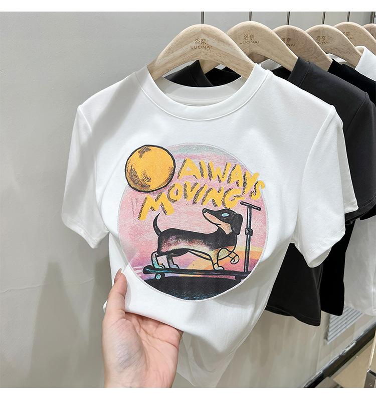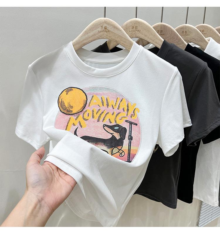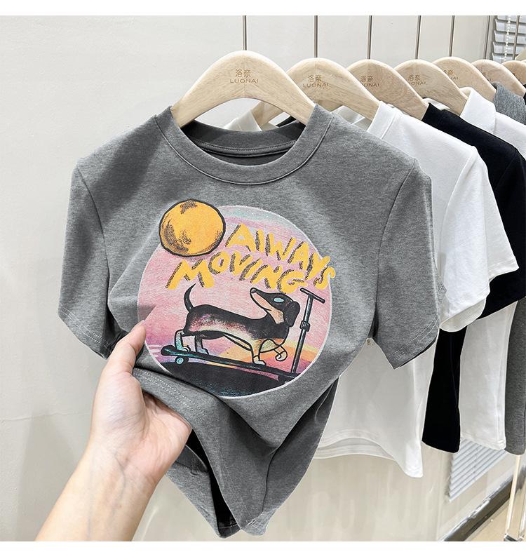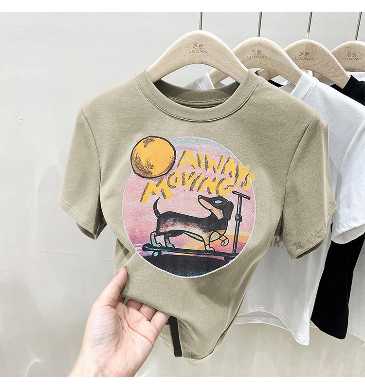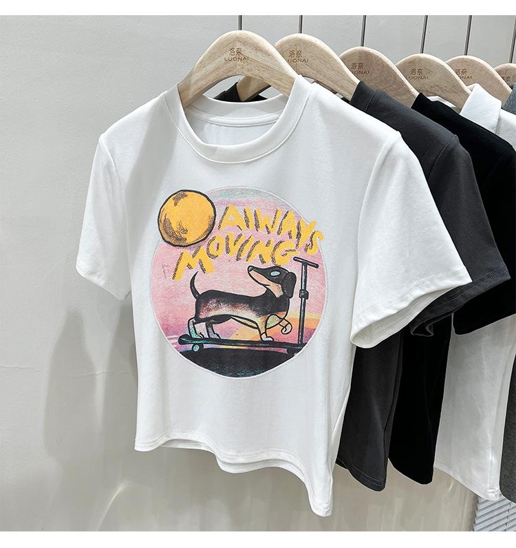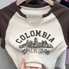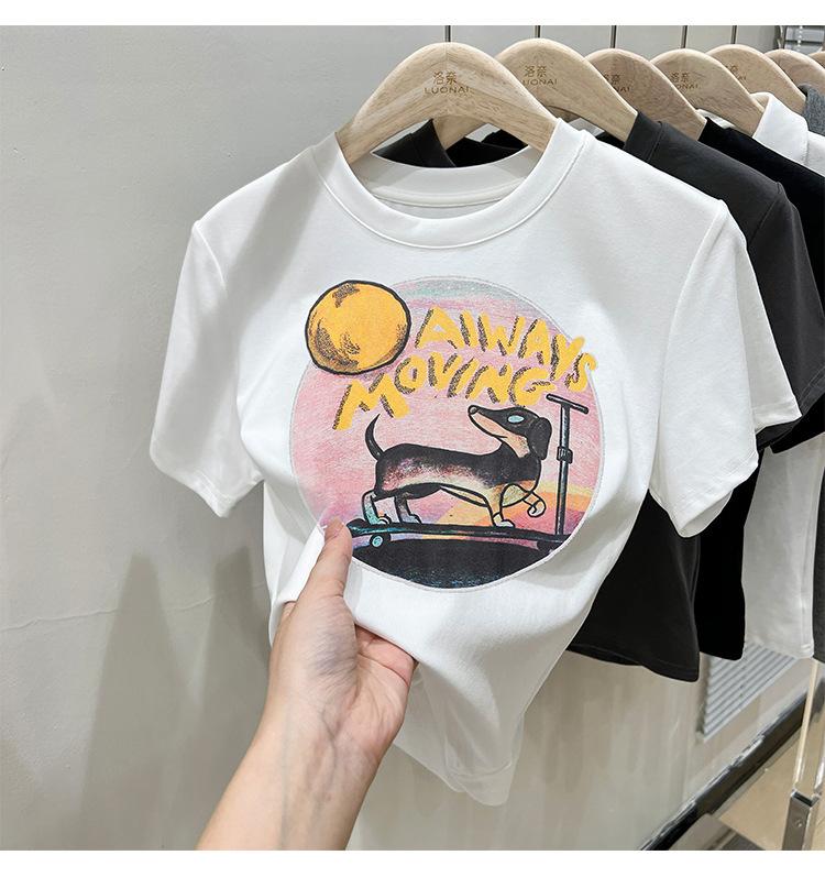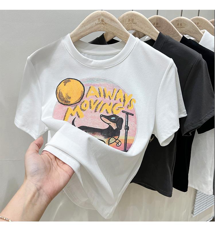 Camiseta de manga corta para mujer, nuevo diseño 2023, estilo nicho americano, dulce y sexy, de cintura alta.