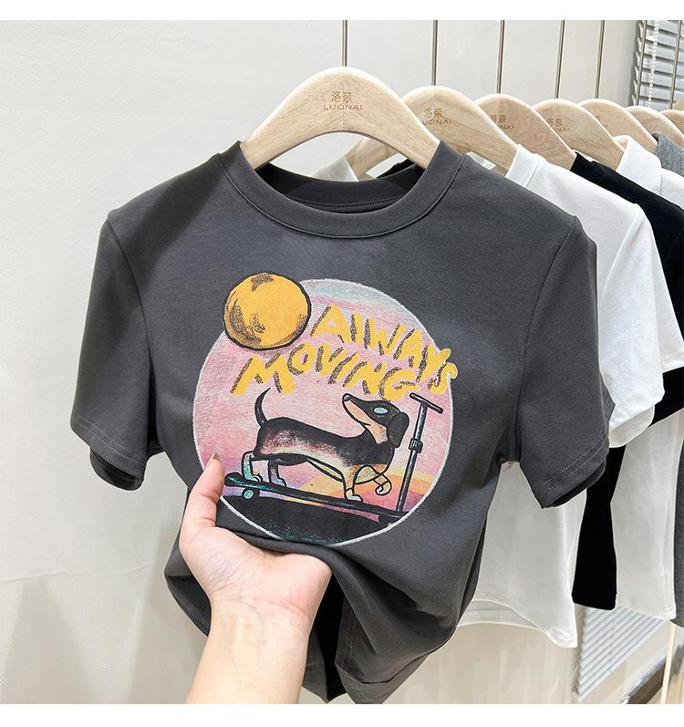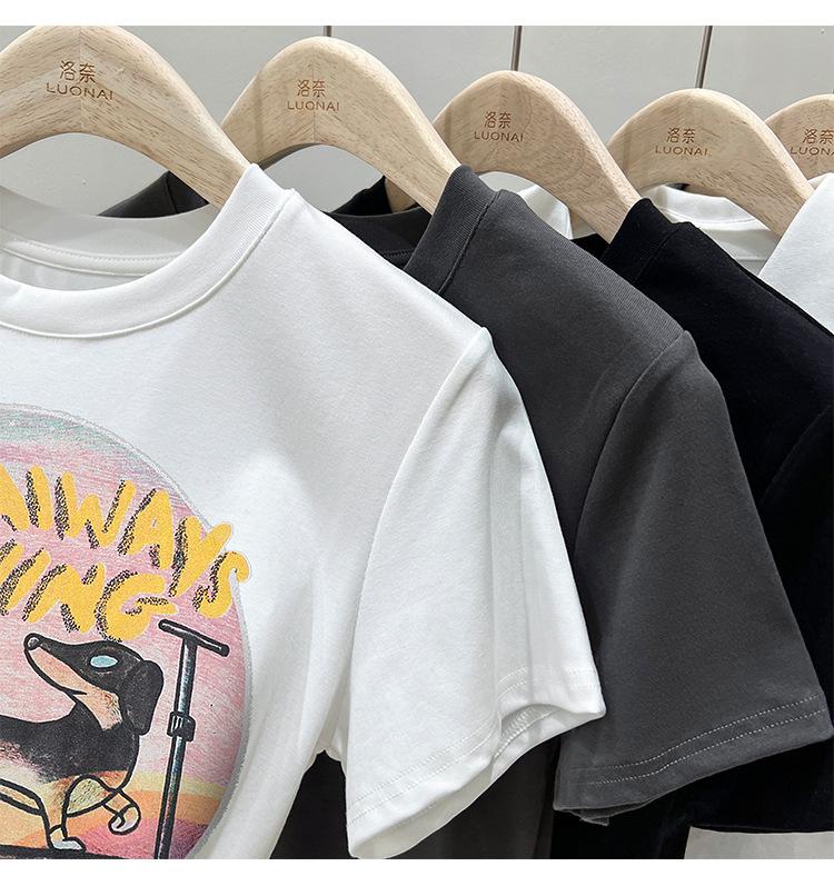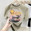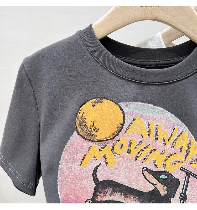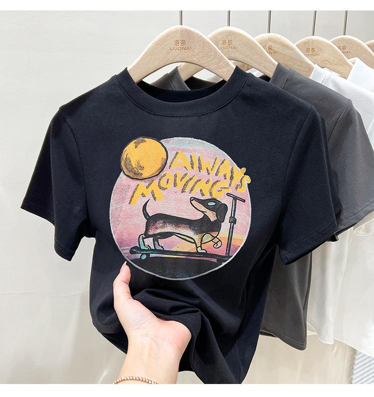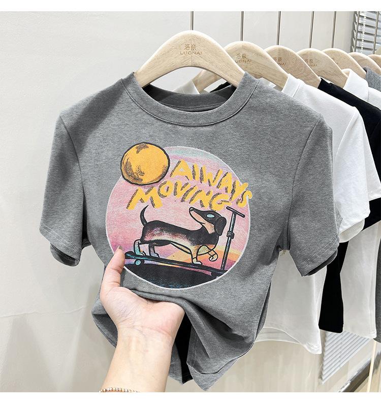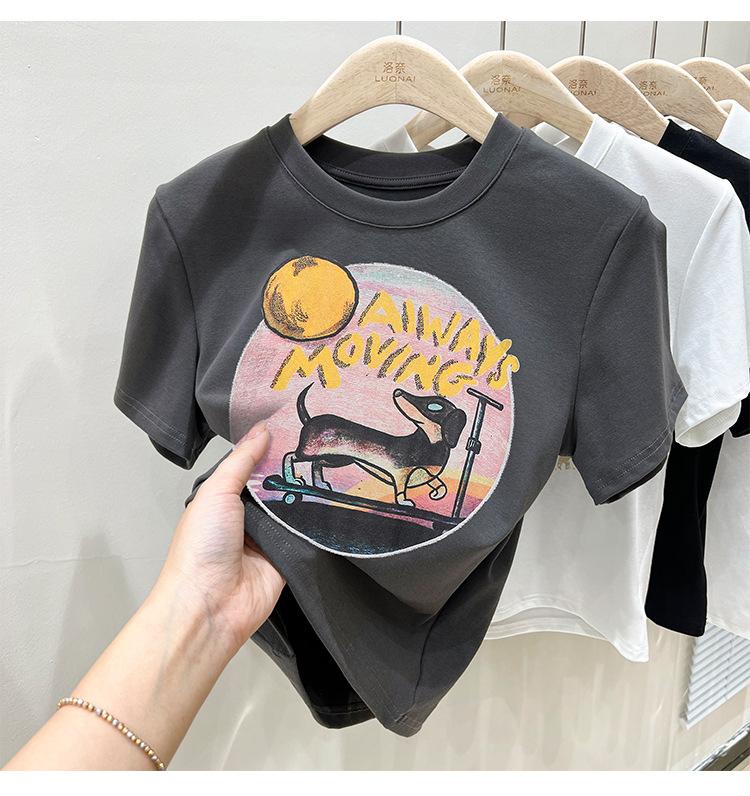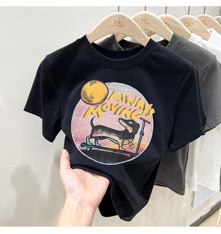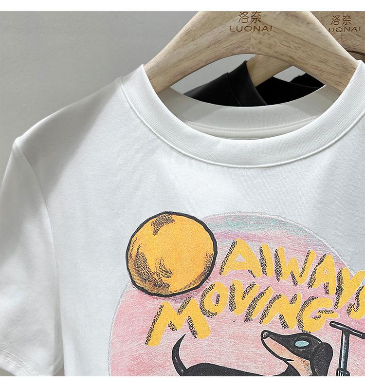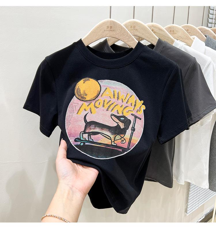Camiseta de manga corta para mujer, nuevo diseño 2023, estilo nicho americano, dulce y sexy, de cintura alta.