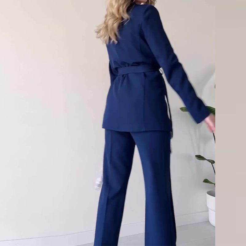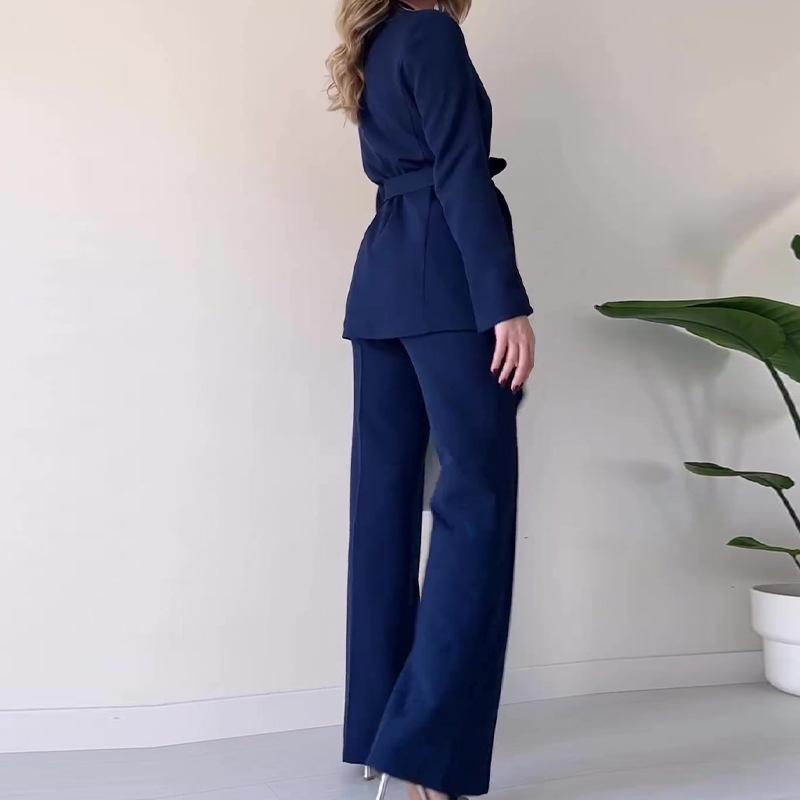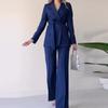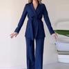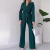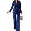 Otoño 2024 nuevo traje de pantalón elegante para ejecutiva de moda transfronteriza europea y americana de Amazon, color sólido, corte slim, cuello en V