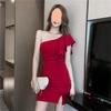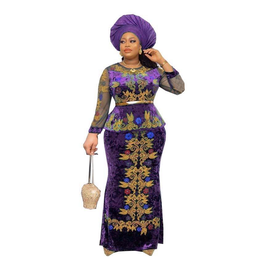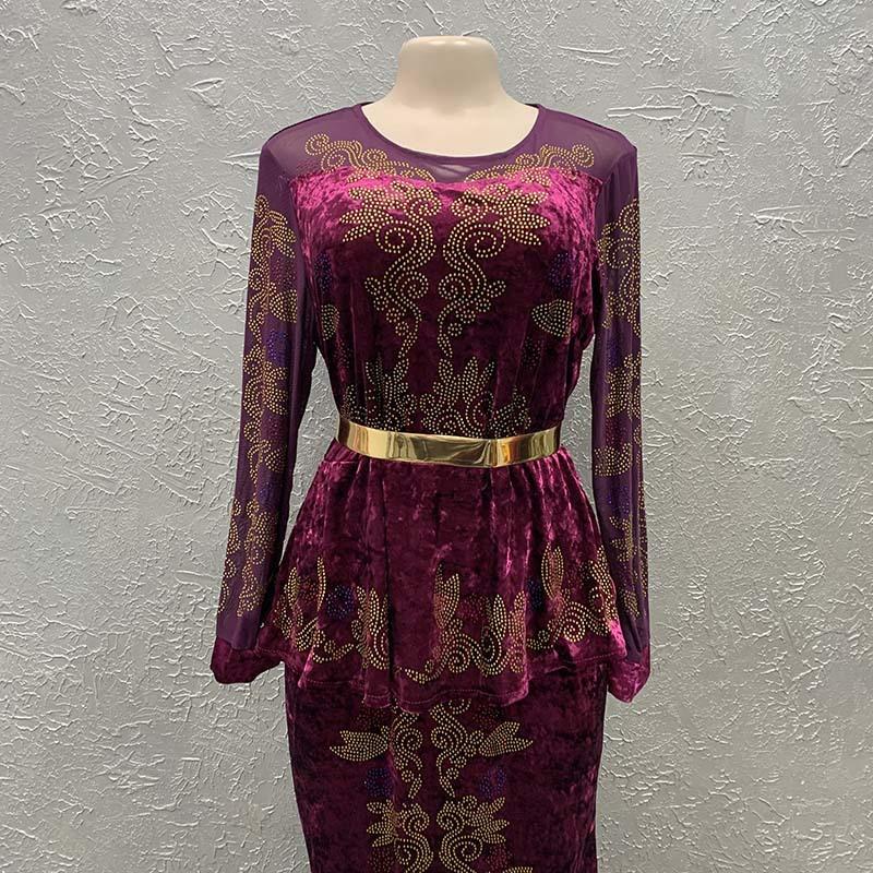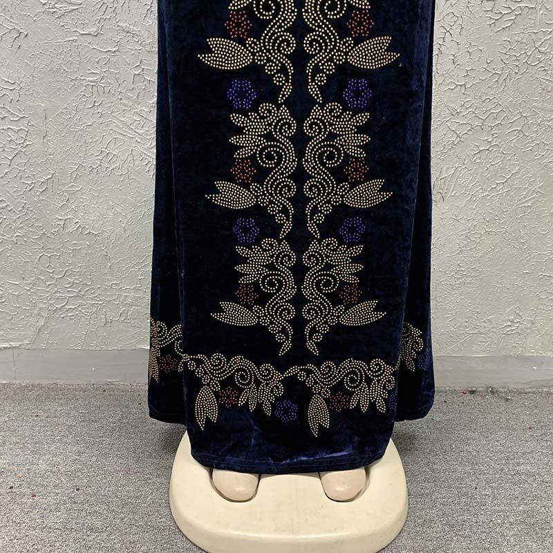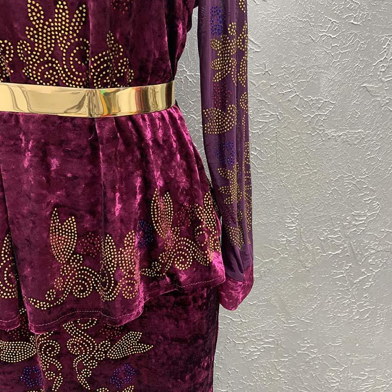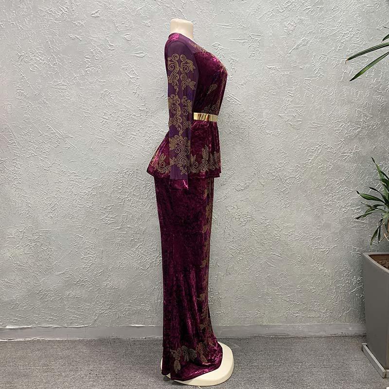Suministro transfronterizo de nuevo vestido de cadera con costuras de malla de terciopelo dorado de color sólido y diamantes de imitación con cinturón sin bufanda.