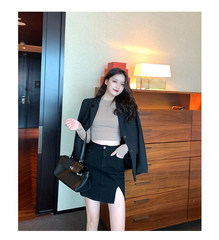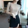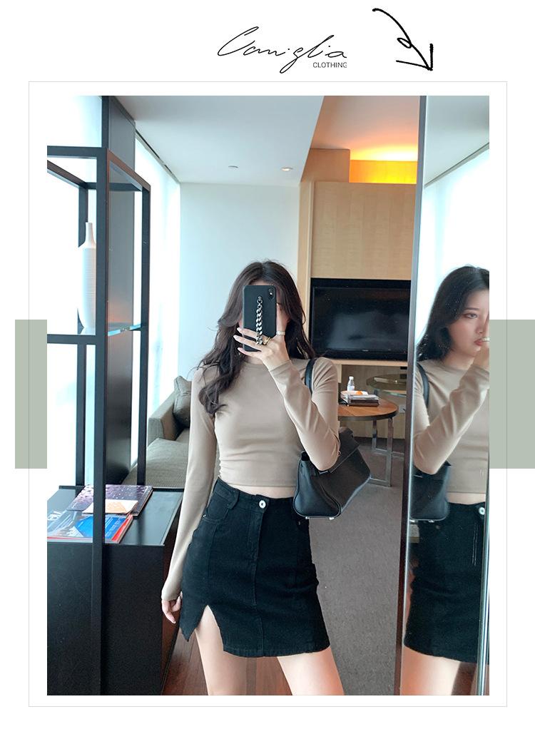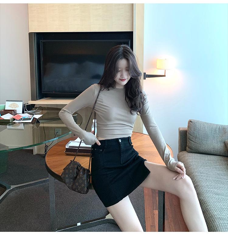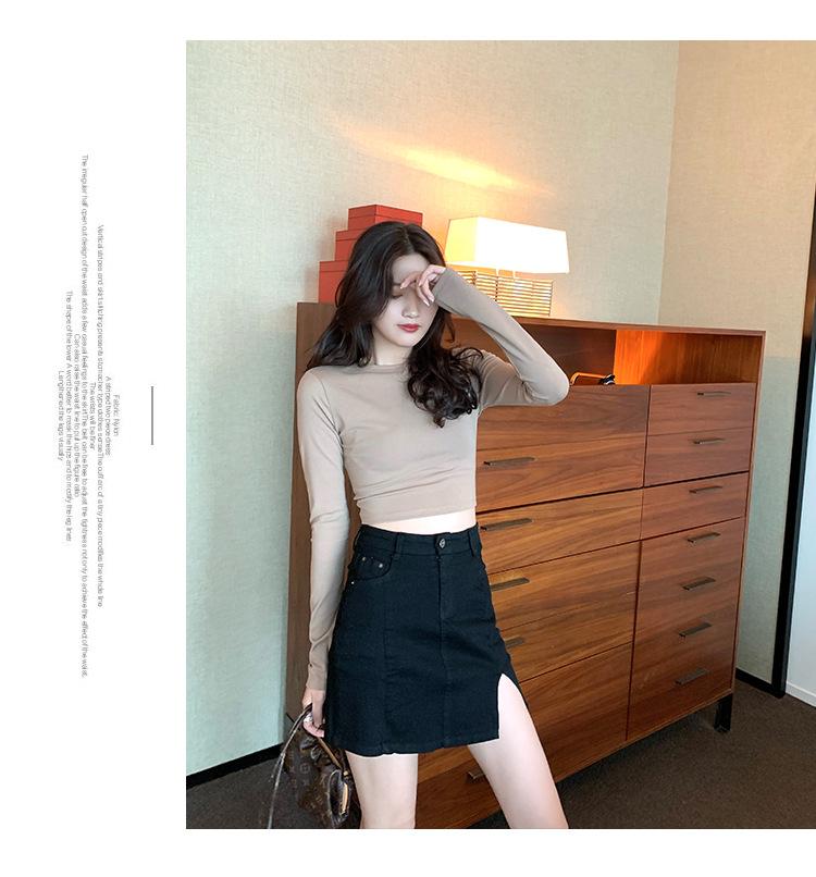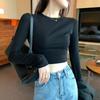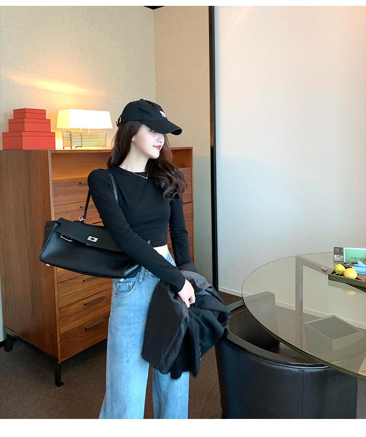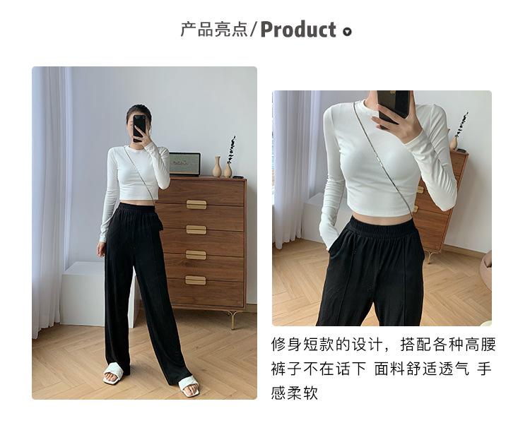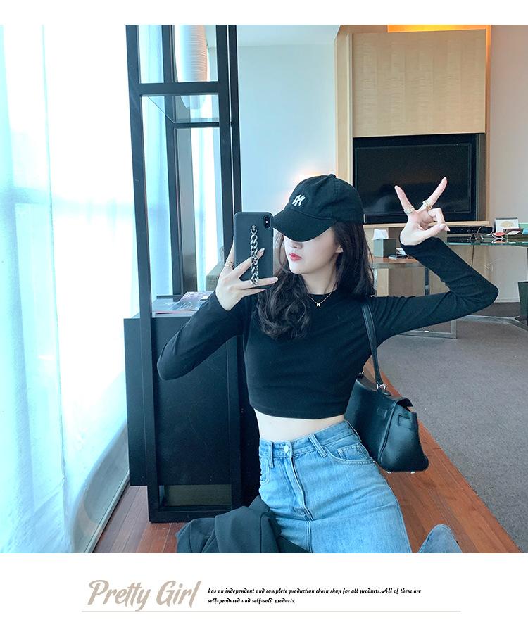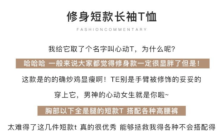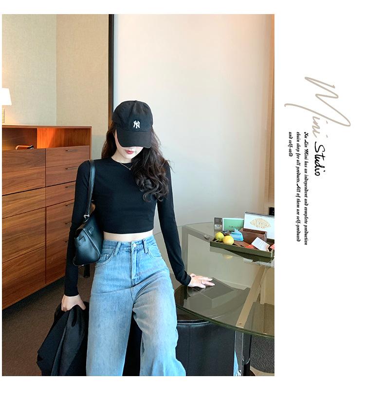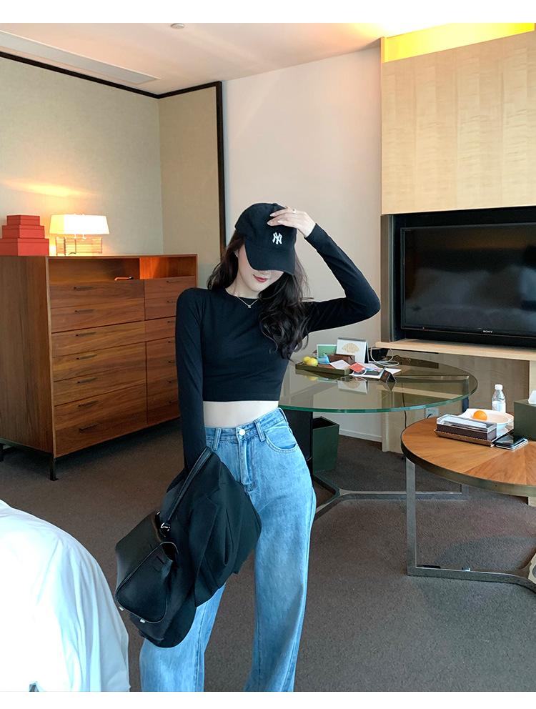 Playera Corta de Algodón Puro Seleccionado de Cintura Alta para Mujer 2025 Otoño Nuevo Estilo con Top de Manga Larga Descubriendo el Ombligo y Camiseta Básica Slim