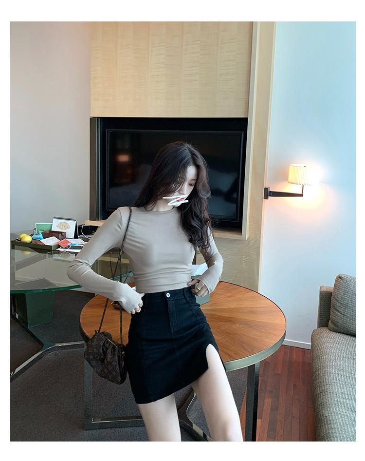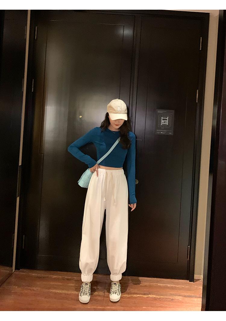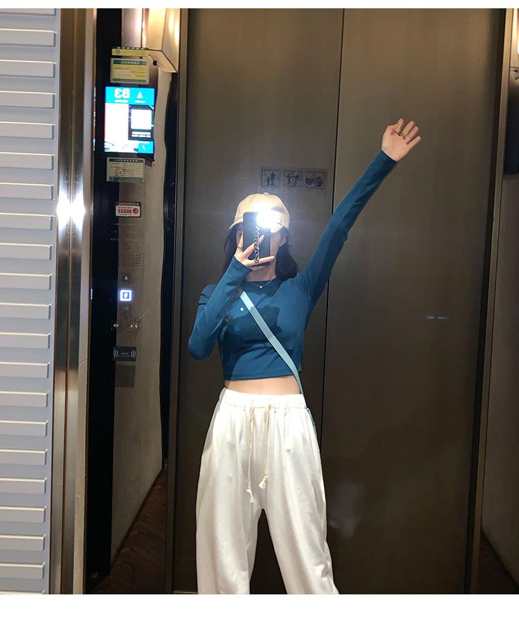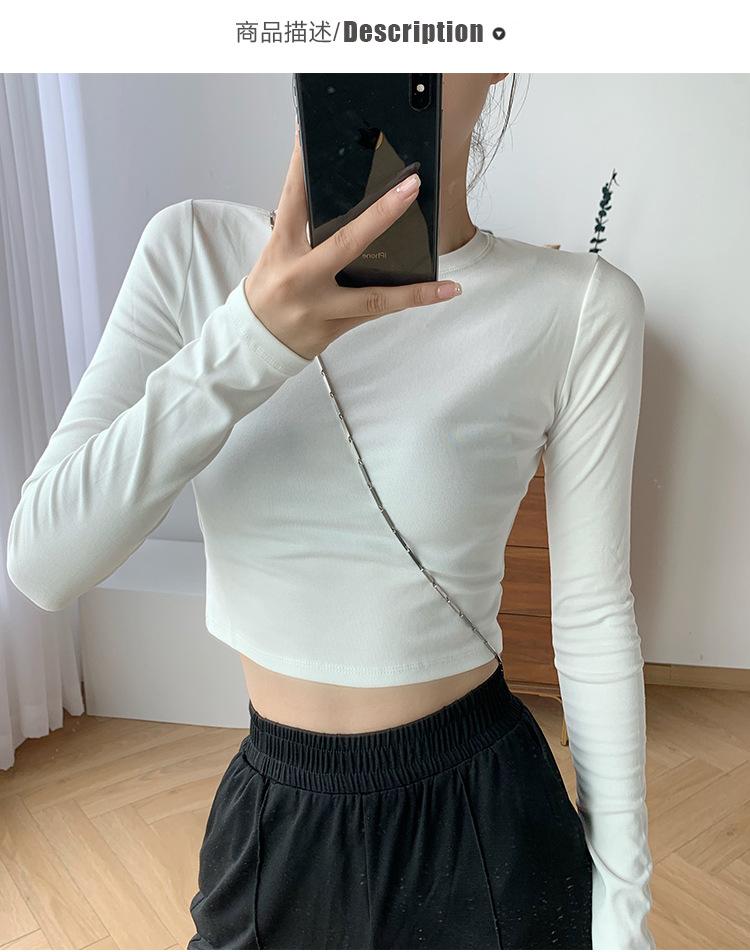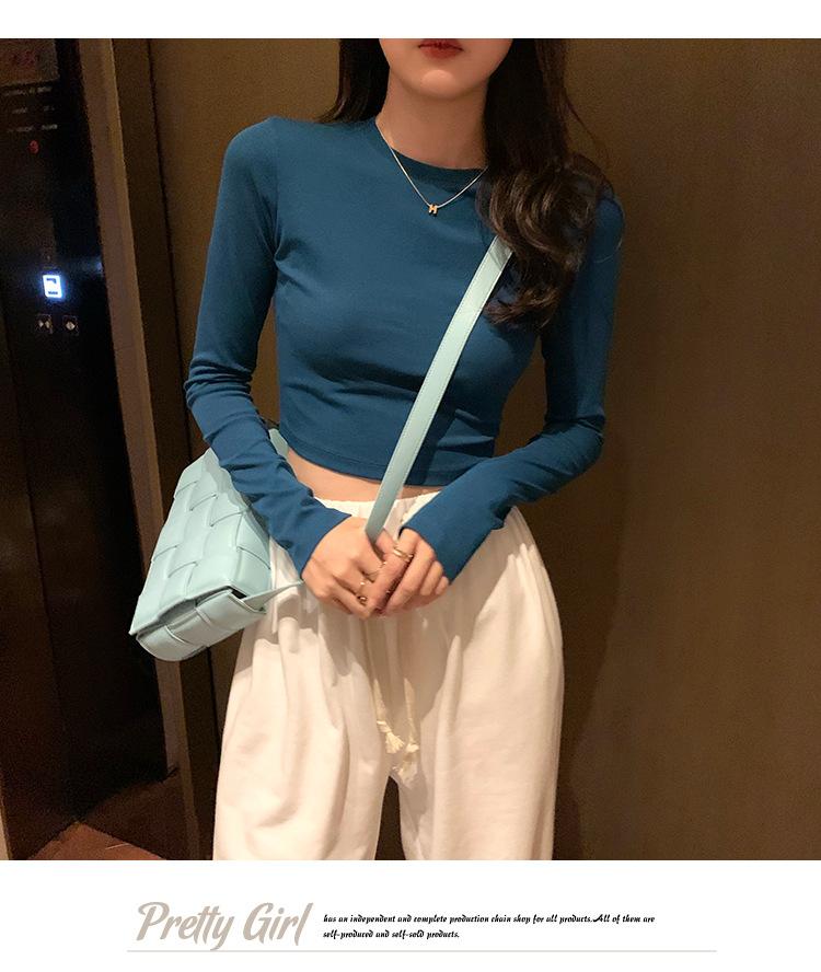 Crewneck, Solid color, Versatile, Self-cultivation, Trendy brand, Navel exposed