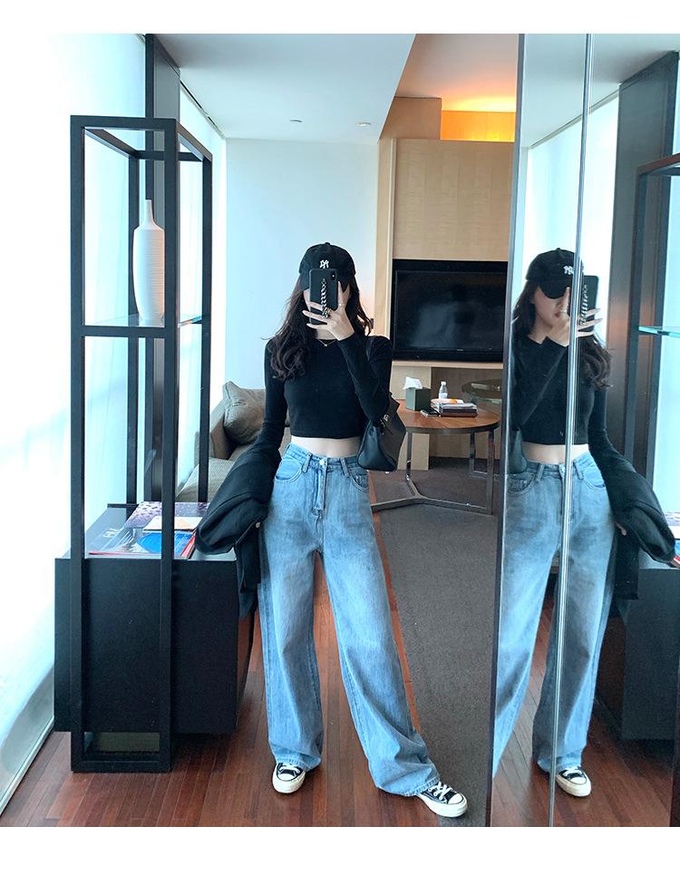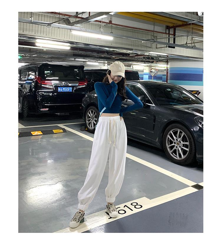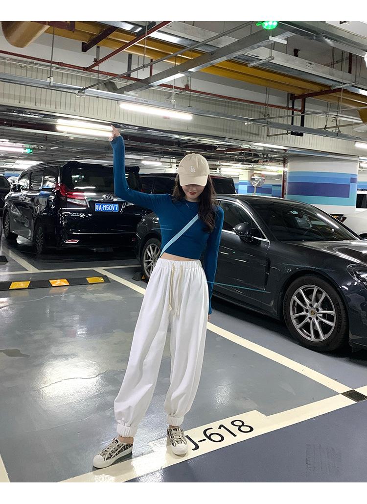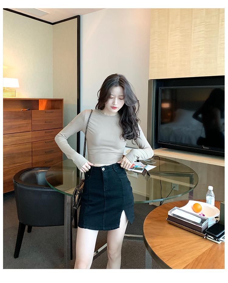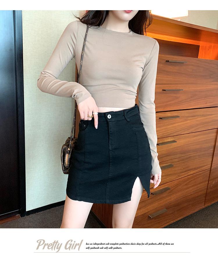 Crewneck, Solid color, Versatile, Self-cultivation, Trendy brand, Navel exposed