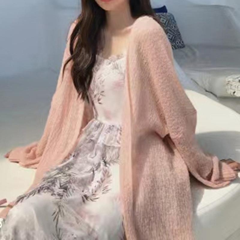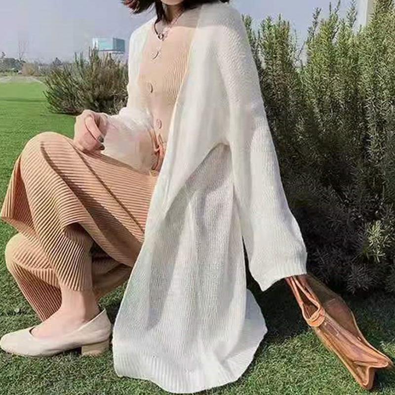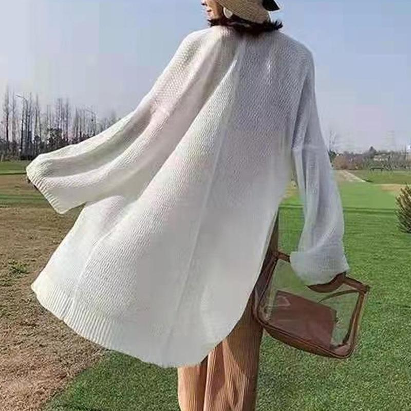 Cárdigan de punto para mujer, novedad de 2024, cárdigan de punto de longitud media, de seda helada, holgado, fino y para exteriores.