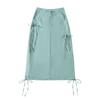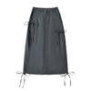 Falda de trabajo estilo americano con lazo y cintura alta para mujer, estilo informal, de verano, con cordón y longitud media