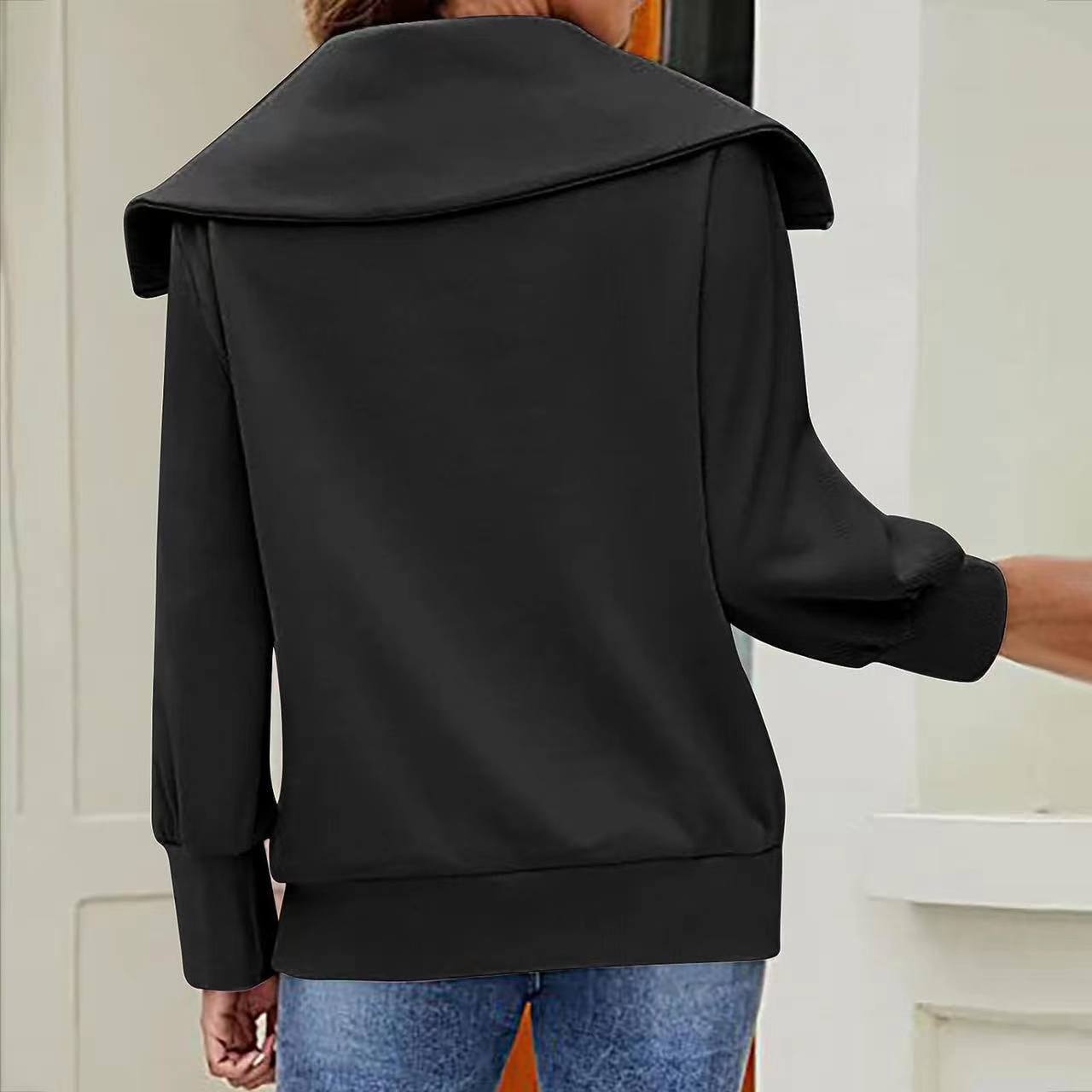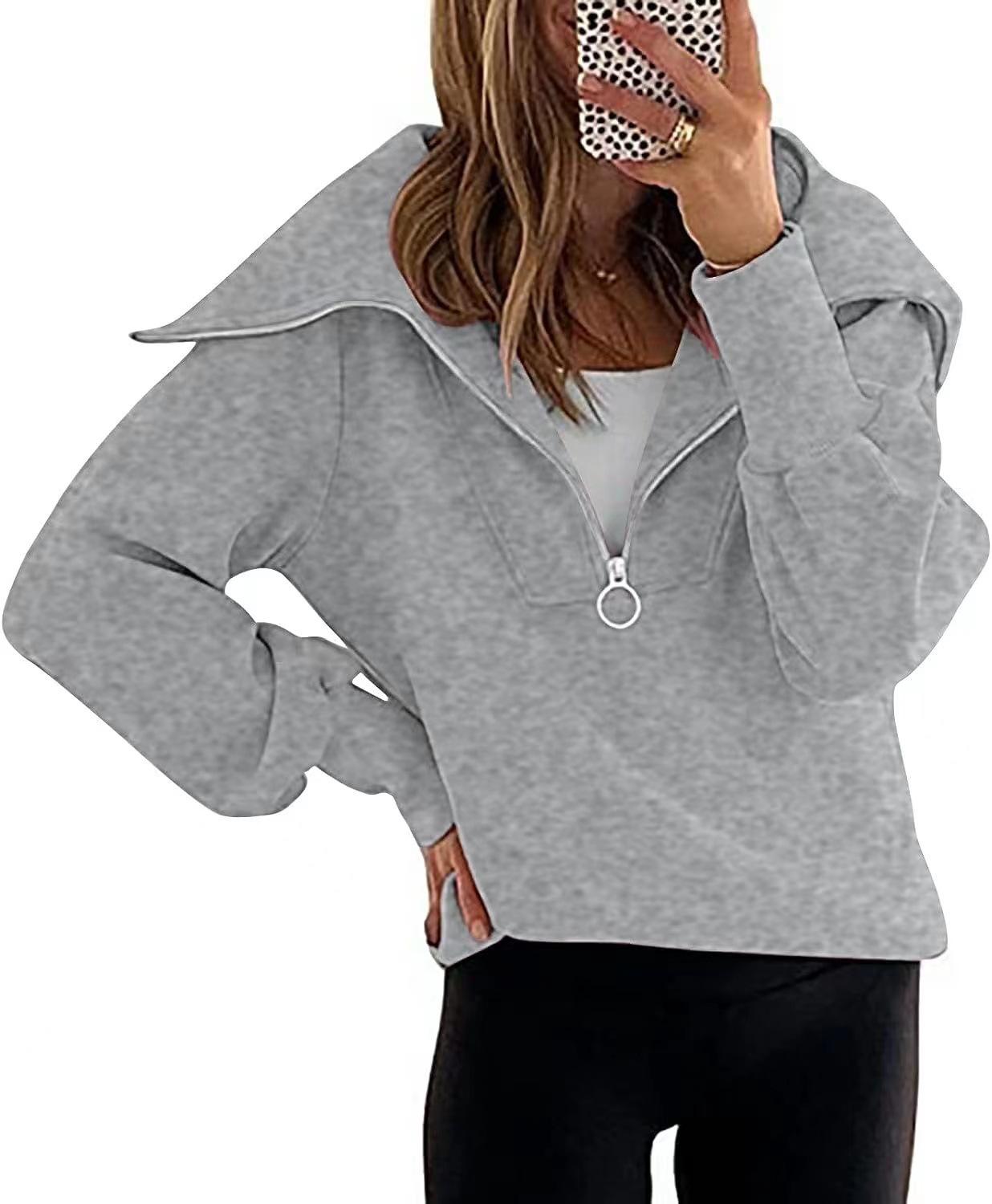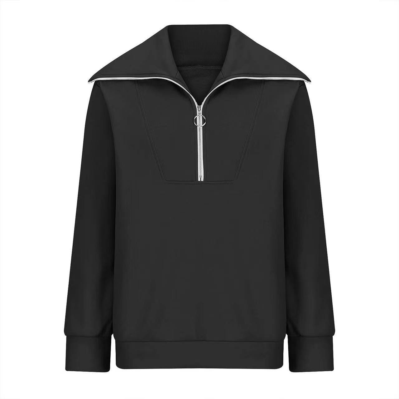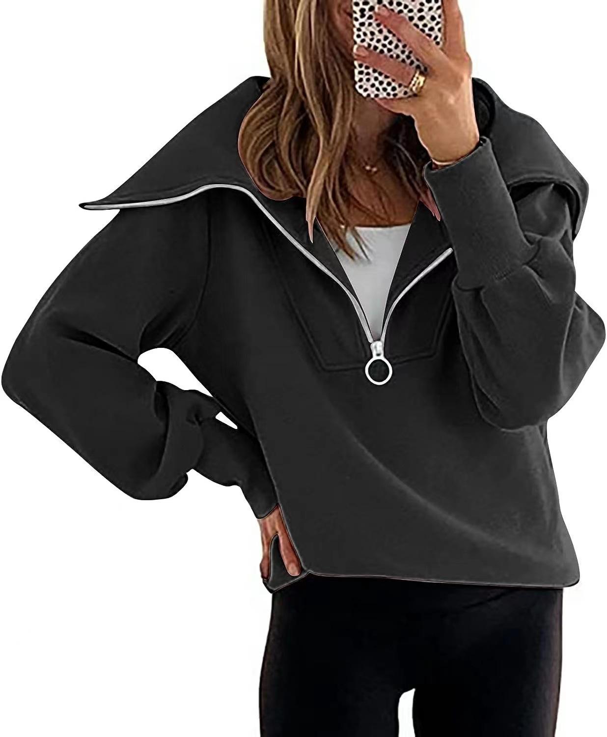 Suéter de mujer con solapa y hombros caídos, popular, de otoño e invierno, de Amazon 2023, de gran tamaño y media cremallera, ropa transfronteriza europea y americana
