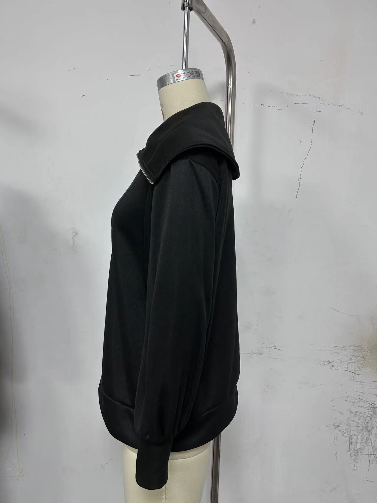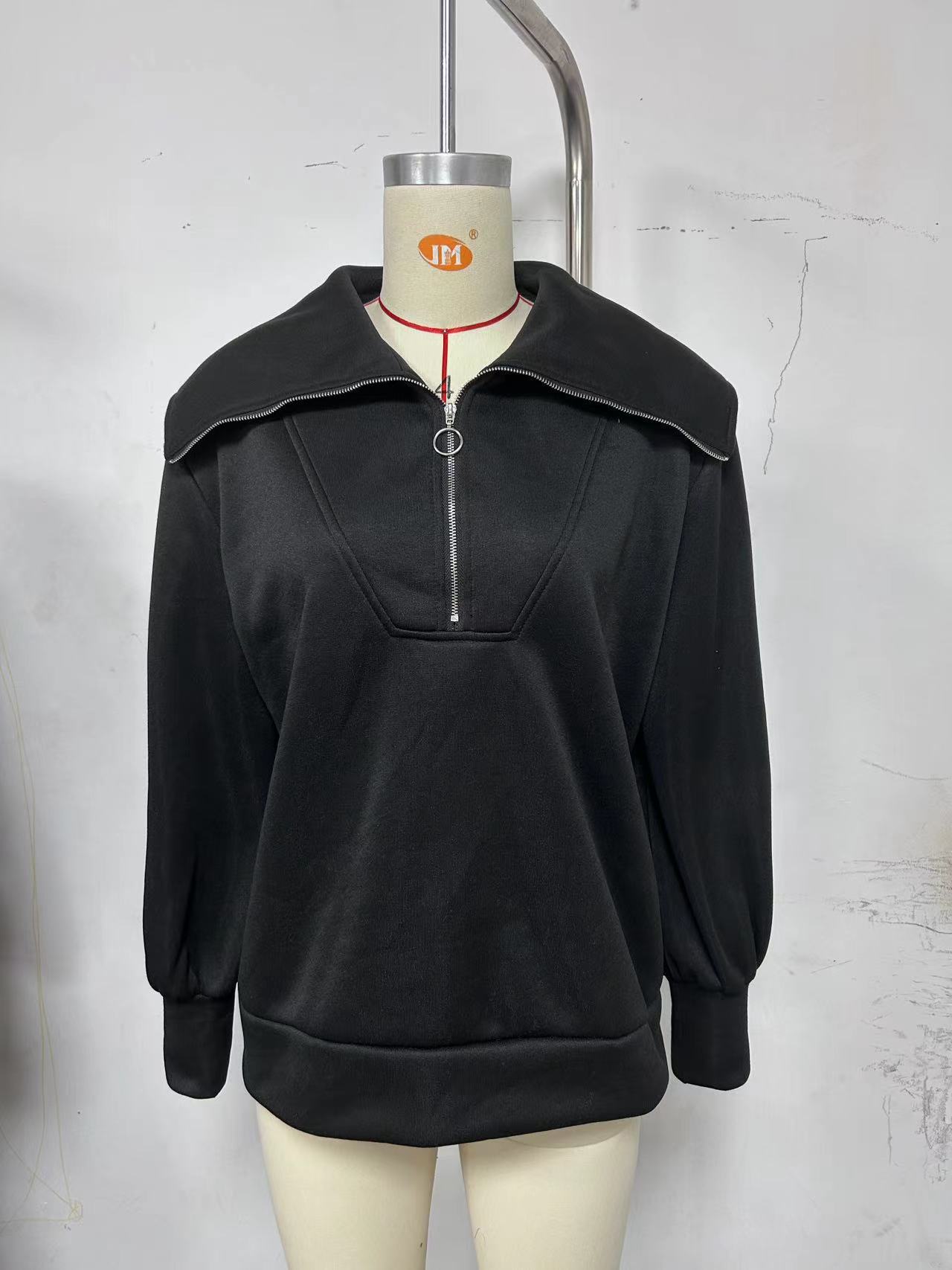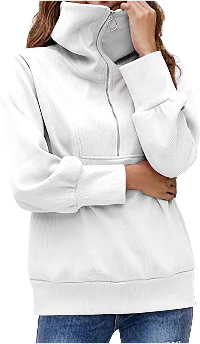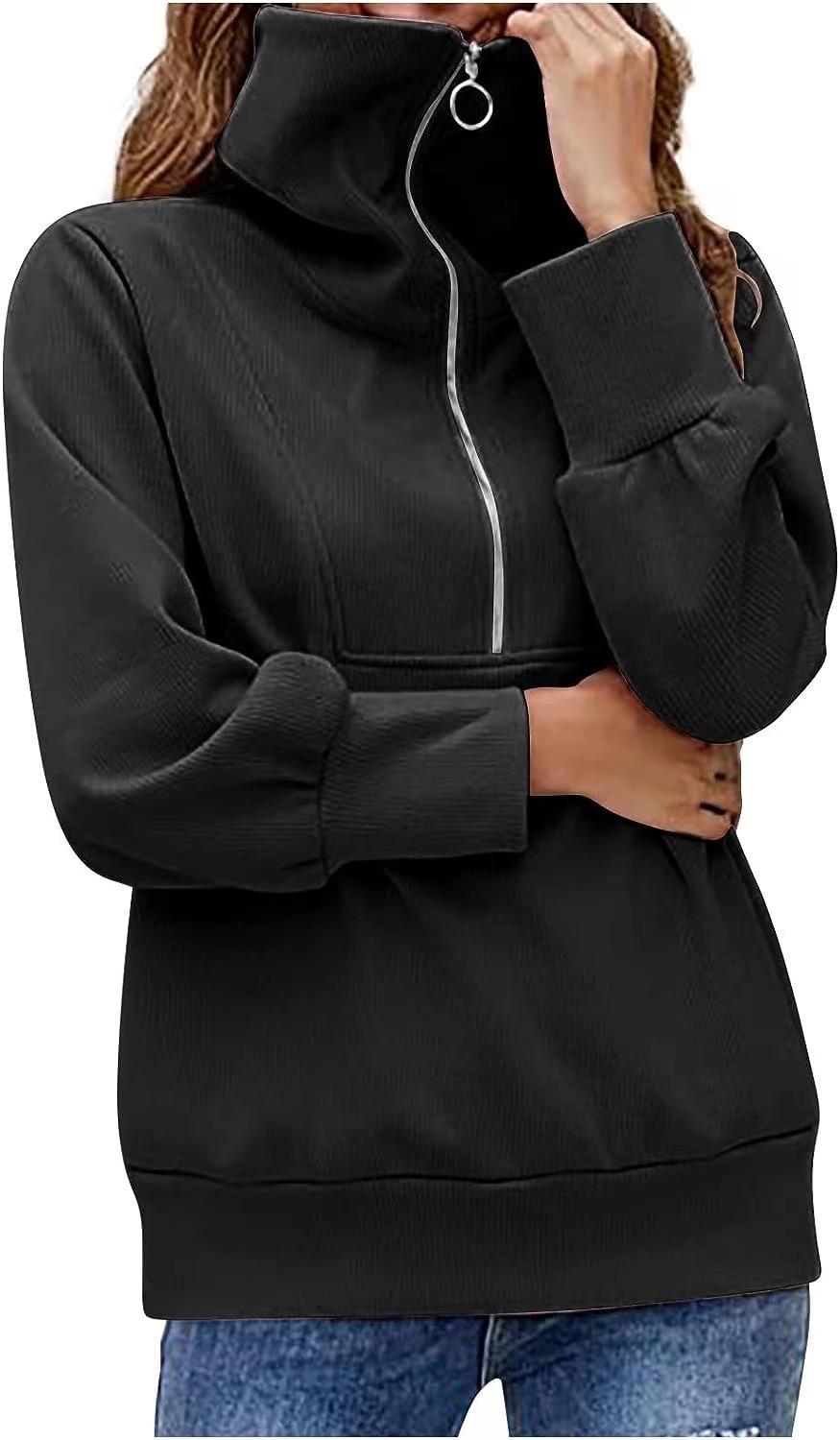 Suéter de mujer con solapa y hombros caídos, popular, de otoño e invierno, de Amazon 2023, de gran tamaño y media cremallera, ropa transfronteriza europea y americana