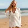 Producto Nuevo de Verano 2025 Exportación Europea y Americana Hombro Descubierto Sexy Camisa de Playa Talla Grande Bikini Ropa de Protección Solar de Manga Larga Camisa de Playa