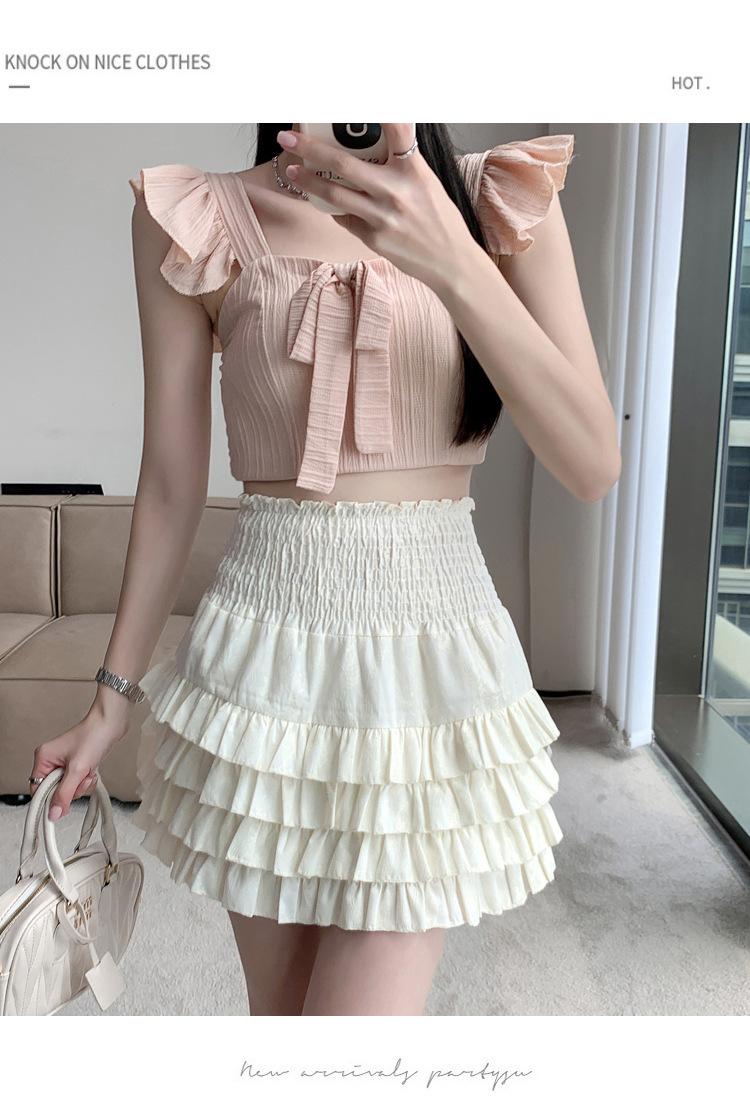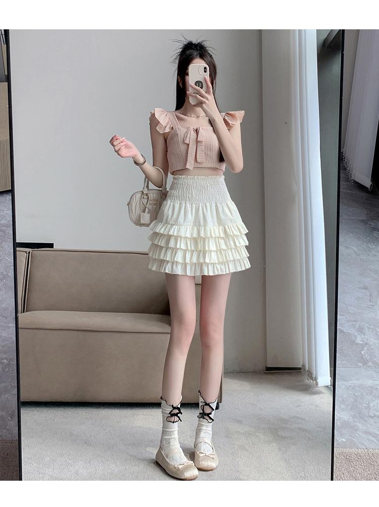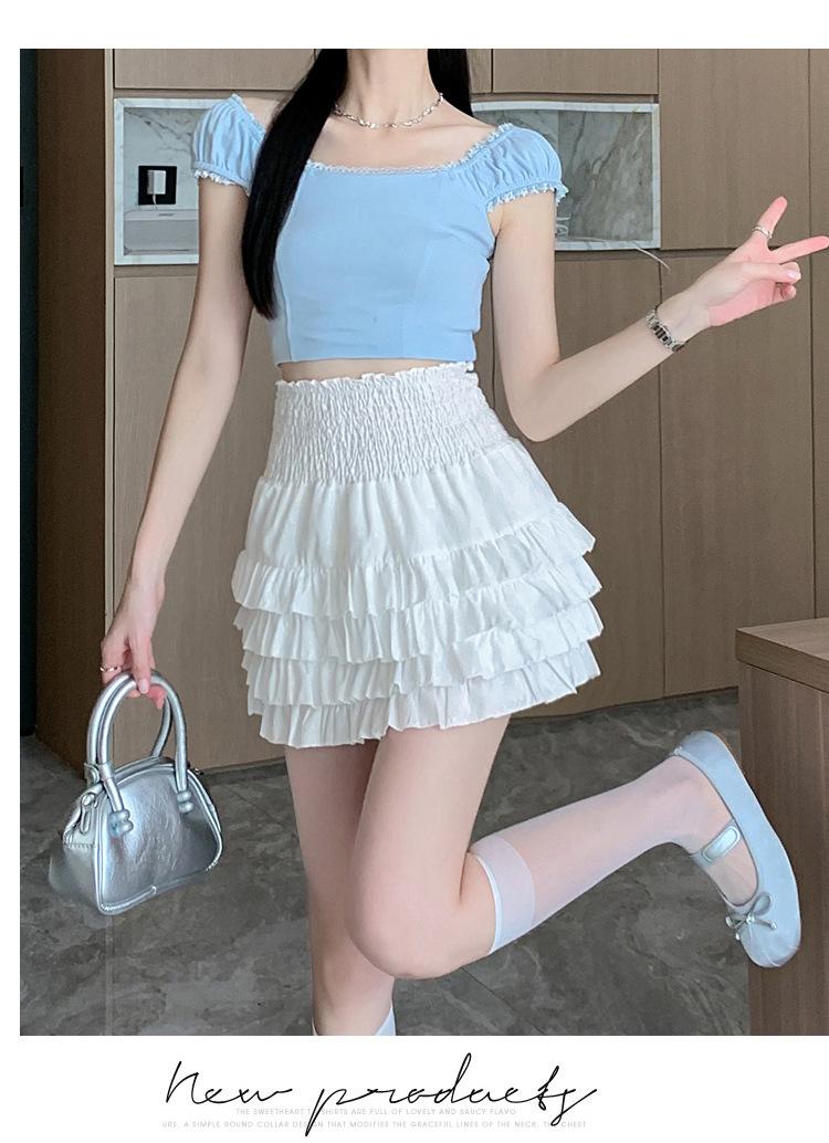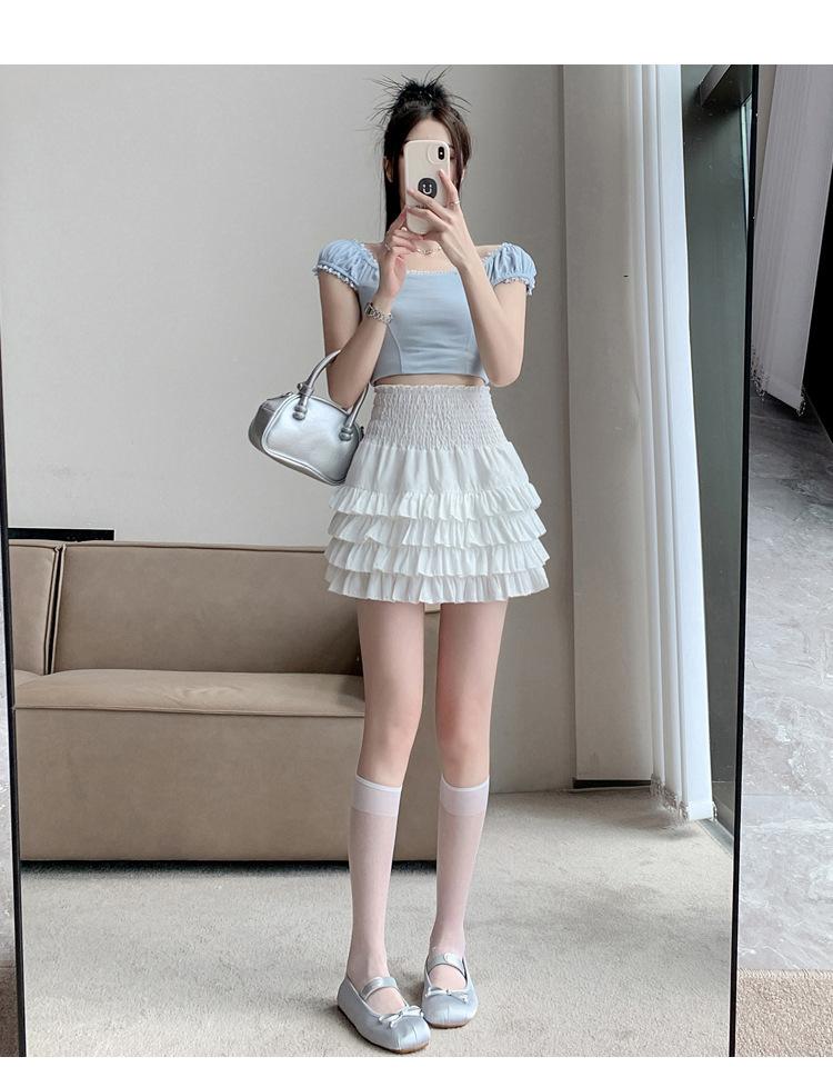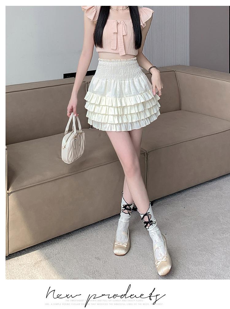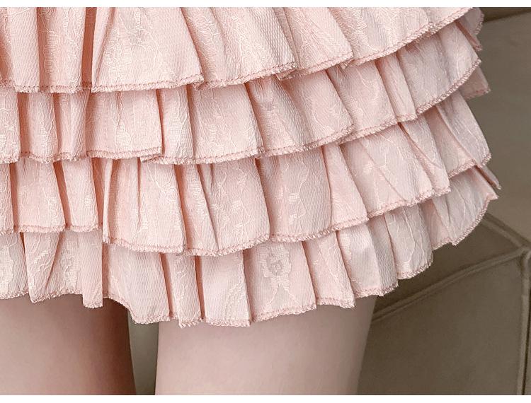Falda de Pastel de Encaje Esponjosa para Mujer Joven Adulta Primavera y Verano Nuevo Estilo Petite Dulce Cintura Alta Ajustada Venta al por Mayor
