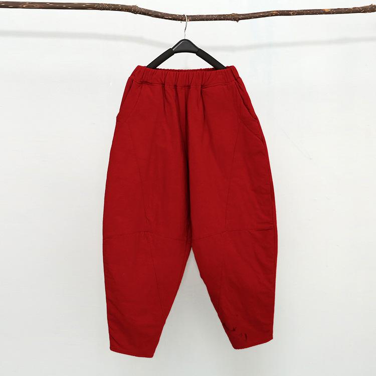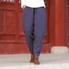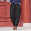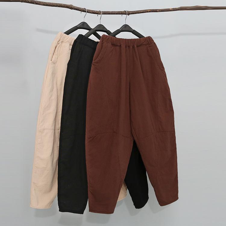 2025 Invierno Nuevo Retro Suelto Talla Grande Color Sólido Patchwork Cintura Elástica Grueso Meditación Pantalones Linterna Pantalones de Algodón para Mujer