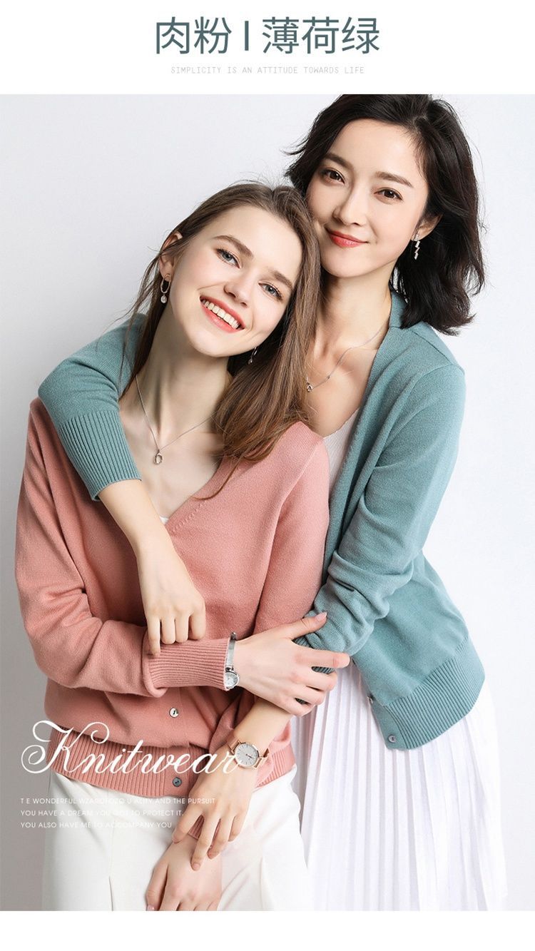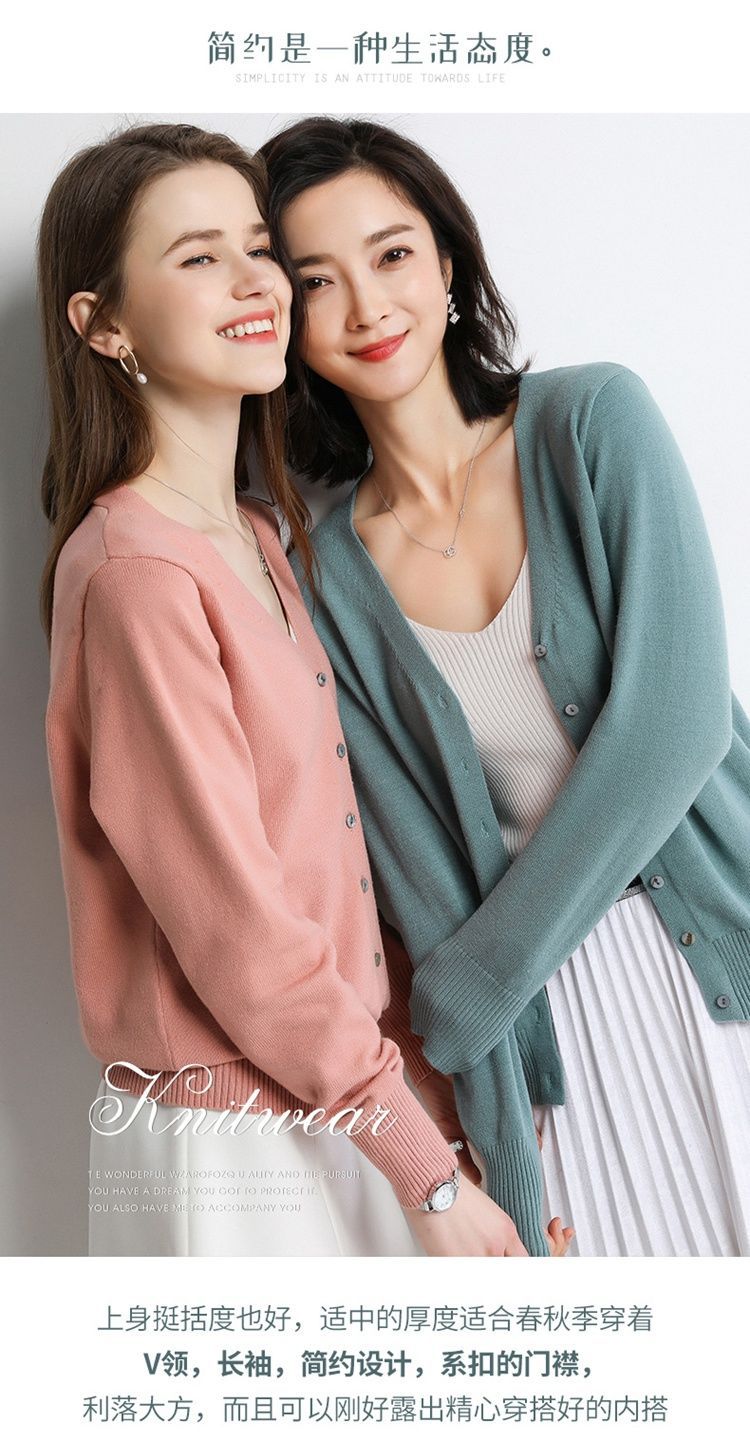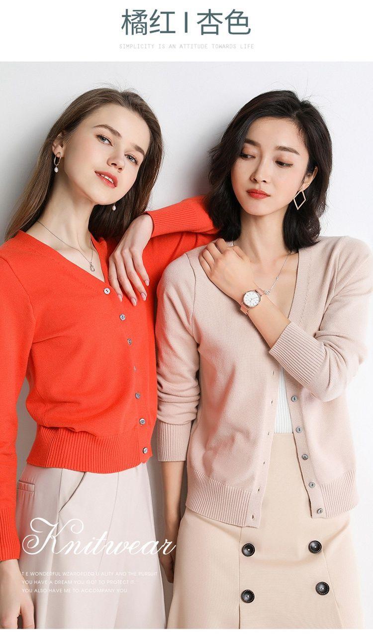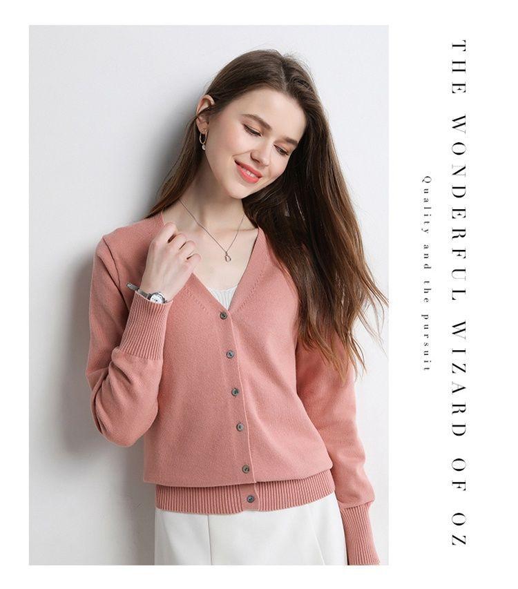 Cárdigan de punto de primavera para mujer, cuello en V, abrigo combinable, color liso, manga corta, suéter fino