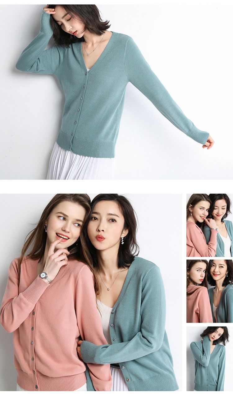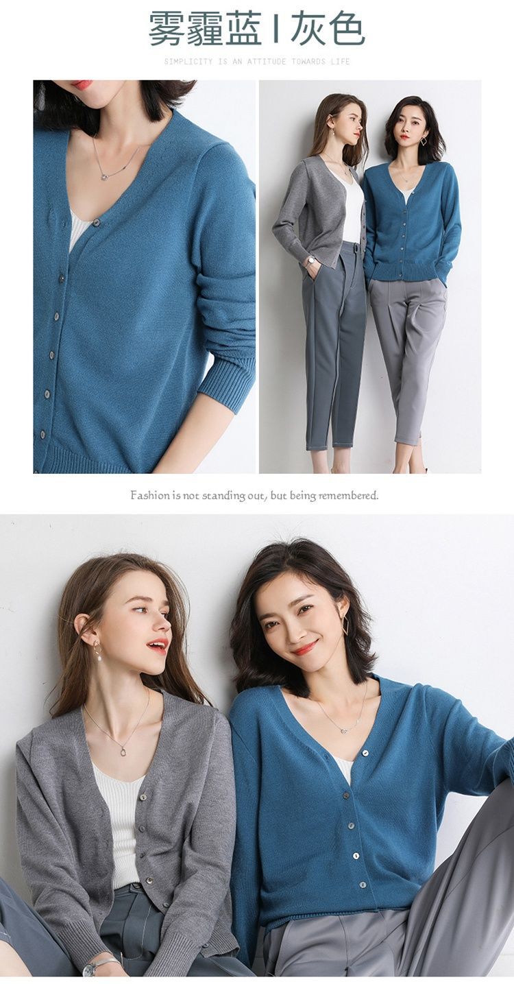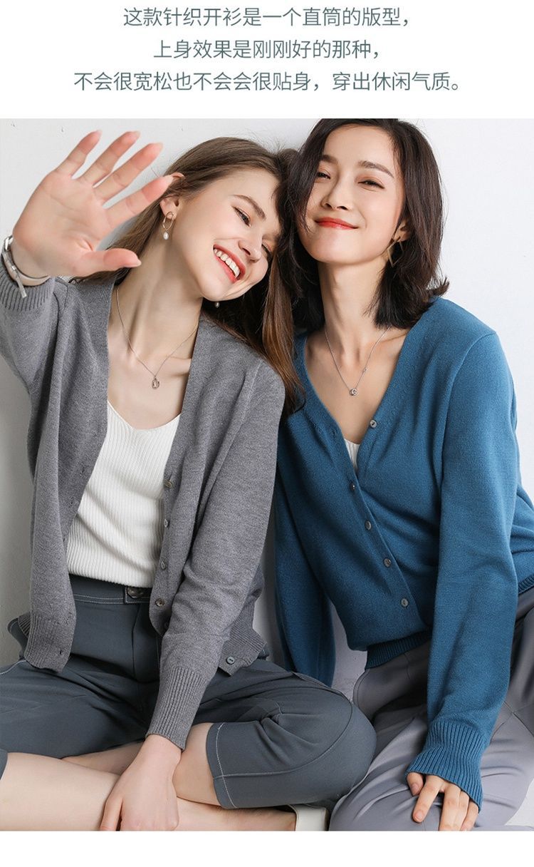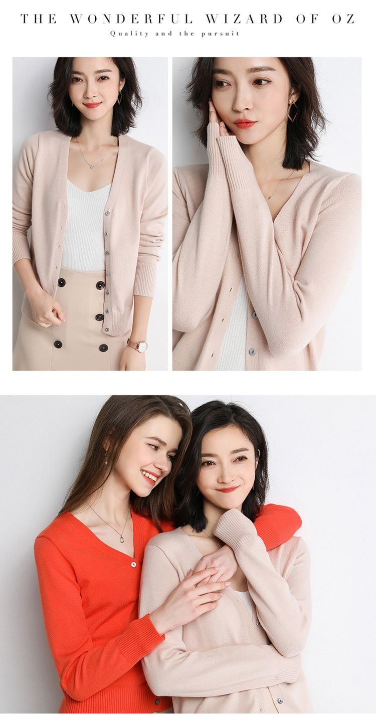 Cárdigan de punto de primavera para mujer, cuello en V, abrigo combinable, color liso, manga corta, suéter fino