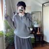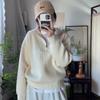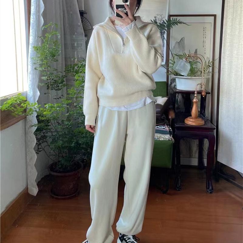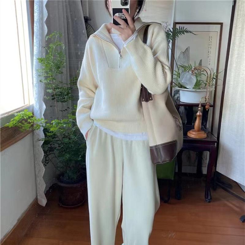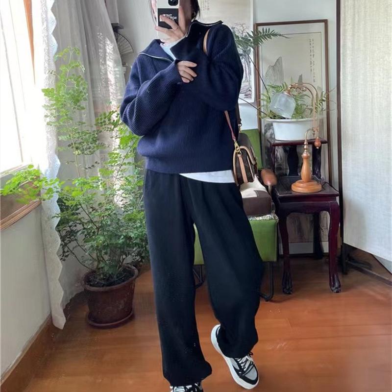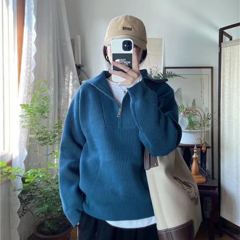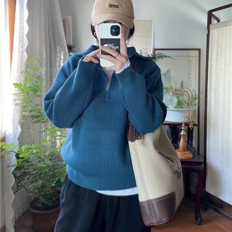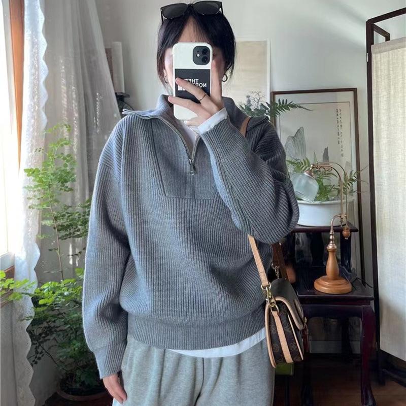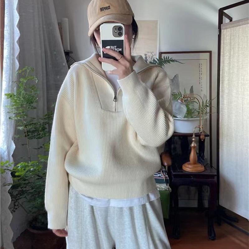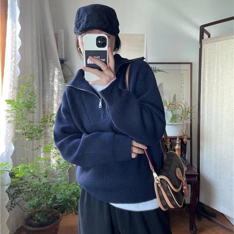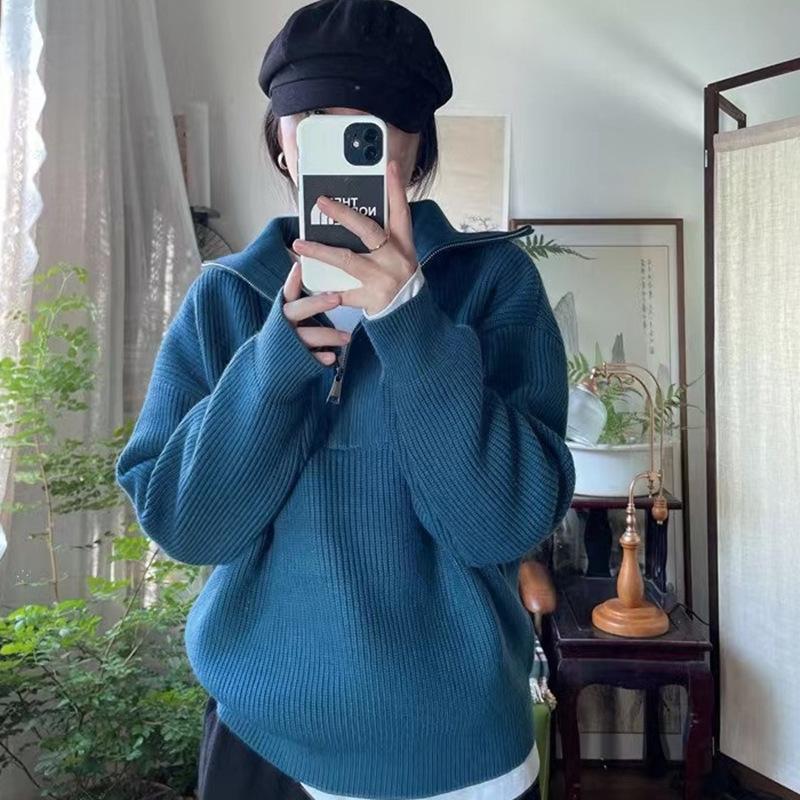 Suéter de Medio Cierre con Cuello Alto para Mujer Otoño e Invierno Nuevo Estilo Coreano Simple Estilo Lazy Suelto Casual Suéter Pulóver Top