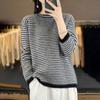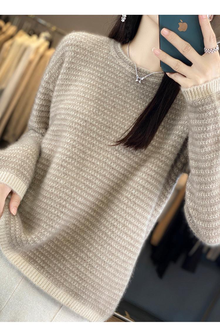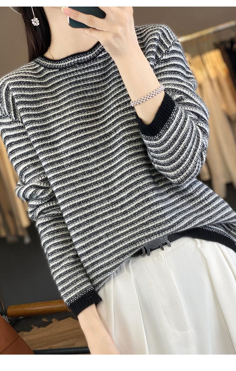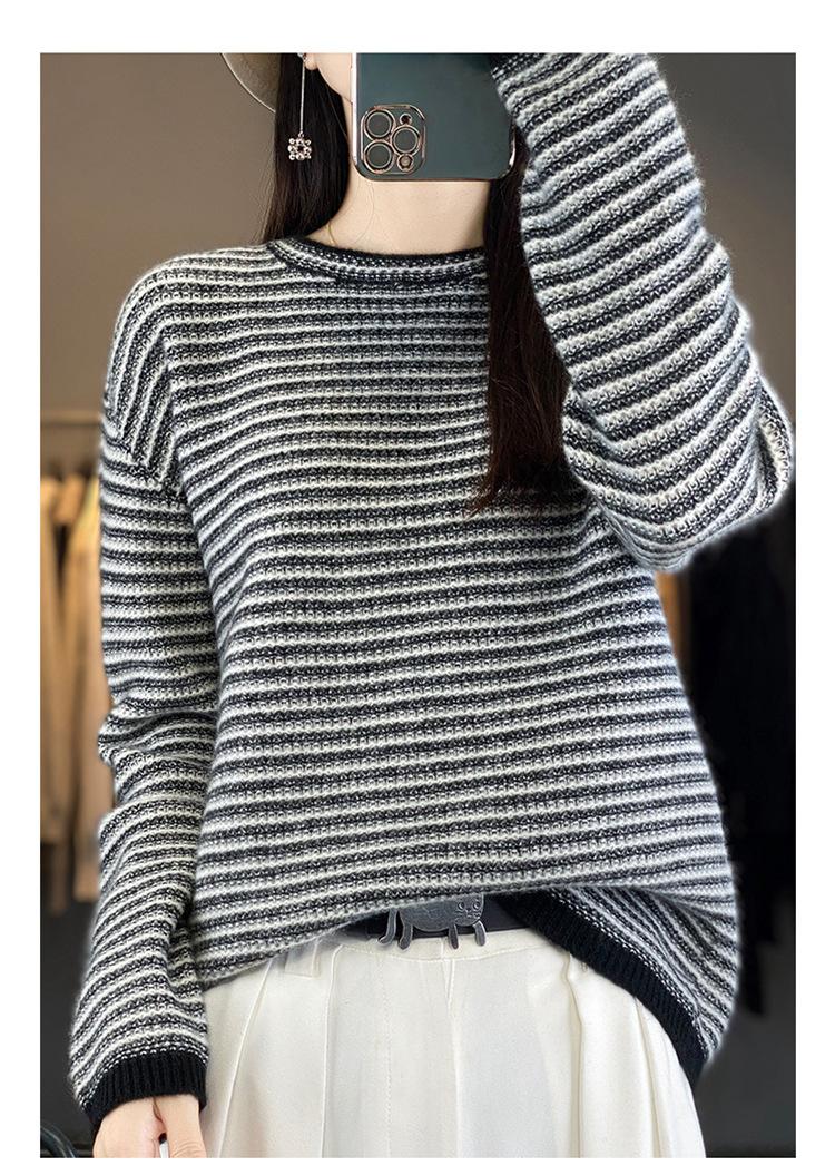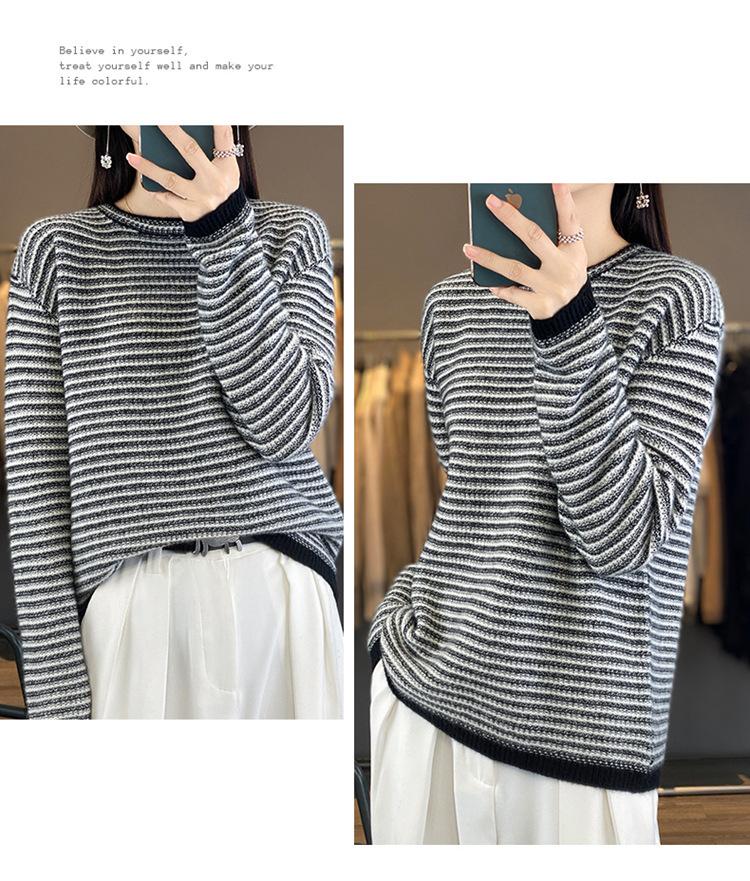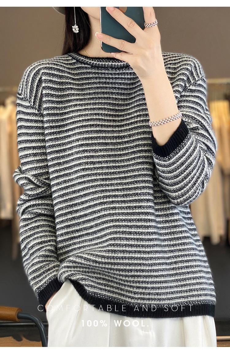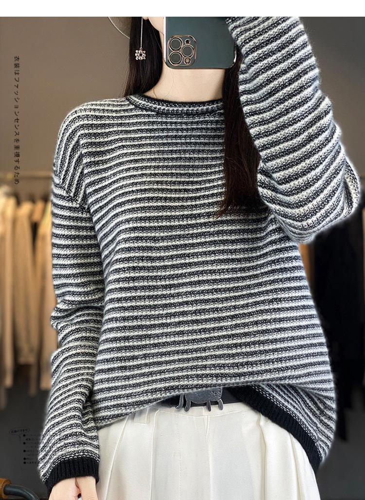 Suéter holgado de lana a rayas coreanas para mujer, otoño e invierno, diseño retro, cuello redondo, color block, 2023
